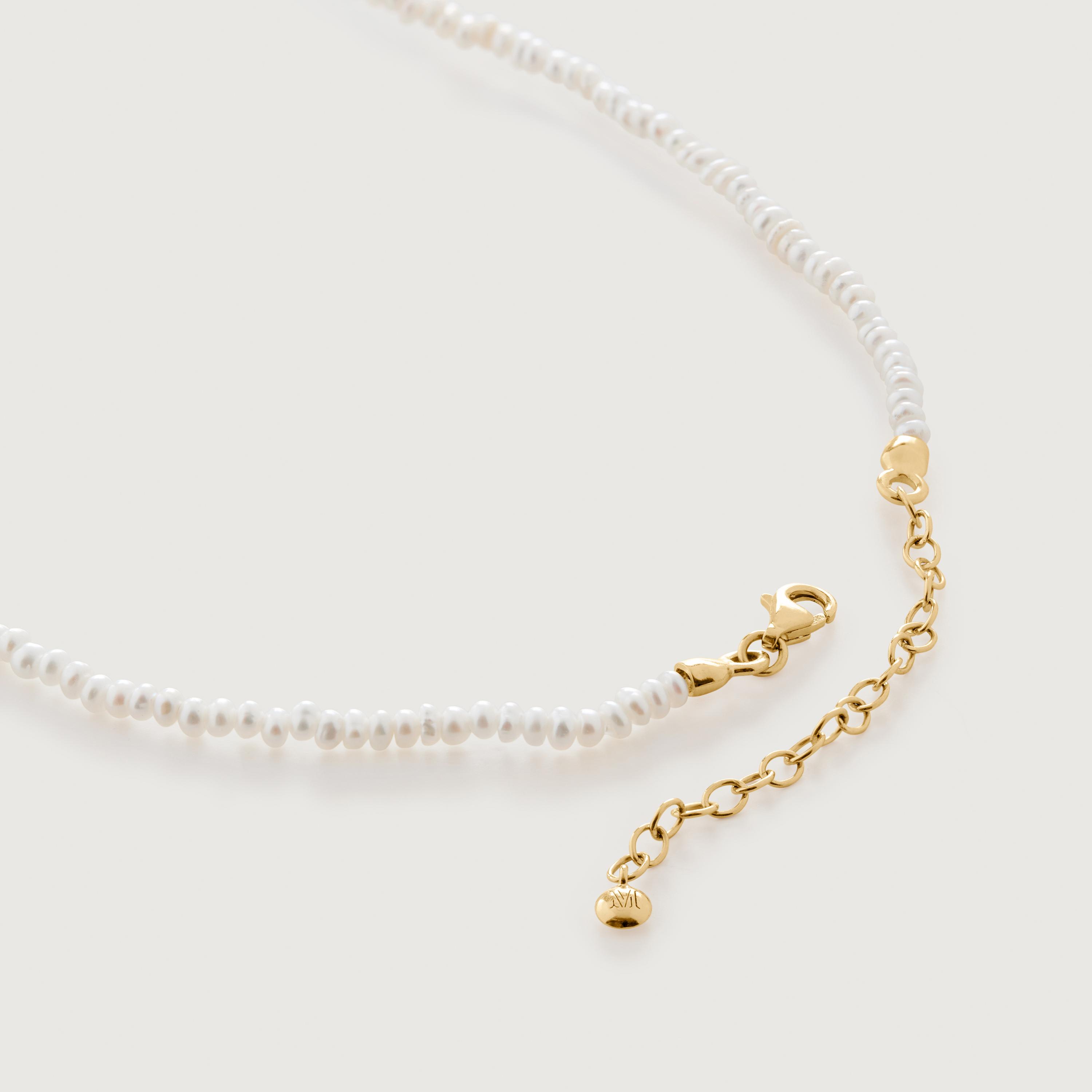 Bound to level up your necklace stack is the Mini Nugget pearl beaded necklace from Monica Vinader. This necklace features a string of hand-faceted gold-plated beads with a large pearl drop pendant at the centre – pair it with the matching bracelet for an opulent finish.