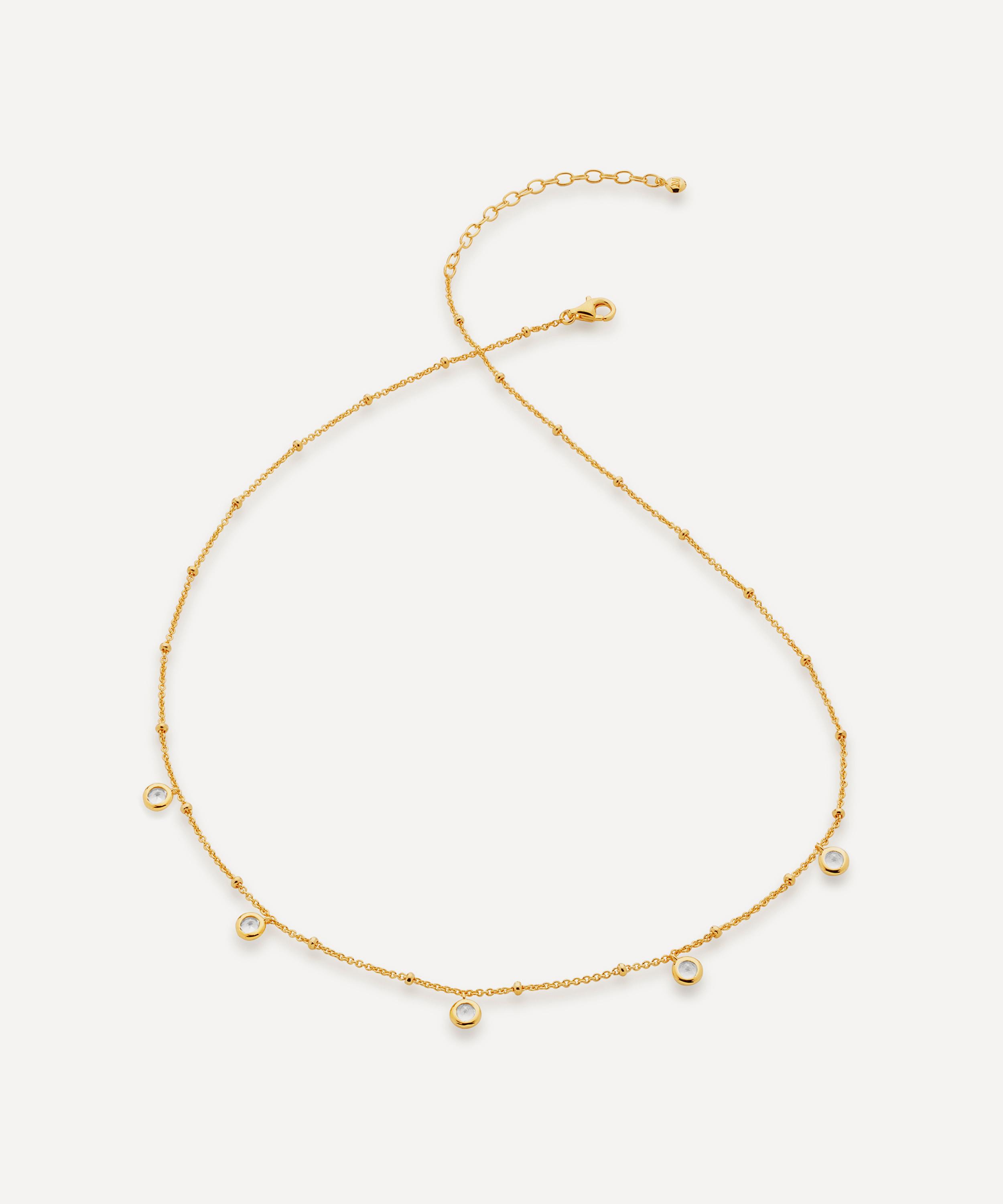 Crafted from recycled sterling silver plated in 18 carat gold vermeil, this delicate white topaz gem necklace is an everyday layering essential from Monica Vinader.