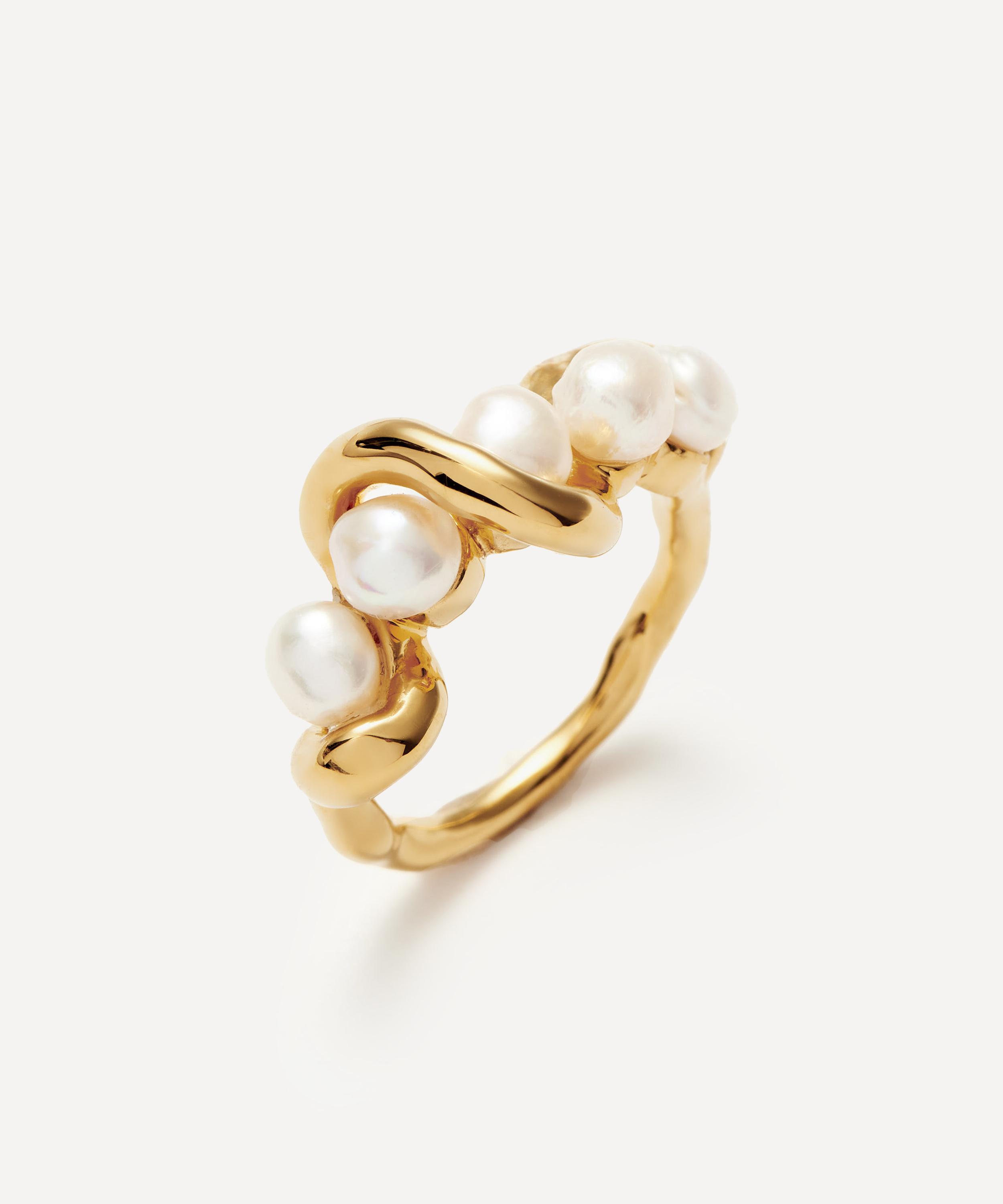 Inspired by natural forms, this pearl ring from Missoma showcases a timeless design with a contemporary edge. Crafted from sterling silver plated in 18ct gold vermeil, it features a molten band twisted around beaded freshwater pearls. Style it with plain bands for a contrasting effect.