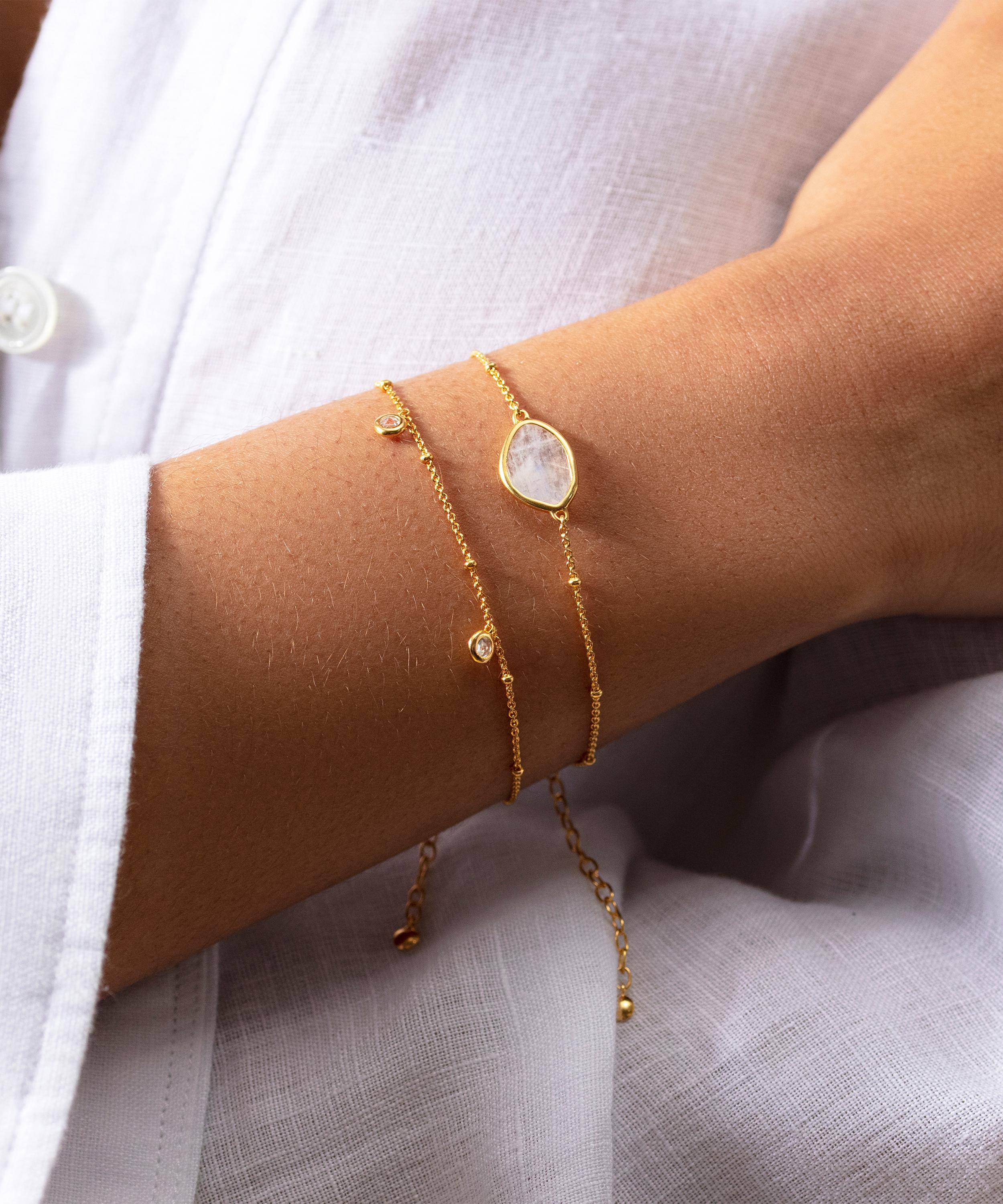 Crafted from recycled sterling silver plated in 18 carat gold vermeil, this delicate moonstone bracelet is an everyday layering essential from Monica Vinader.