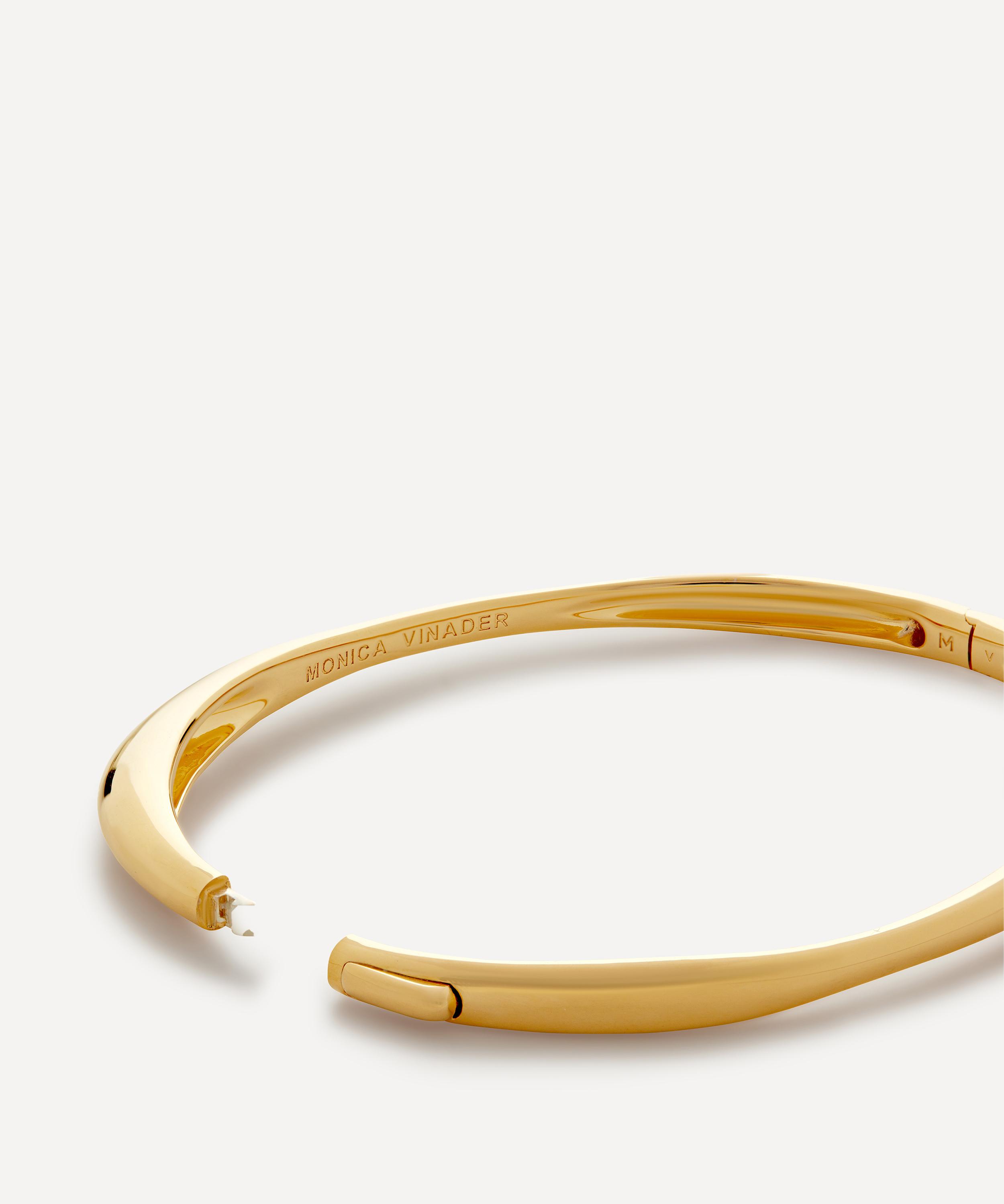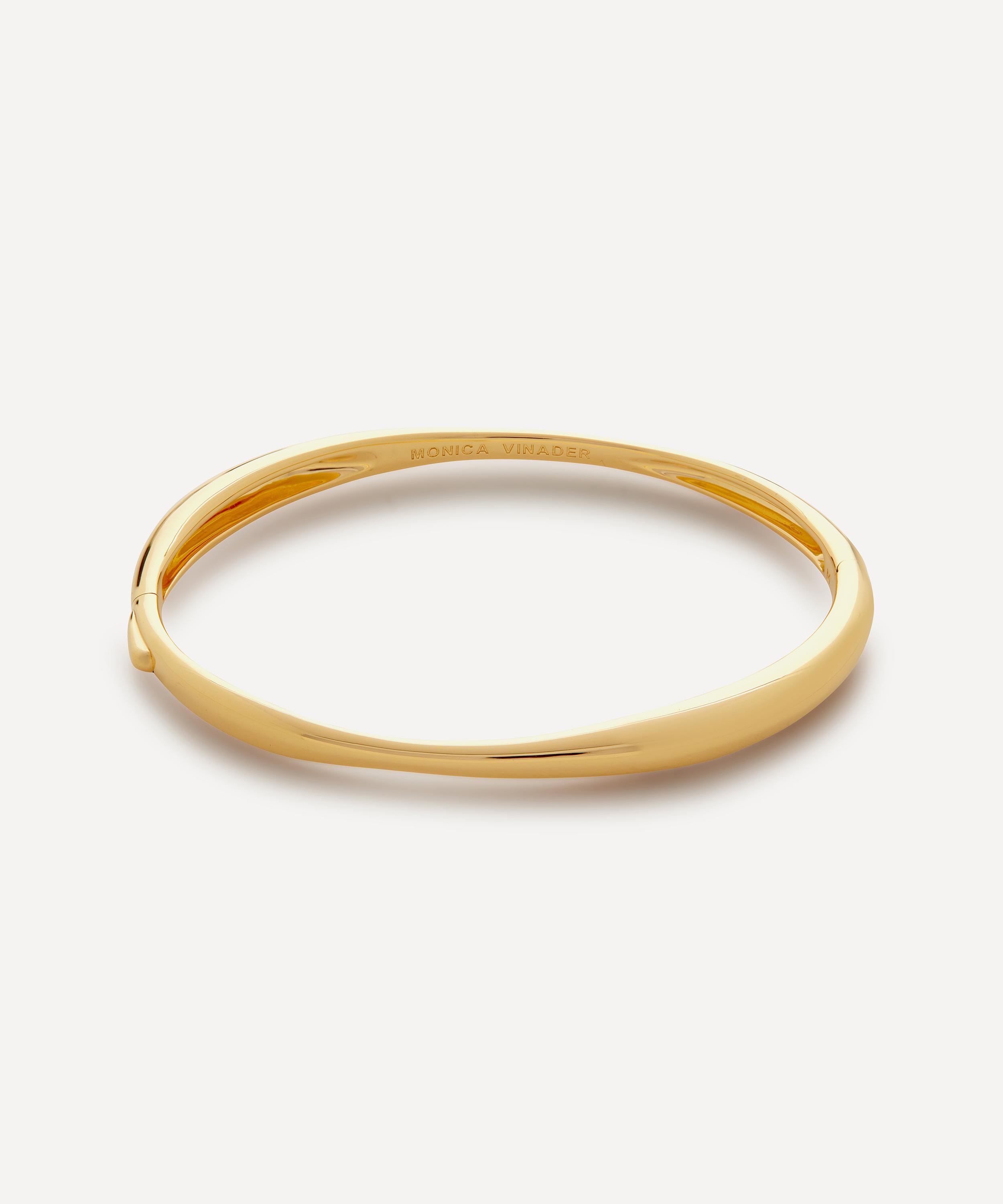 This bangle bracelet is part of Monica Vinader’s Nura collection – a series characterised by beautifully simple, organic styles. Crafted from sterling silver plated in 18ct gold vermeil, this bracelet features a thin, irregular silhouette in a polished finish. Perfect for stacking, pair it with a couple of chains, or keep things simple by styling it solo.