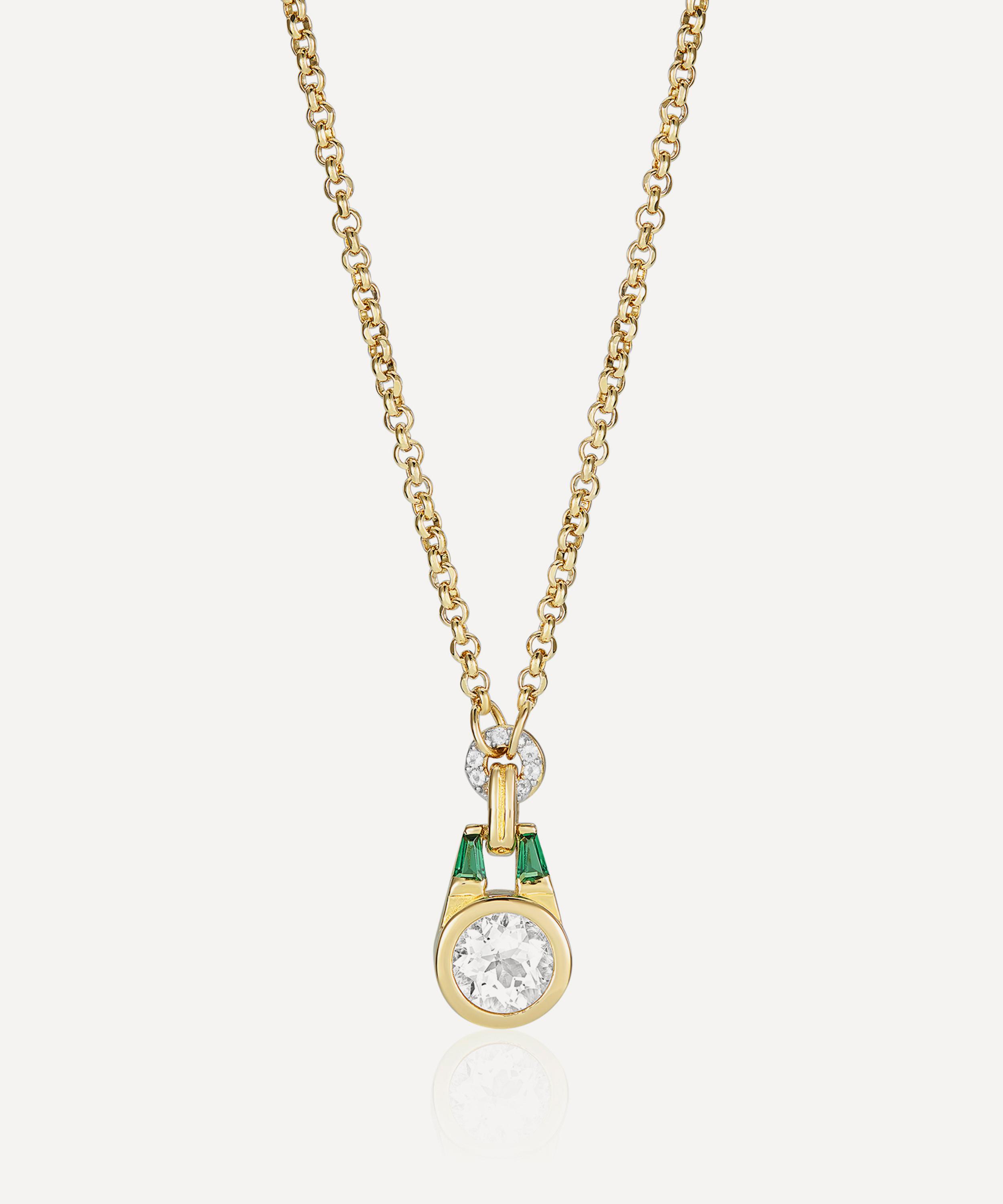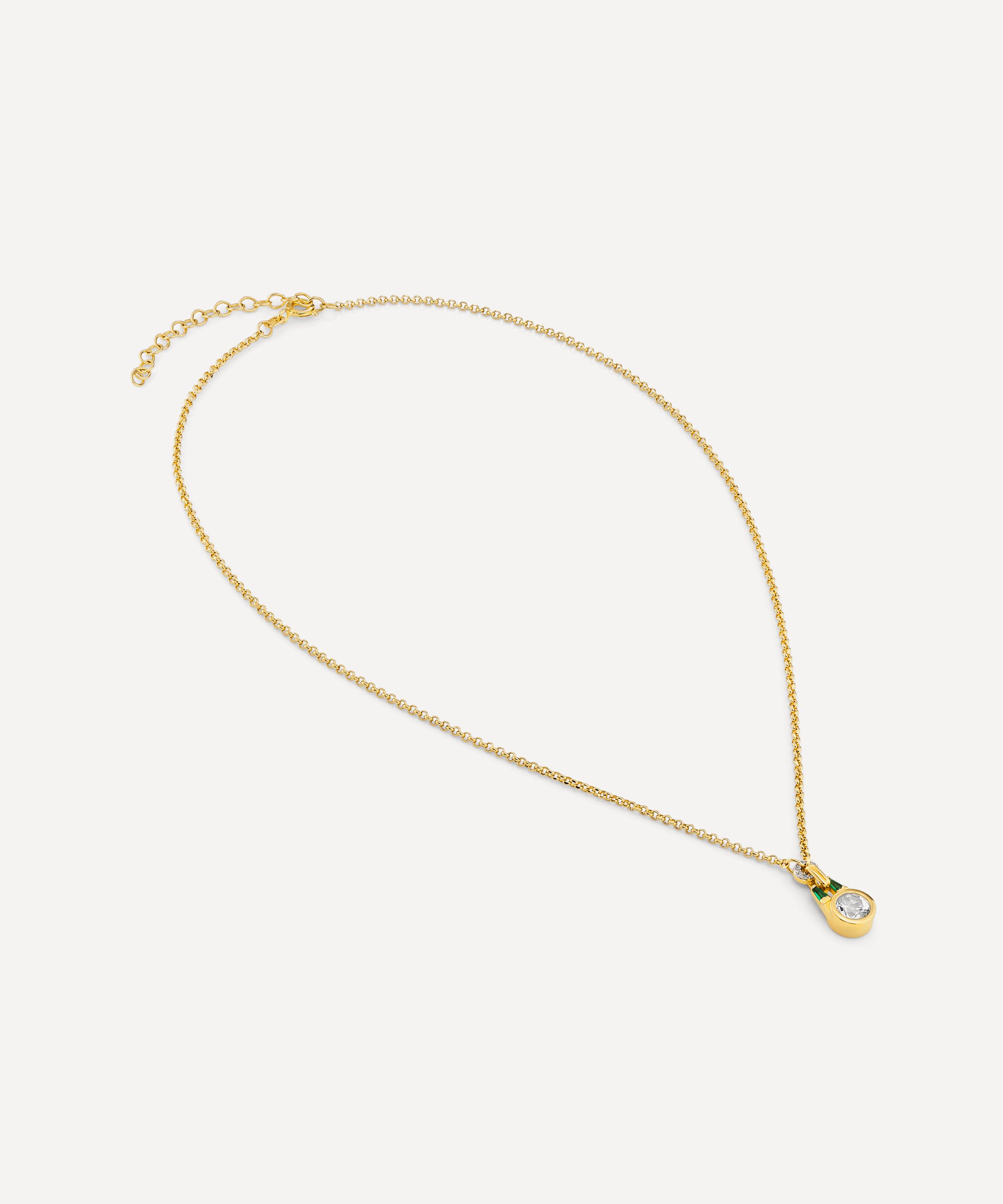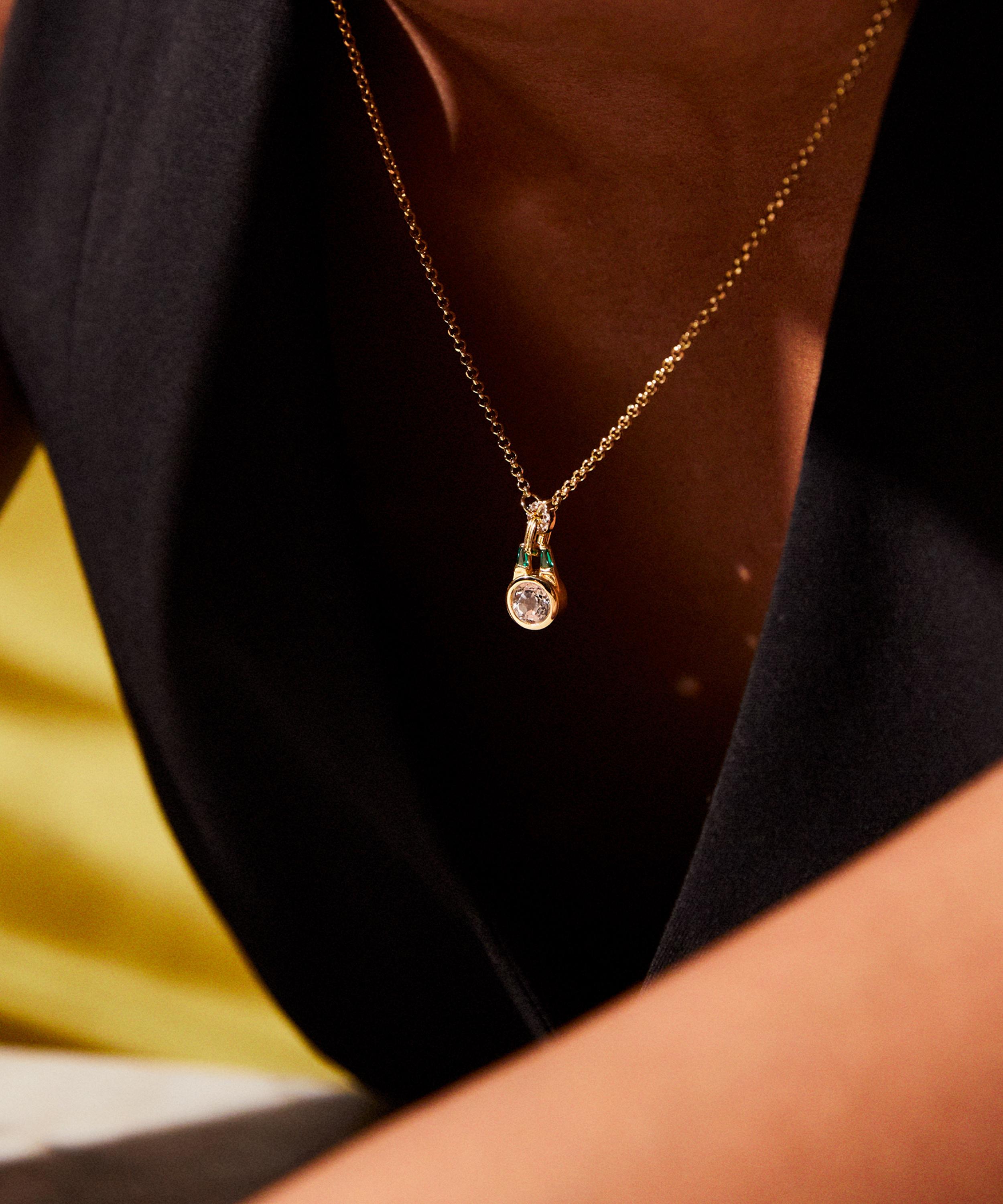 Designed to stand the test of time, the Olive pendant necklace from V by Laura Vann is perfect for a touch of everyday elegance. Inspired by the designer’s own engagement ring, it’s crafted from sterling silver plated in 18ct gold vermeil. The pendant features a buckle-inspired design and is meticulously set with a round brilliant cut white topaz and tapered emerald, green cubic zirconia stones. Suspended from a rolo chain, it’s bound to become a new jewellery box staple.