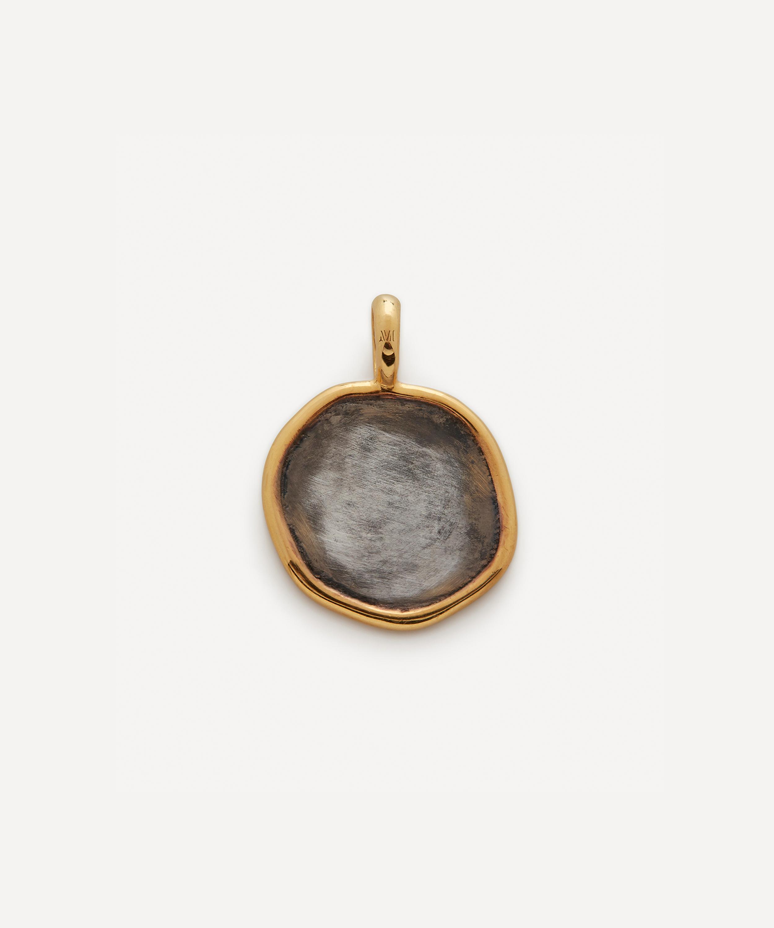 Presenting a unique composition of mixed metals, this charm pendant features a peaceful dove motif, engraved on hand-finished black rhodium with a gold vermeil bezel. Representing peace and hope, this small treasure combines past wisdom with modern style to elevate your existing jewellery collection – try threading it into a fine chain necklace or charm bracelet to add a talismanic finish to your everyday curation.