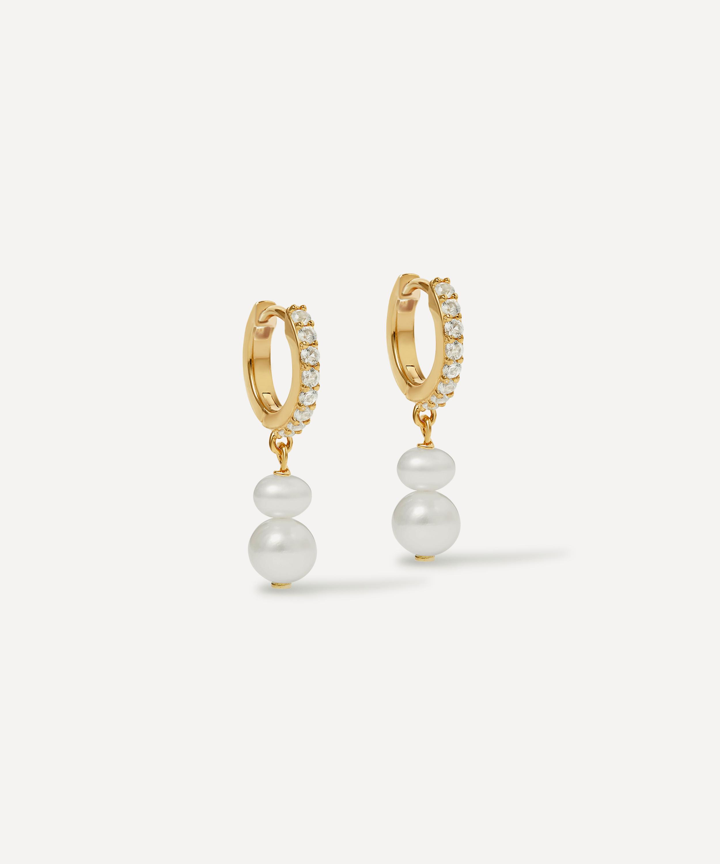 Strung with dreamy, lustrous freshwater pearls, each hoop is lined with white sapphires that catches the light with a subtle brilliance, lending a sense of poise and modern romance to the ear. Crafted from sterling silver plated in 18ct gold vermeil, they make for a thoughtful gift – or a forever addition to your own jewellery collection. Layer them with other pieces or style alone for a touch of refined simplicity.
