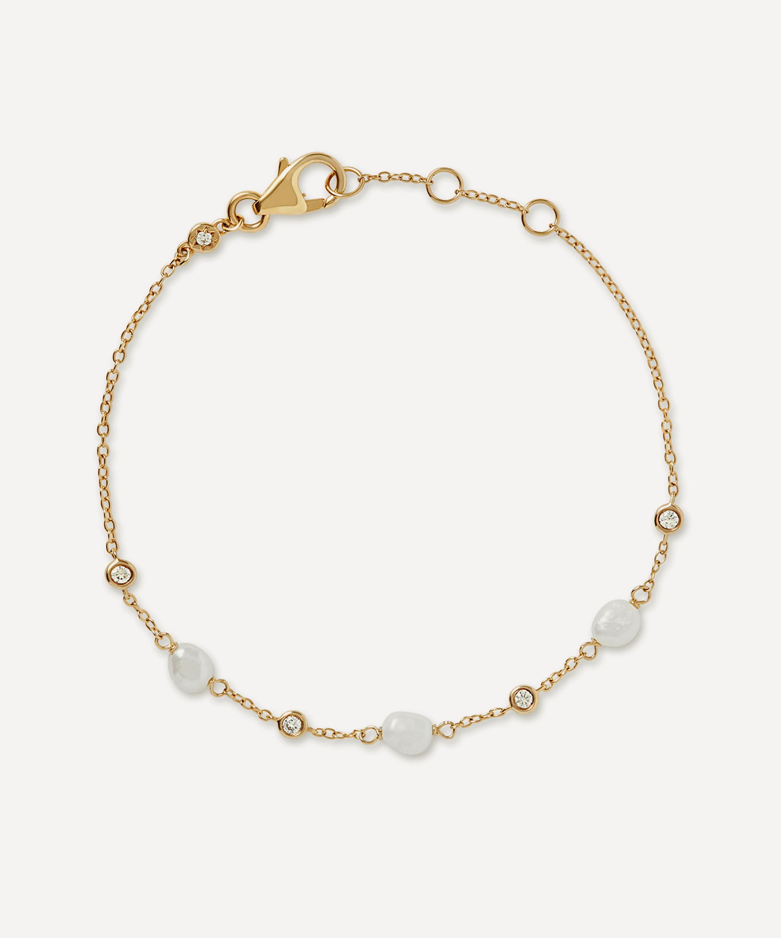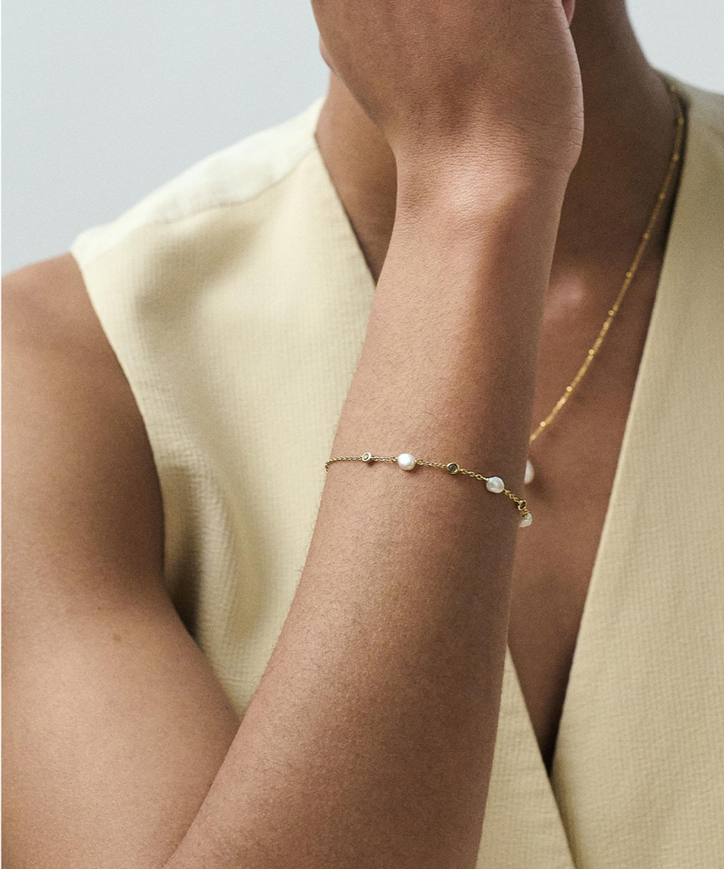 Strung with dreamy, lustrous freshwater pearls and interspersed with white sapphire stations, each gemstone catches the light with a subtle brilliance, lending a sense of poise and modern romance to the wrist. Set on a fine chain crafted from sterling silver plated in 18ct gold vermeil, it makes for a thoughtful gift – or a forever addition to your own jewellery collection. Layer it with other pieces or style it alone for a touch of refined simplicity.