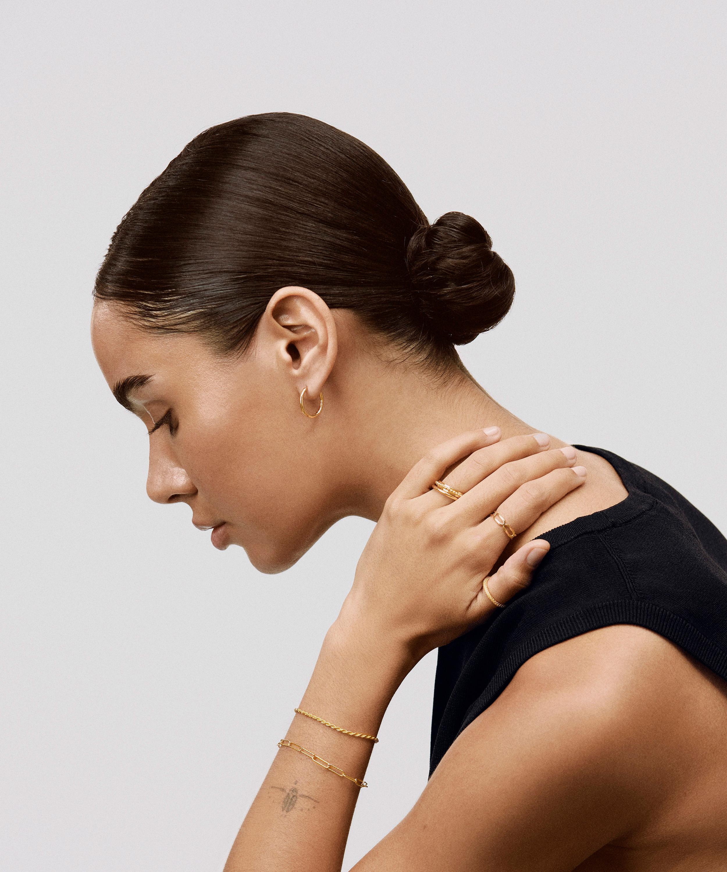 Perfect for stacking or styling alone, each earring showcases an organic, lightly hammered silhouette that's reminiscent of the sea. Designed with both style and versatility in mind, try layering them with a pair of larger Muse hoops.About Monica Vinader