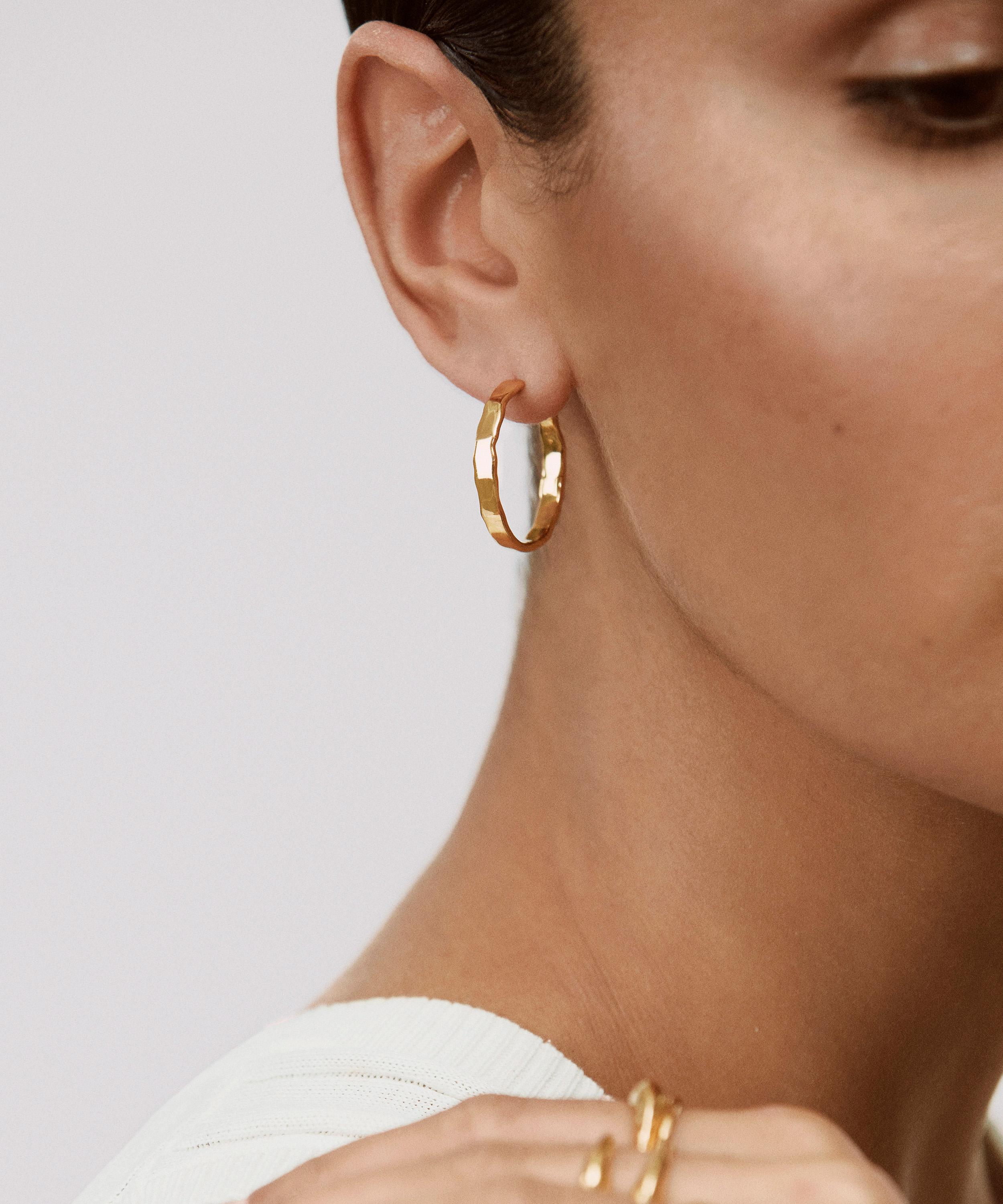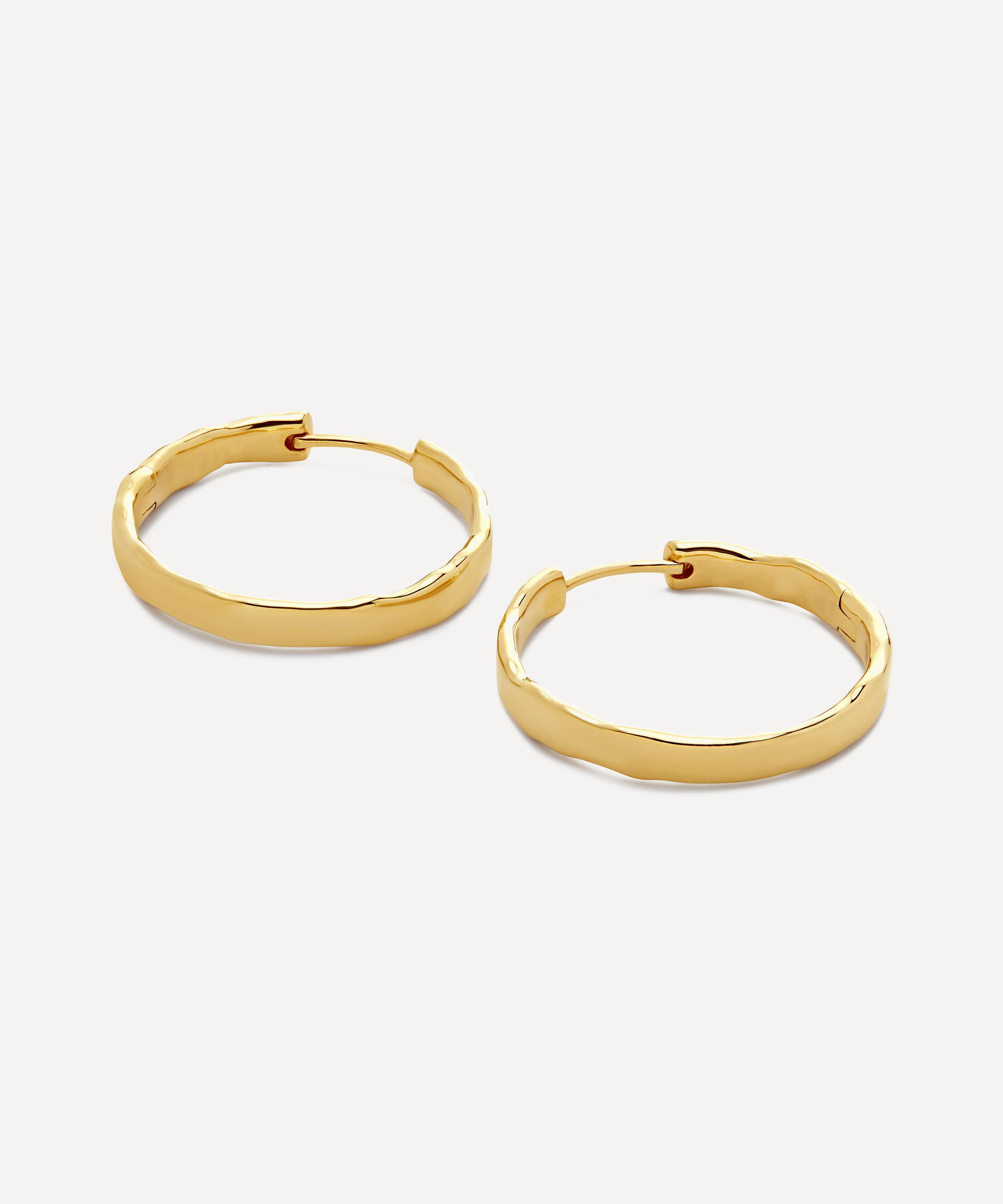 Crafted from sterling silver in 18ct gold vermeil, these hoop earrings are part of Monica Vinader’s Siren collection, inspired by sea-worn treasures and the glamour of Southern Italy. Perfect for stacking or styling alone, these earrings showcase an irregular, organic silhouette with a gently hammered surface that captures the light – reminiscent of the glittering sea.
