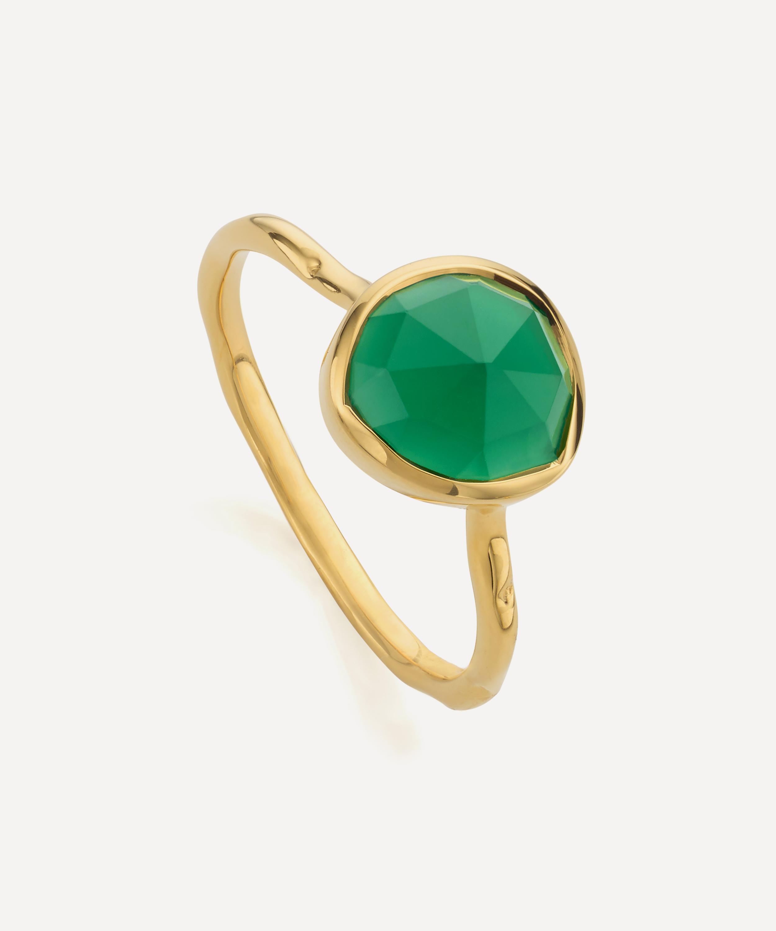 Crafted from sterling silver plated in 18ct gold vermeil, this ring is part of Monica Vinader’s Siren collection, inspired by sea-worn treasures and the glamour of Southern Italy. Perfect for stacking or styling alone, it features a slim band accented by a hand-cut green onyx gemstone.