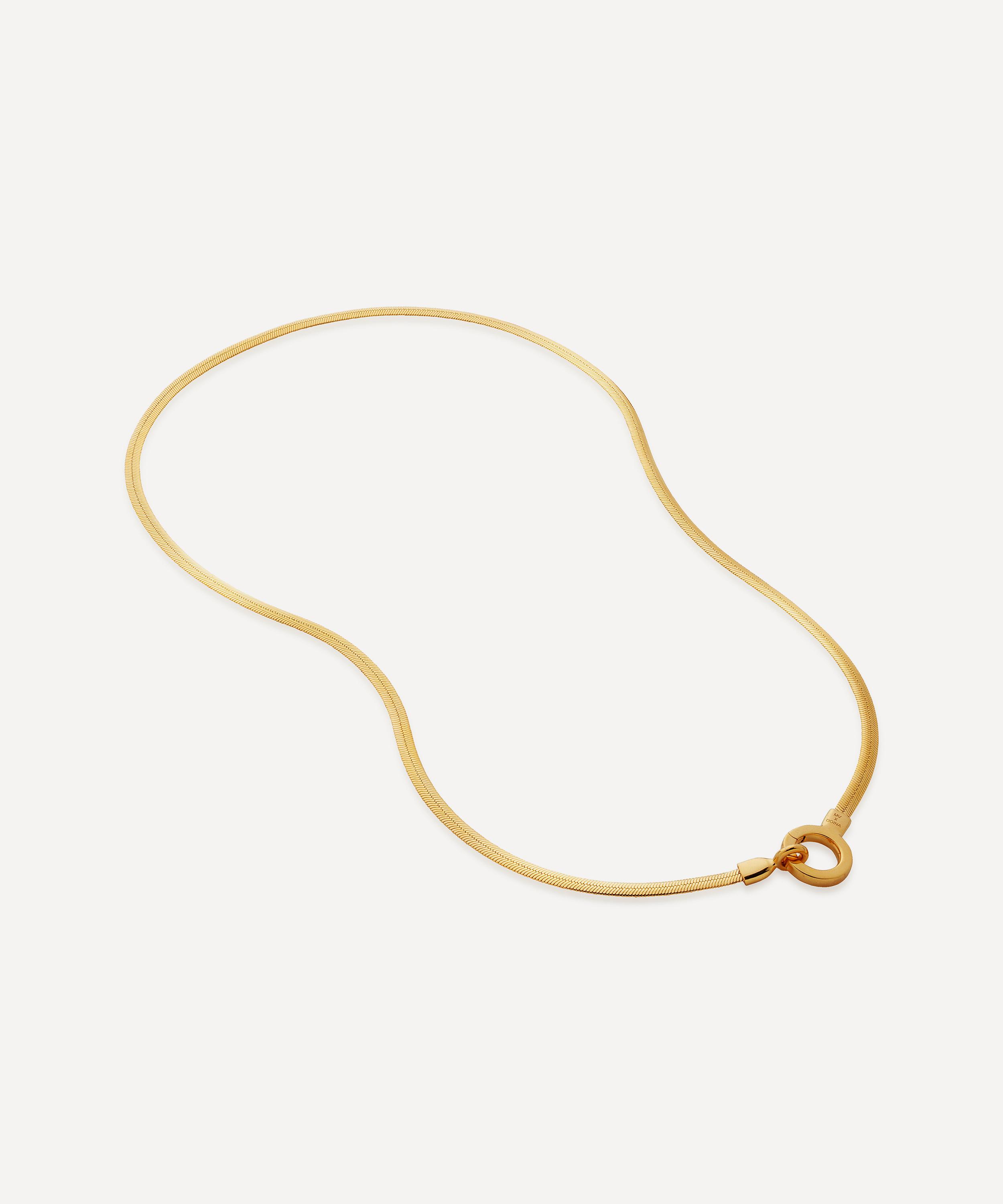 Inspired by the glamour of 1950s Italy, this snake chain necklace from Monica Vinader is crafted from recycled sterling silver plated in 18 carat gold vermeil - proof that taking a more sustainable approach to jewellery does not mean compromising on design or quality. An essential for any jewellery box, the necklace is characterised by a sleek snake chain with a hinged ring fastening. Add a charm of your choice or layer it with several coordinating styles to fully harness the collection’s glamorous, vintage-inspired aesthetic.