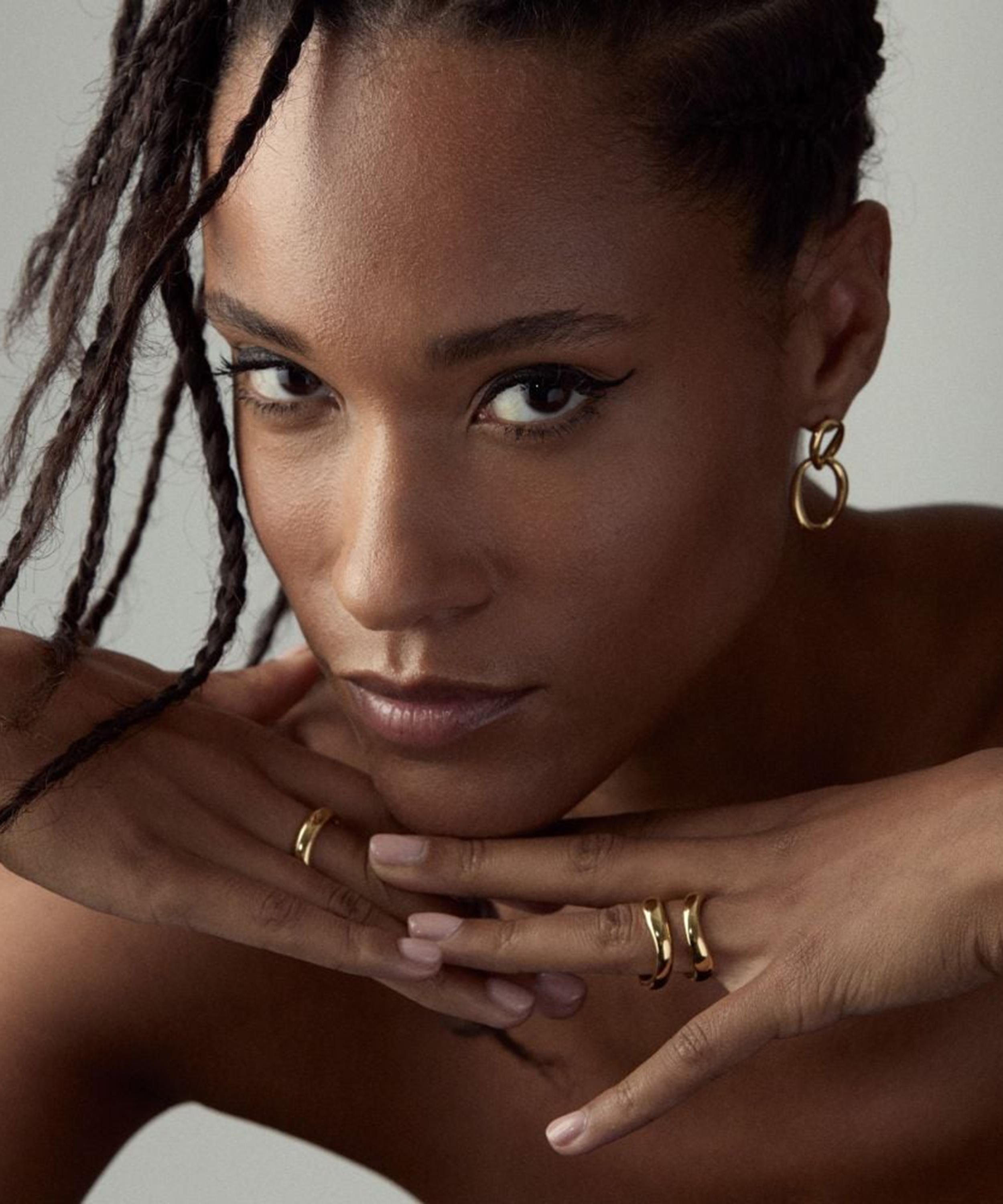 Expertly crafted from sterling silver plated in 18ct gold plated vermeil, it features sculptural, fluid silhouette, blending refinement and wearability. Boasting a unique jewellery box staple, ideal for elevating any look, day or night, wear it solo, stacked or try styling it as a thumb ring.