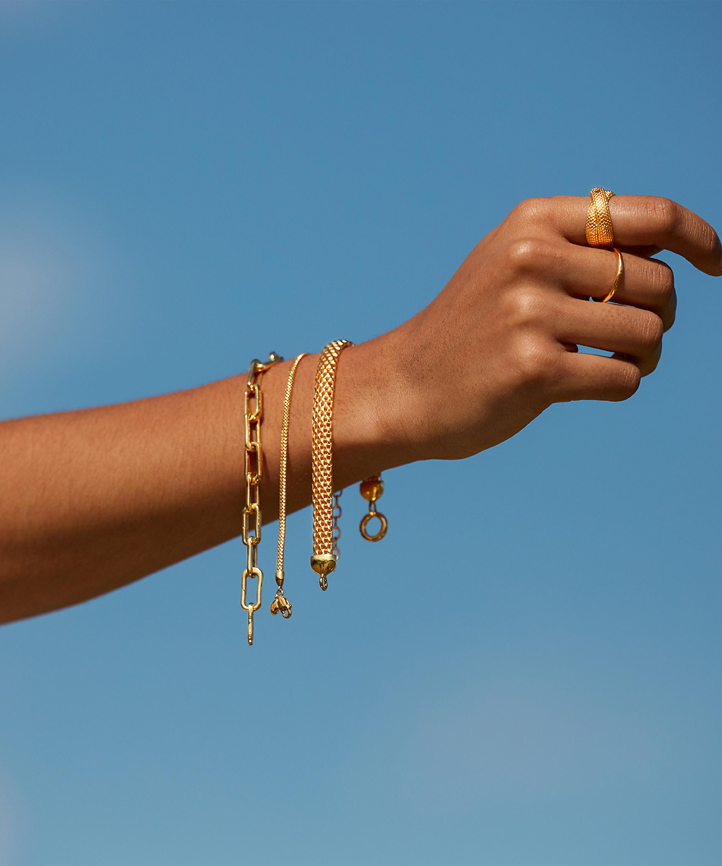 Inspired by the glamour of 1950s Italy, this fine chain bracelet from Monica Vinader is crafted from sterling silver plated in 18 carat gold vermeil - proof that taking a more sustainable approach to jewellery does not mean compromising on design or quality. Perfect for threading with your own bespoke selection of charms, the bracelet showcases a finely woven design that recalls a classic snake chain. Stack multiple together or team it with several other styles to fully harness the collection’s glamorous, vintage-inspired aesthetic.