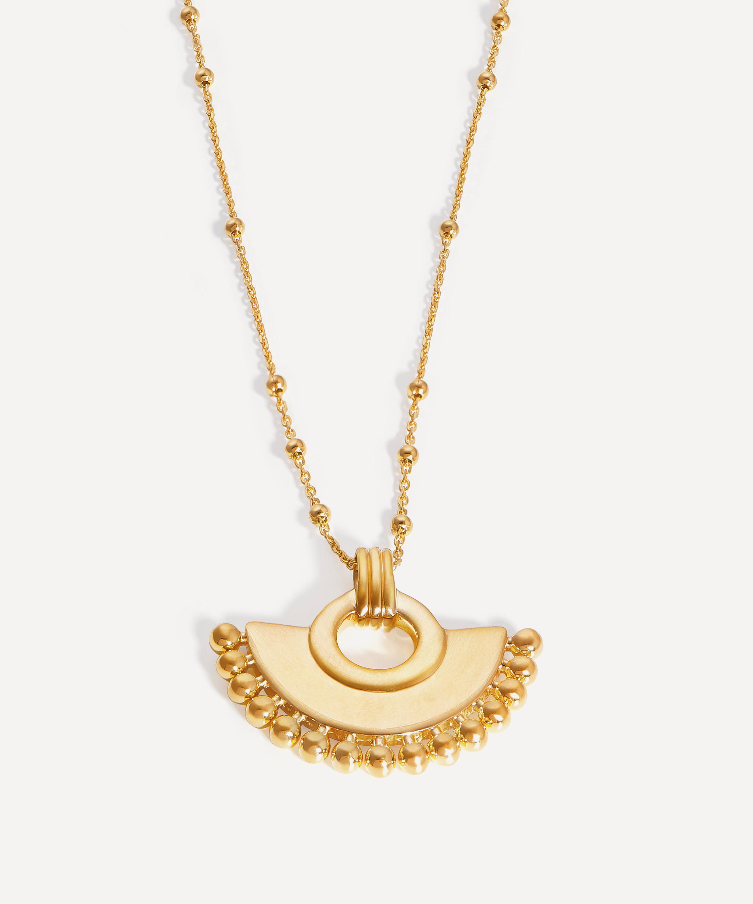 Boasting a unique everyday staple, this pendant necklace from Missoma draws inspiration from Colombia. Crafted in recycled silver plated in 18ct gold vermeil, this necklace features a long orb chain adorned with a bobble-trimmed, fan-shaped pendant in 18ct gold-plated brass. Perfect for layering, team it with other styles from the brand, or wear it solo for effortless day-to-night styling.