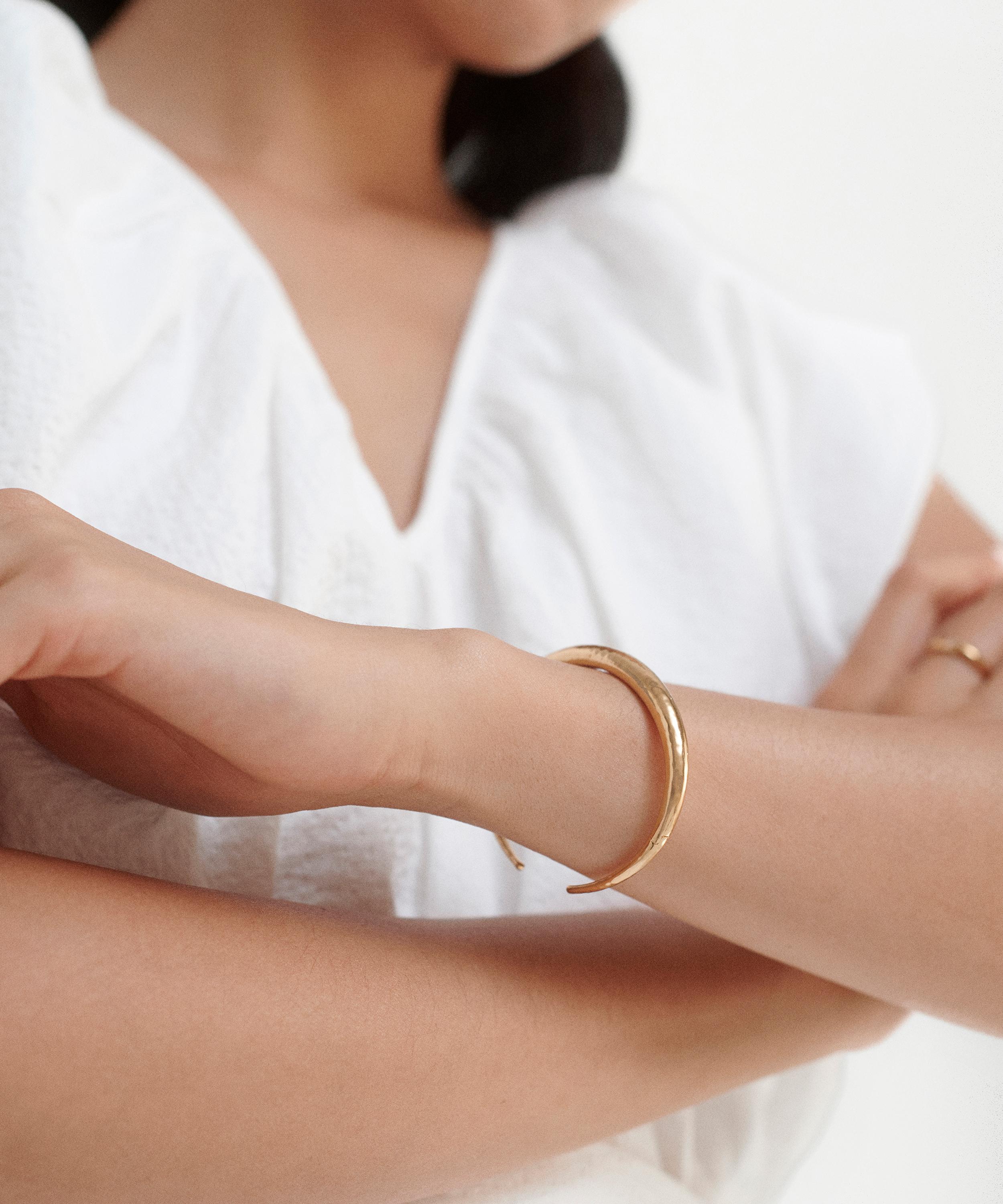 Handcrafted from a radiant 18ct gold-plated vermeil sterling silver, this stylish bracelet takes its cue from classical Greek sculptures and is complete with a textured finish that catches the light with your every move – style it alone for a minimal look, or wear with other pieces from the collection for an ultra-stylish jewellery edit.