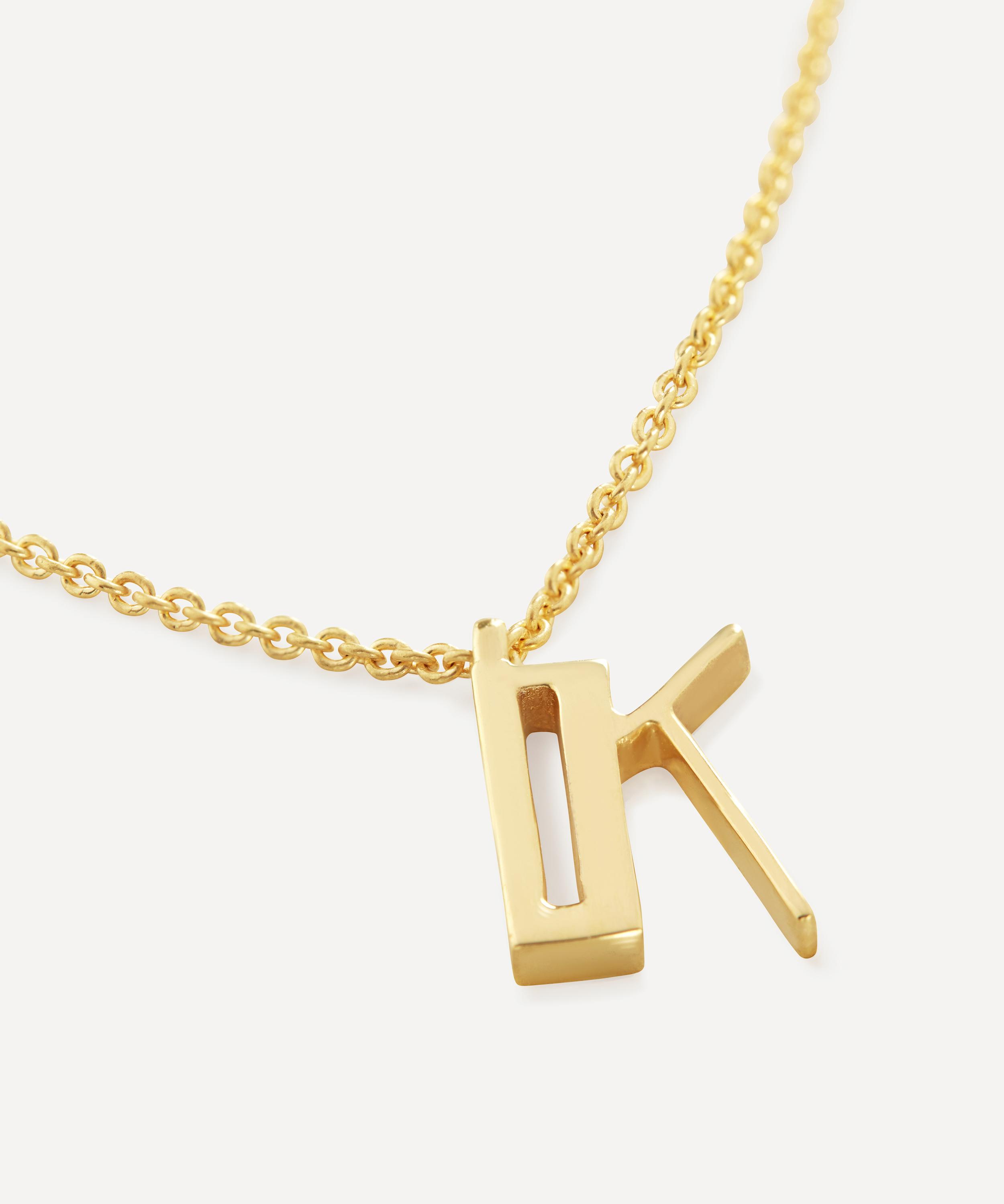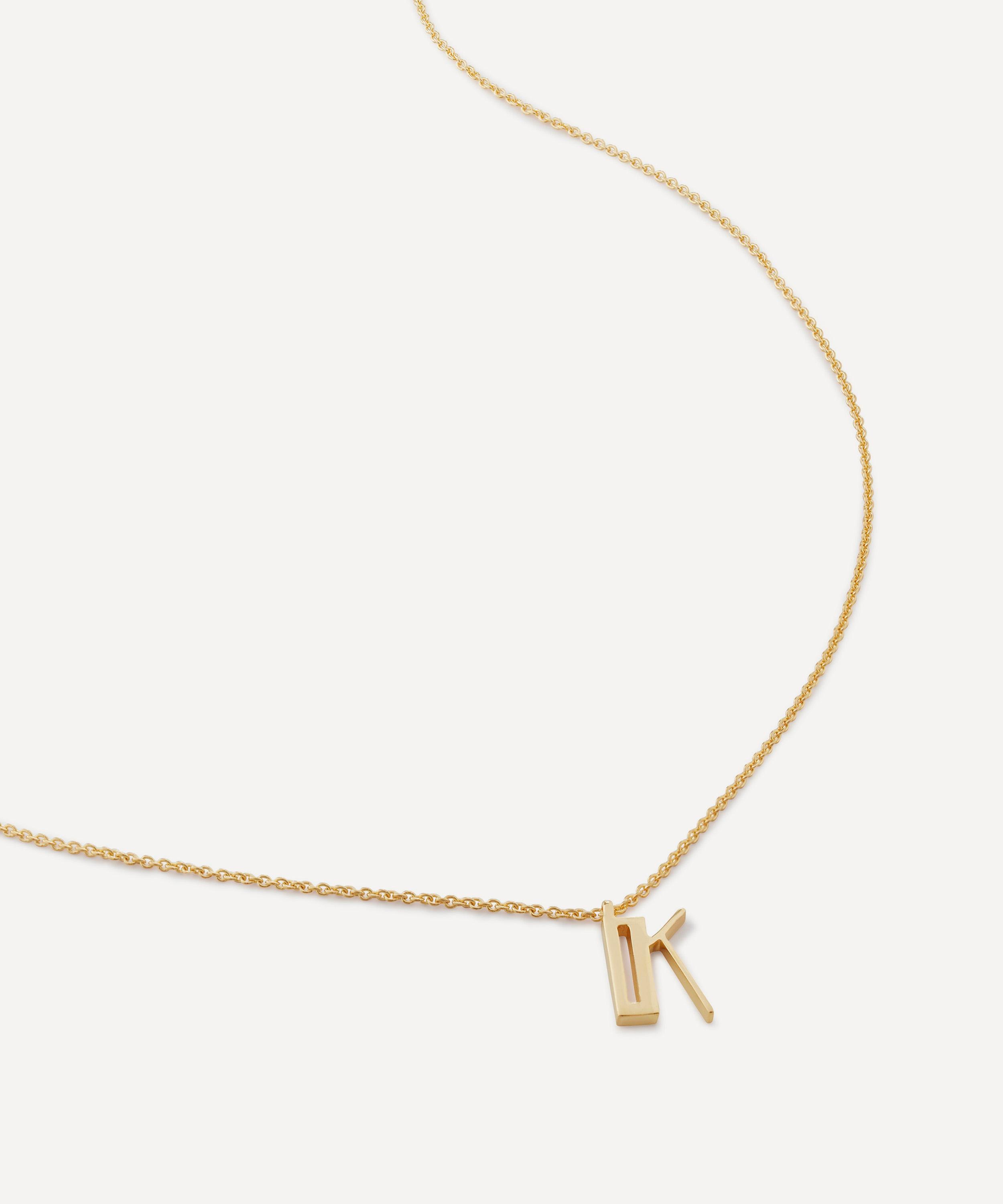 Handcrafted from a radiant 18ct gold-plated vermeil sterling silver, this necklace boasts an art-deco inspired letter charm with a modern finish, complete with a delicate fine chain – style it alone for a minimal, bespoke look, or wear with other chains and pendants for an on-trend curation.