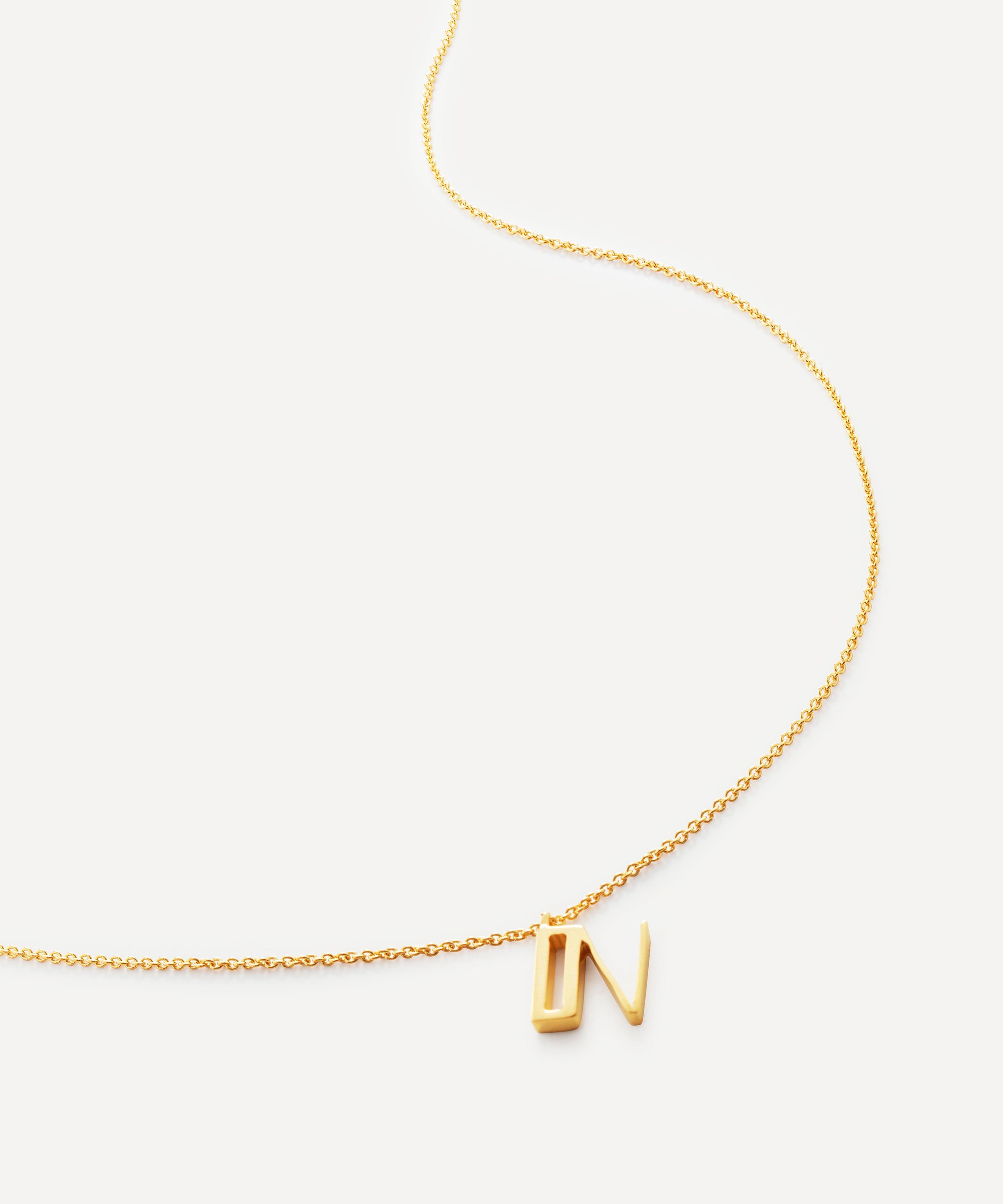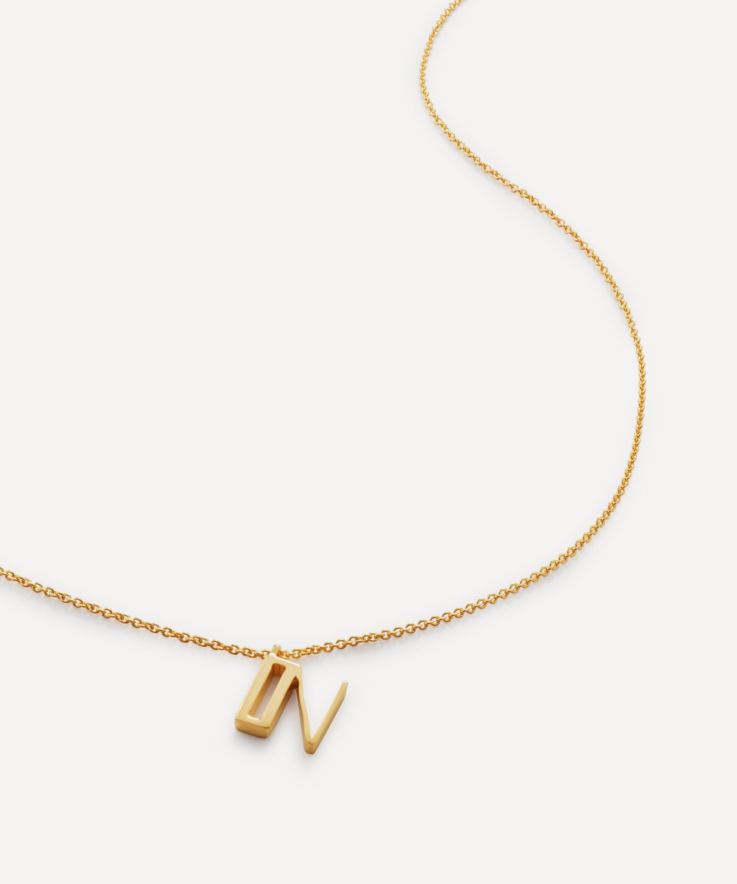 Handcrafted from a radiant 18ct gold-plated vermeil sterling silver, this necklace boasts an art-deco inspired letter charm with a modern finish, complete with a delicate fine chain – style it alone for a minimal, bespoke look, or wear with other chains and pendants for an on-trend curation.