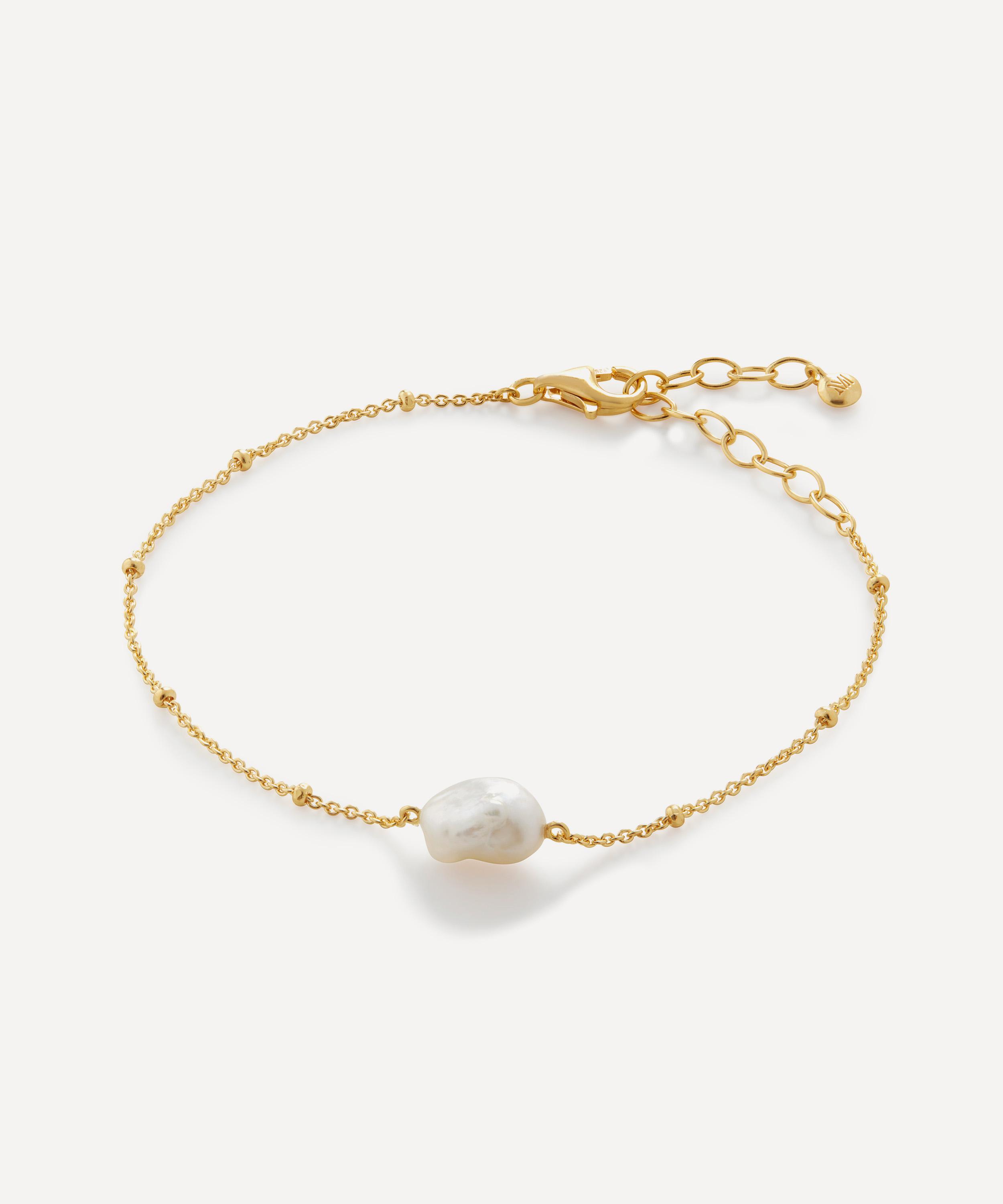 Monica Vinader presents the Nura tiny Keshi pearl bracelet, handcrafted from a radiant 18ct gold-plated vermeil sterling silver and finished with a one-of-a-kind freshwater pearl.