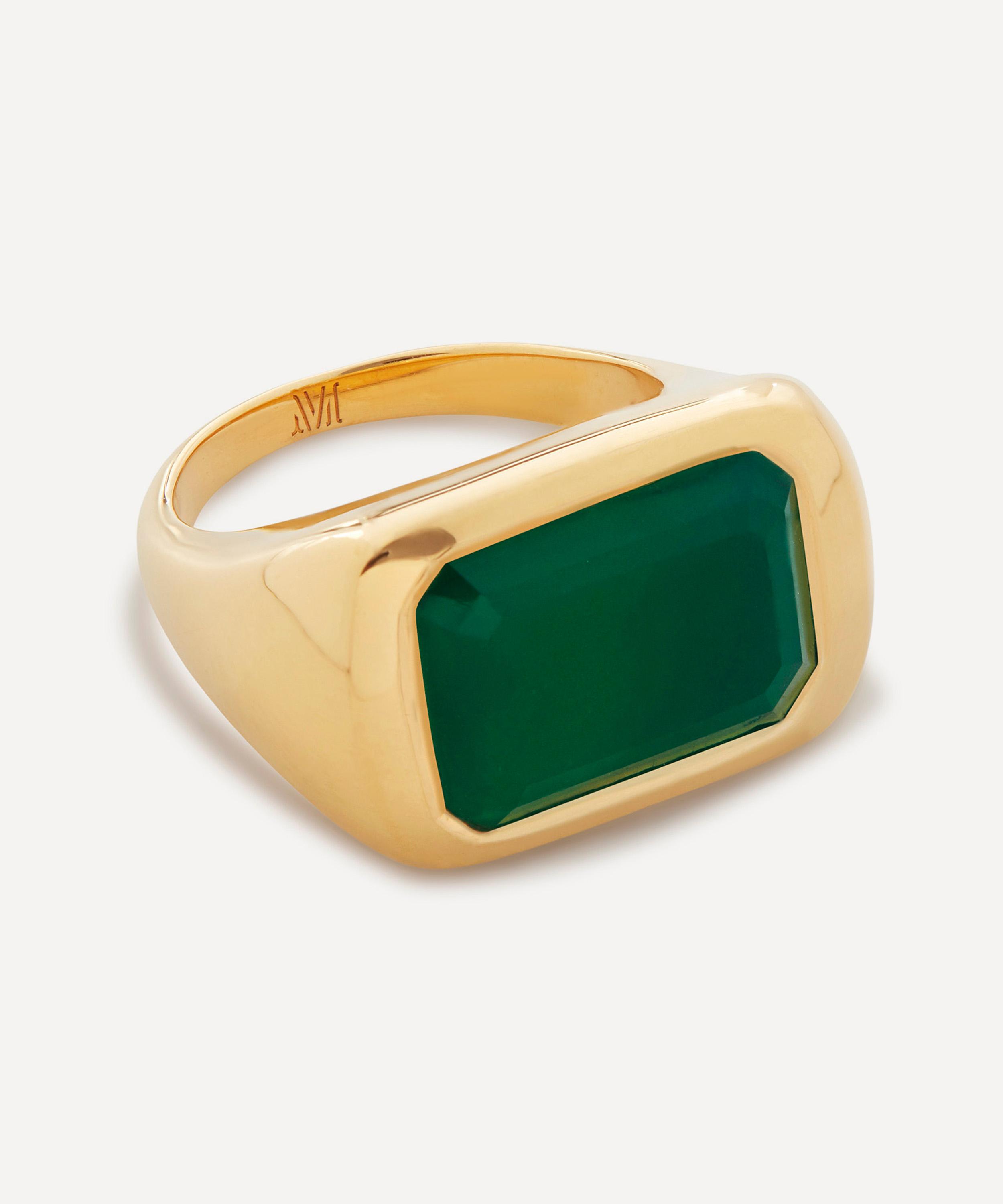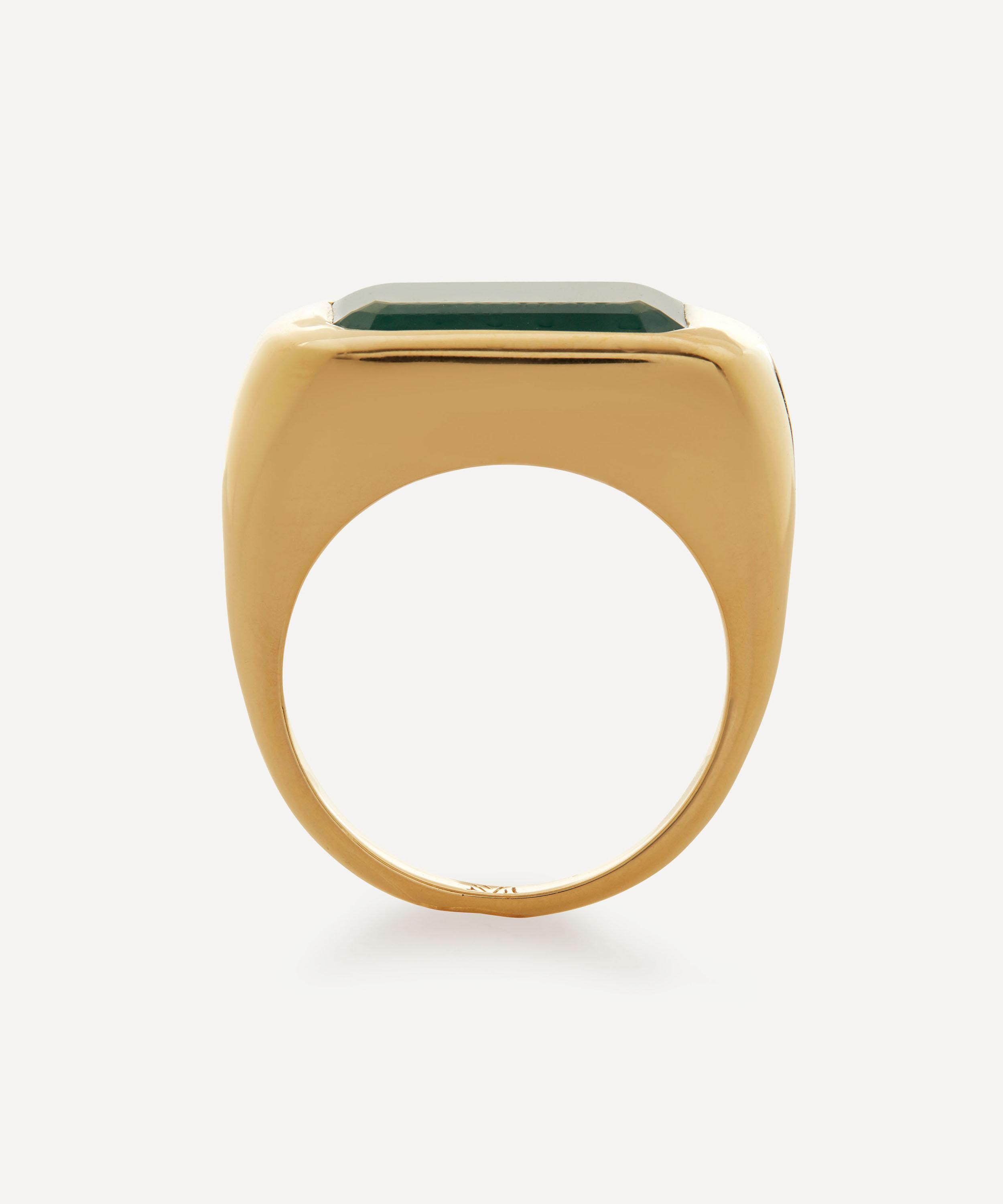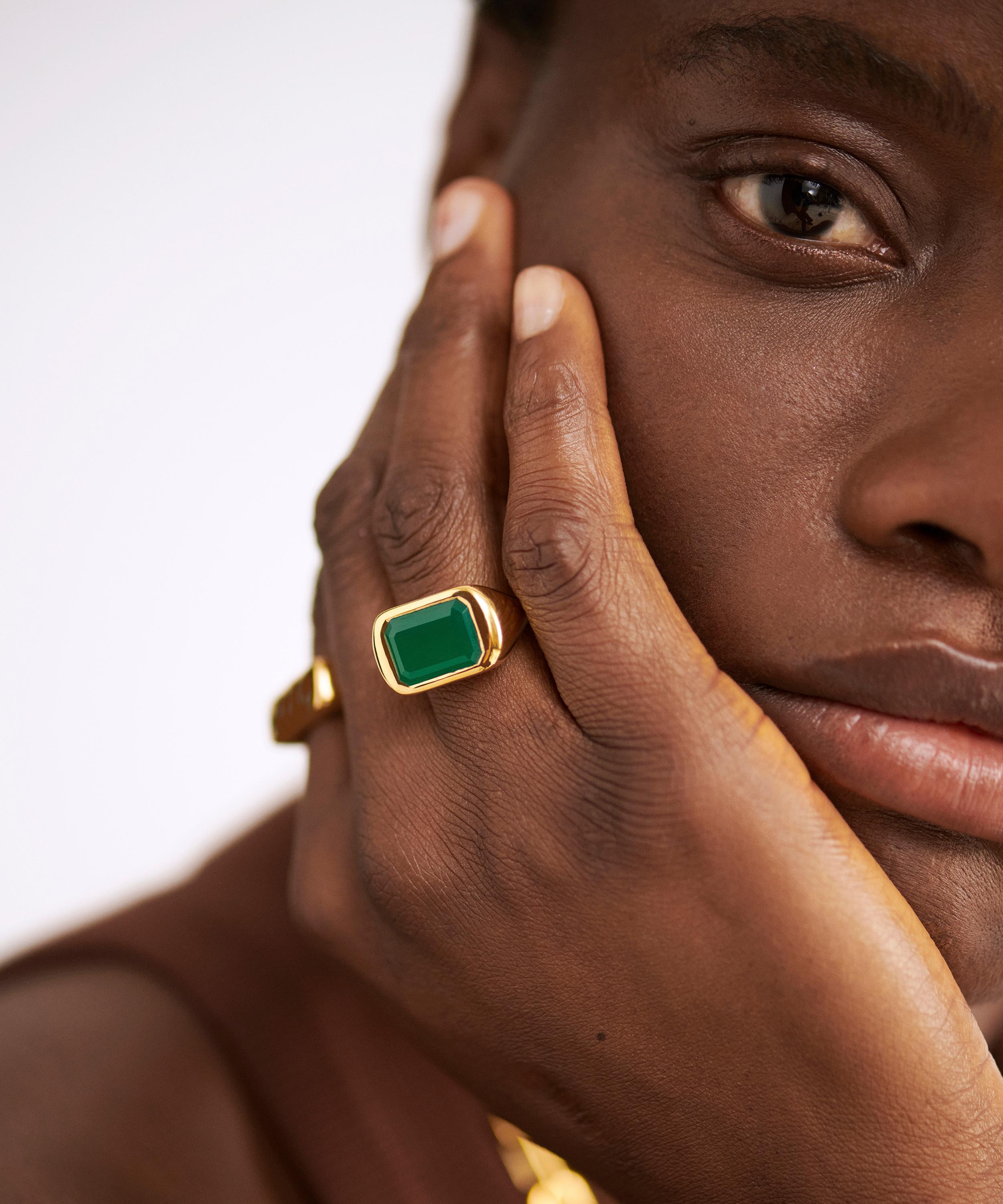 Handcrafted from a radiant 18ct gold-plated vermeil sterling silver, this ring boasts a vibrant, hand-cut green onyx gemstone that shines beautifully, catching the light with your every move – wear alone or as part of your ring stack for an on-trend jewellery curation.