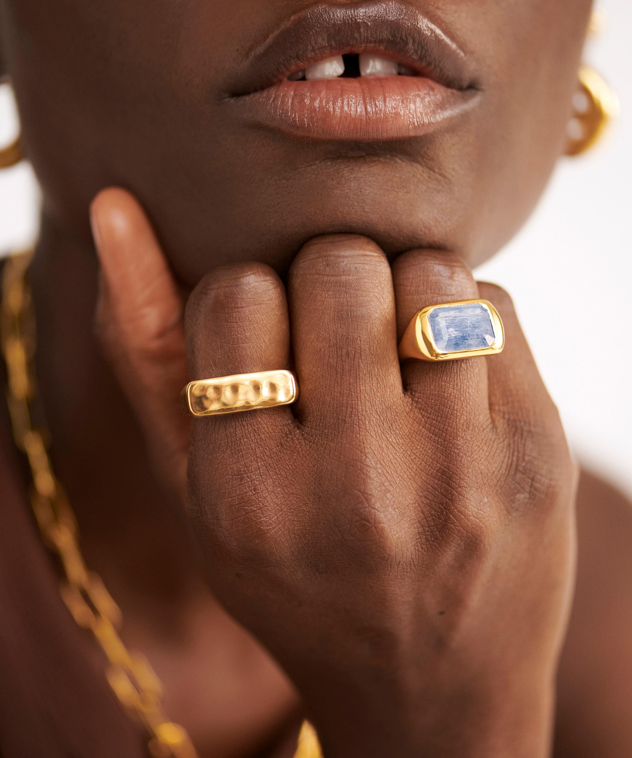 Handcrafted from a radiant 18ct gold-plated vermeil sterling silver, this ring boasts a multifaceted, hand-cut kyanite gemstone that shines beautifully, catching the light with your every move – wear alone or as part of your ring stack for an on-trend jewellery curation.