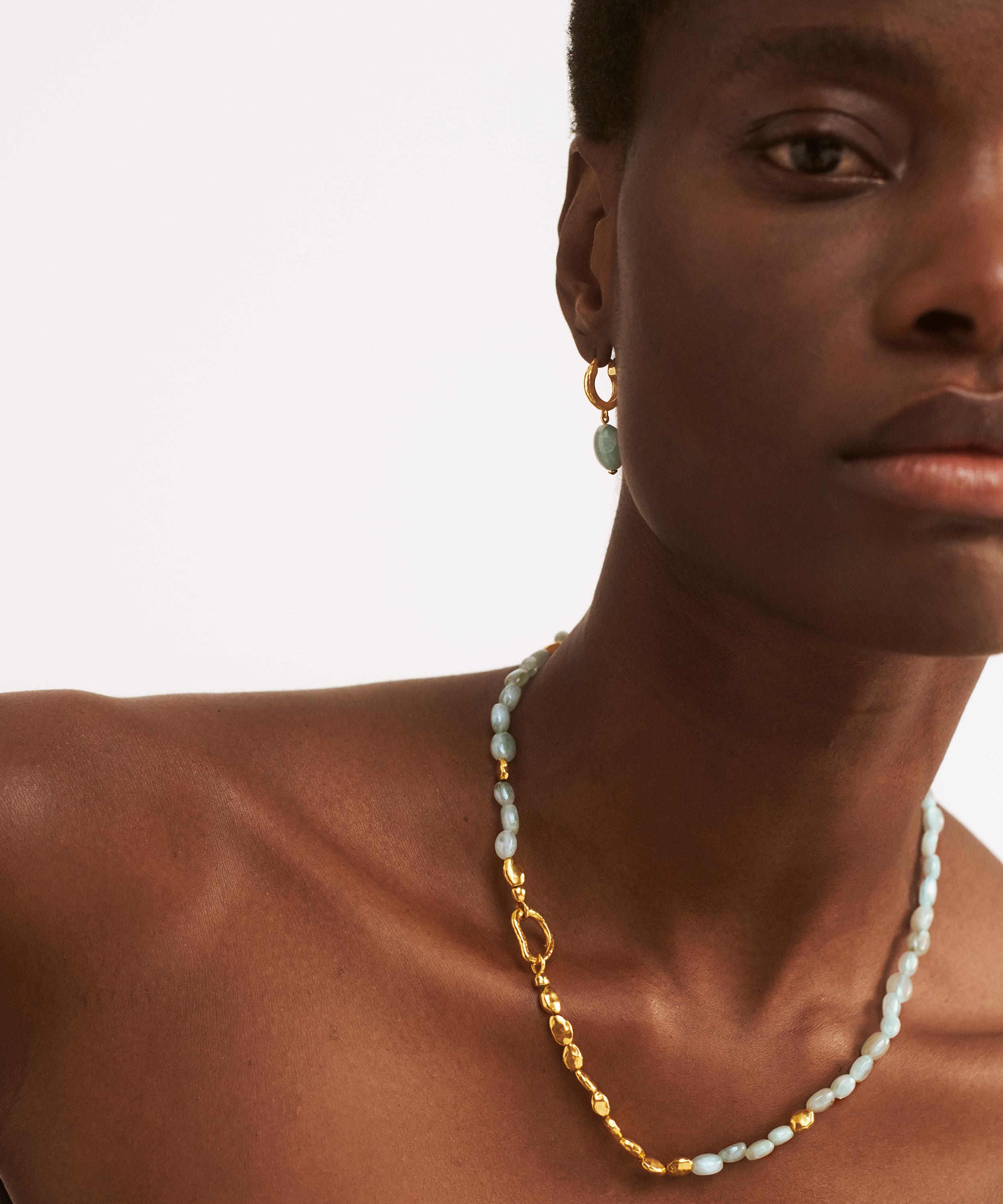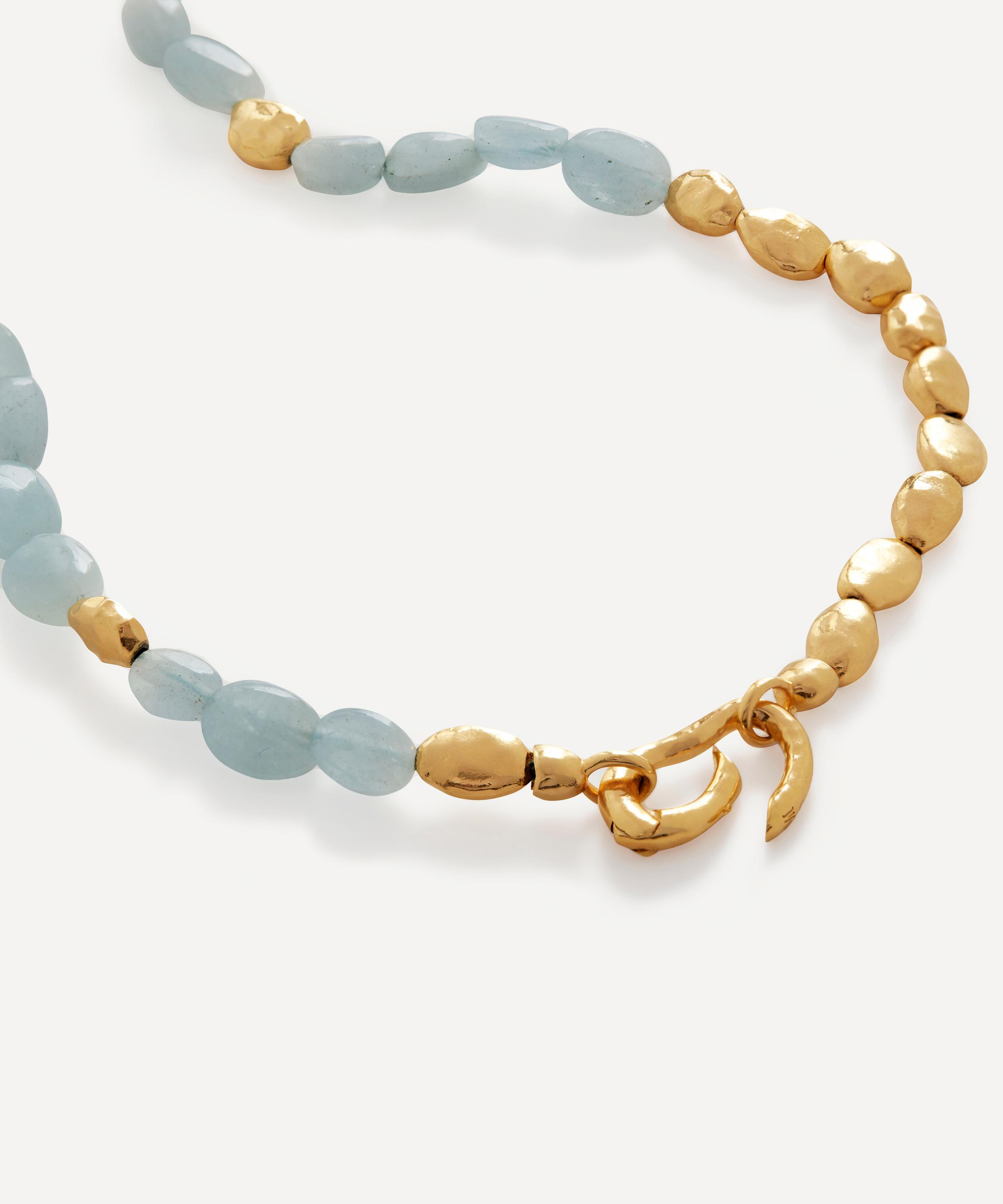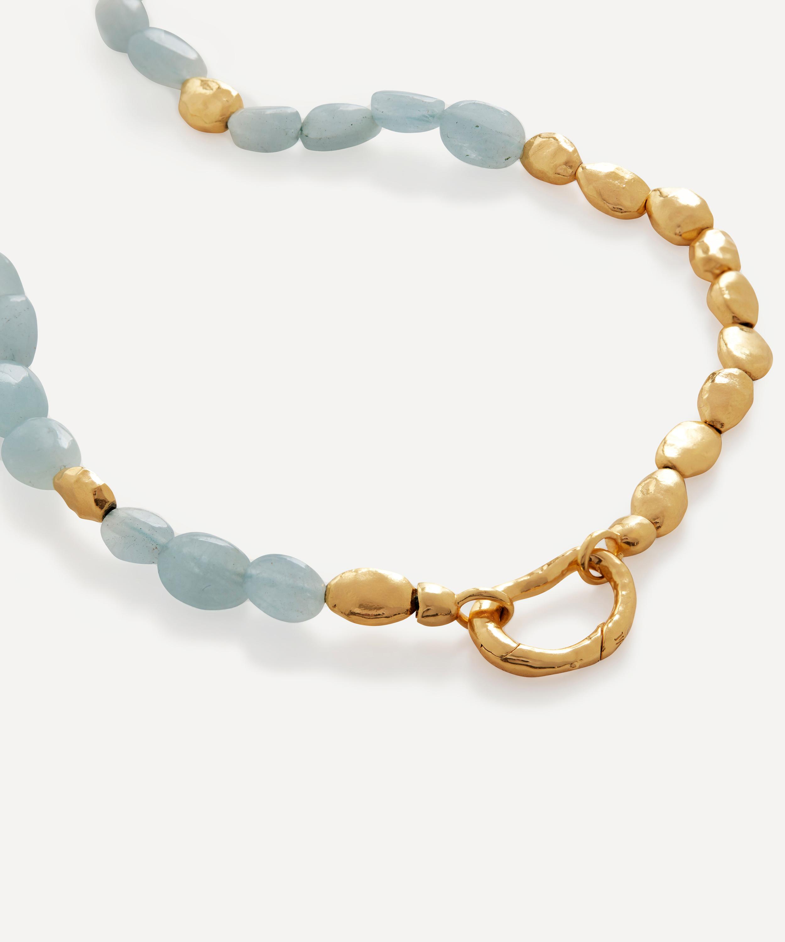 Crafted from 18ct gold-plated vermeil sterling silver, this playfully elegant necklace boasts a colourful statement, with pebble-inspired aquamarine gemstone accents – wear it alone or style as part of a curation of chains for a vibrant, maximalist approach.