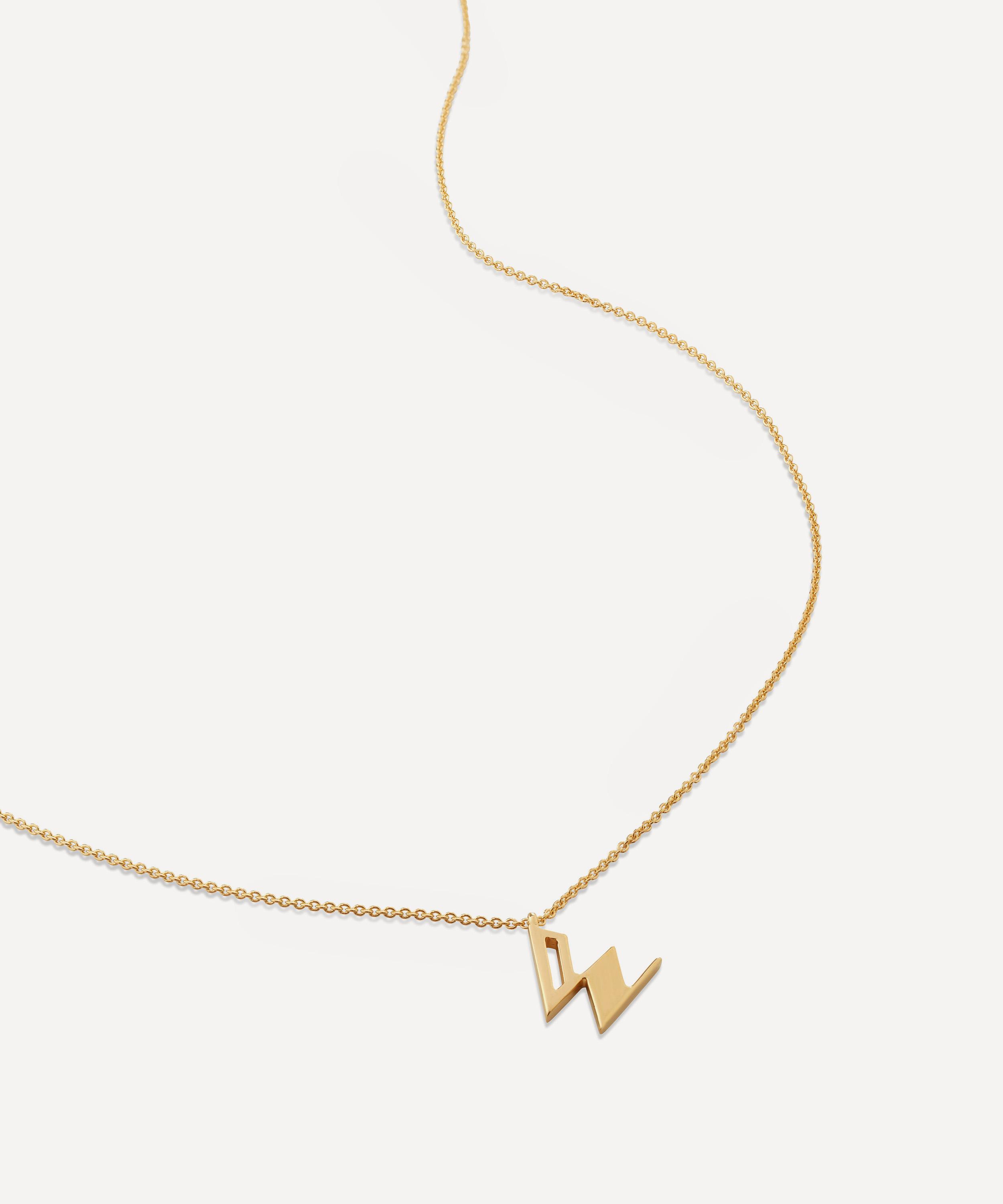 Handcrafted from a radiant 18ct gold-plated vermeil sterling silver, this necklace boasts an art-deco inspired letter charm with a modern finish, complete with a delicate fine chain – style it alone for a minimal, bespoke look, or wear with other chains and pendants for an on-trend curation.