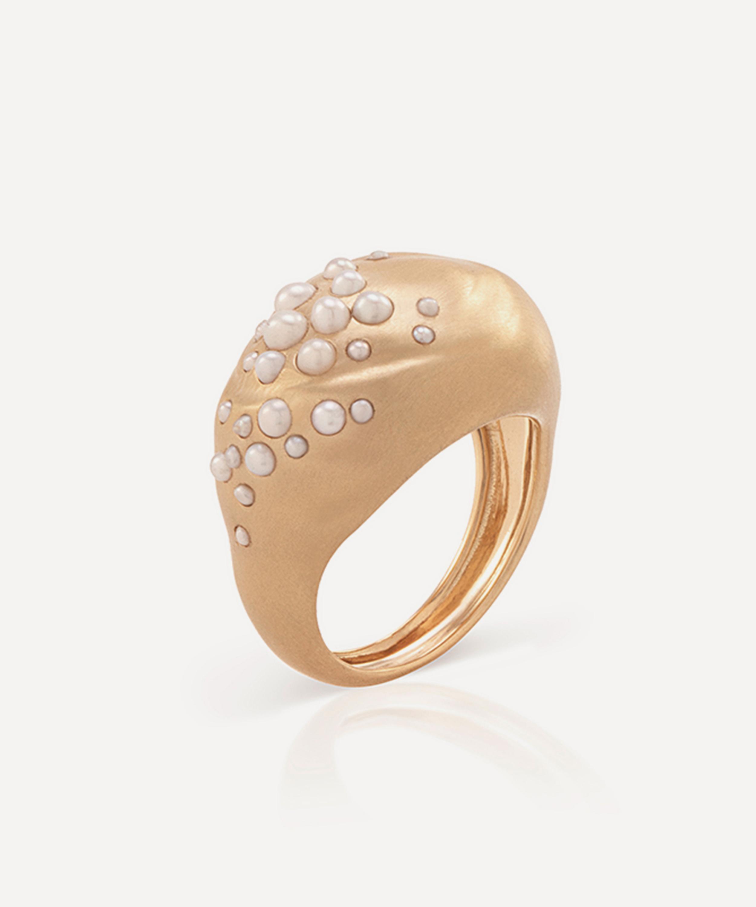 Infusing your look with a bold femininity, Nada Ghazal’s Pop of Hope Pearl Oval Ring will become a staple in your collection. Crafted from 18ct gold, it features an oval silhouette in a hand brushed to matte finish, studded with seed pearls. Take style cues from the brand and layer the designer’s bold feminine pieces together to build on your own powerful narrative.