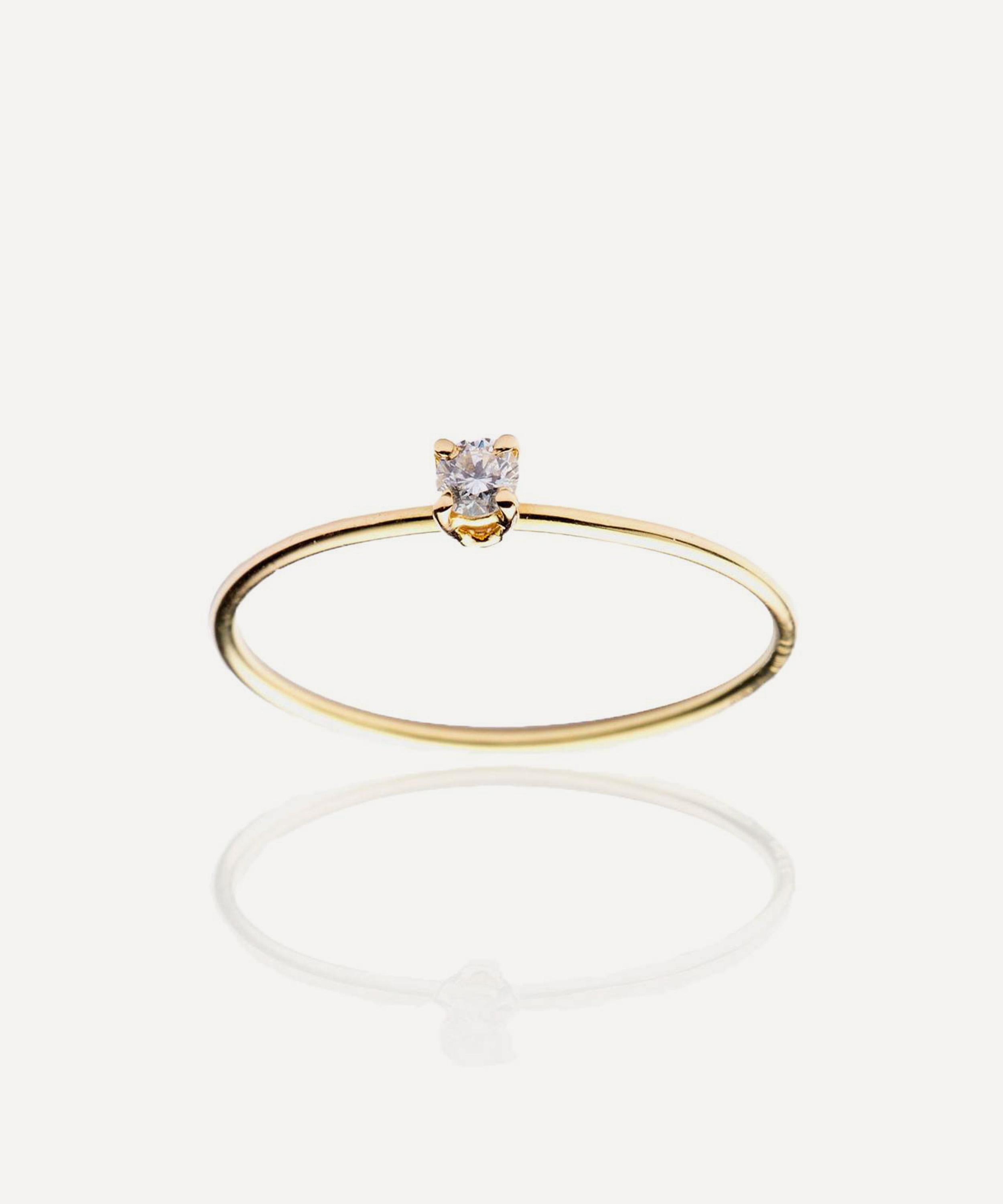 Create a unique jewellery look that is personal to you with the Principesca diamond ring from Atelier VM. Crafted from 18ct gold, it’s centred around a brilliant cut diamond atop a thin, polished band. Wear it by itself, style it with another gold ring from the brand or turn it into an engagement ring.