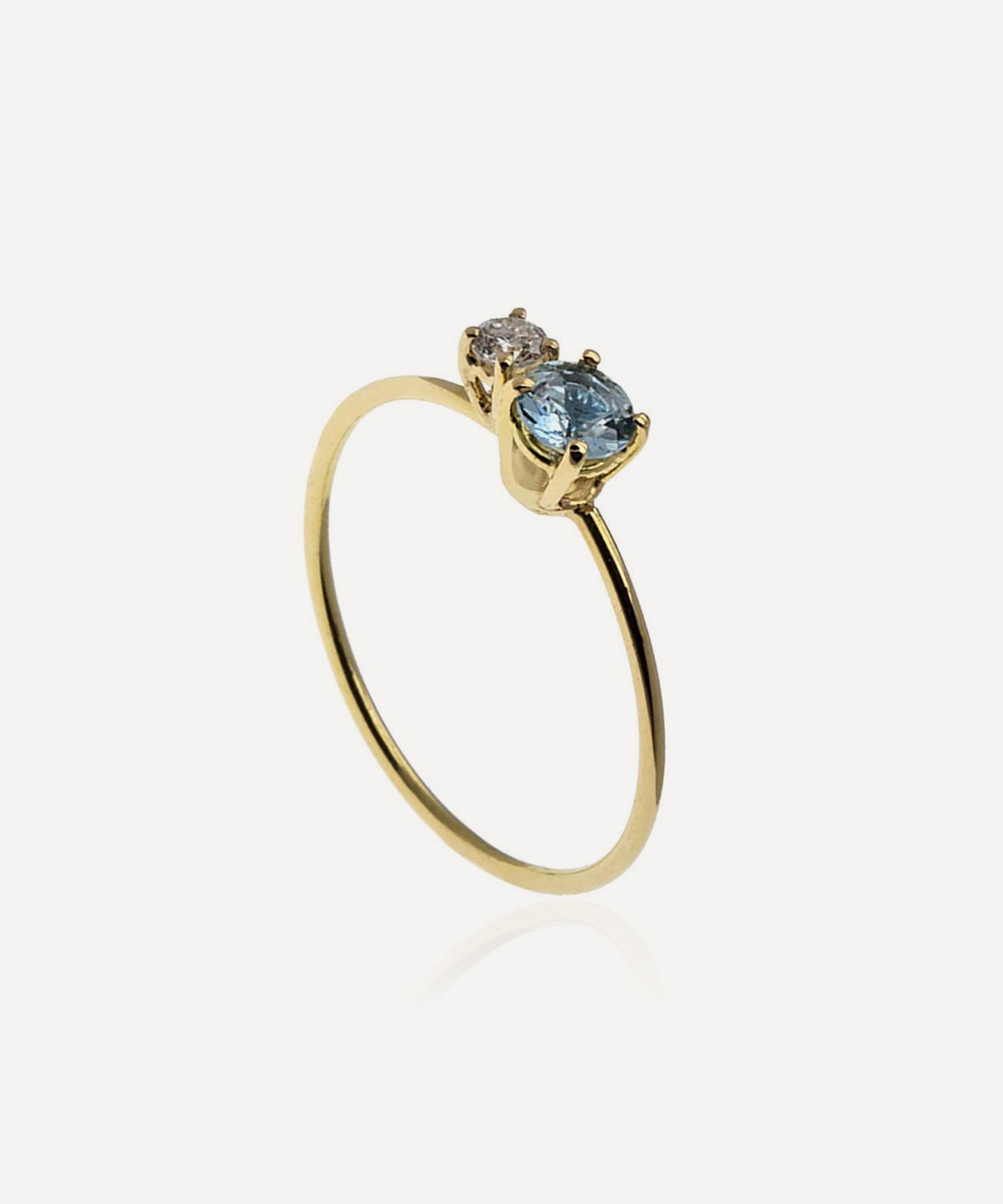 The Principesca aquamarine ring is crafted from solid 18 carat gold by Italian fine jewellery designers Atelier VM. Epitomising the brand's appreciation for light, refined styling with a brilliant cut diamond and aquamarine, perched atop a thin wire band. Perfect for gifting or adding to your own collection, it can be worn alone for an ultra-minimal everyday look, or stacked with several other Atelier VM rings for a trend-led, contemporary finish.
