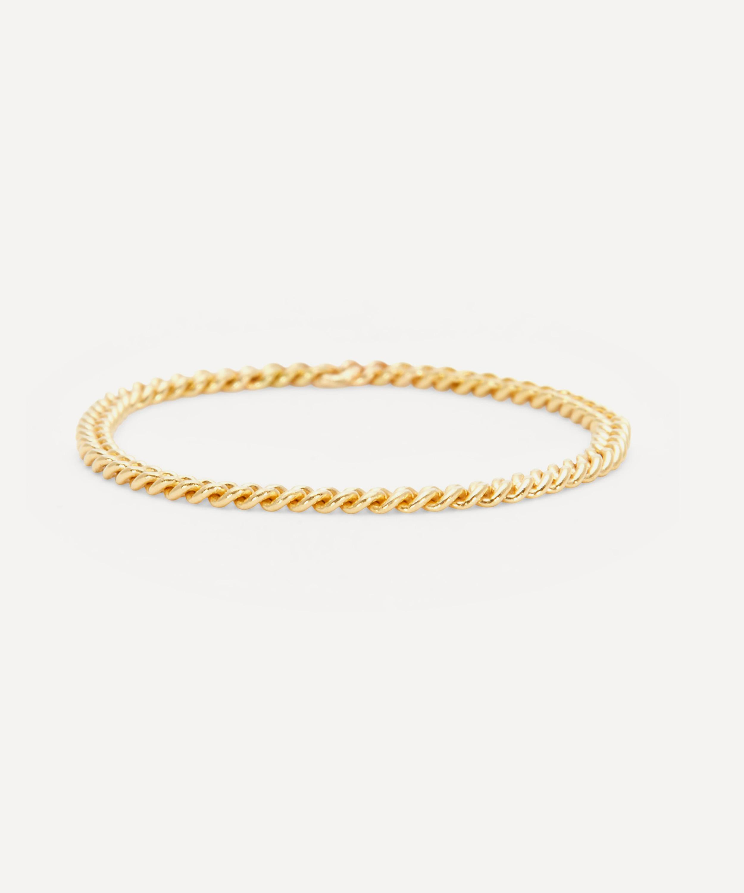 Crafted from solid 18ct gold, it takes the shape of a twisted ribbon chain in a polished finish. Try pairing it with the Stella Chain Ring or style it with contrasting band rings to create an eclectic ring stack.