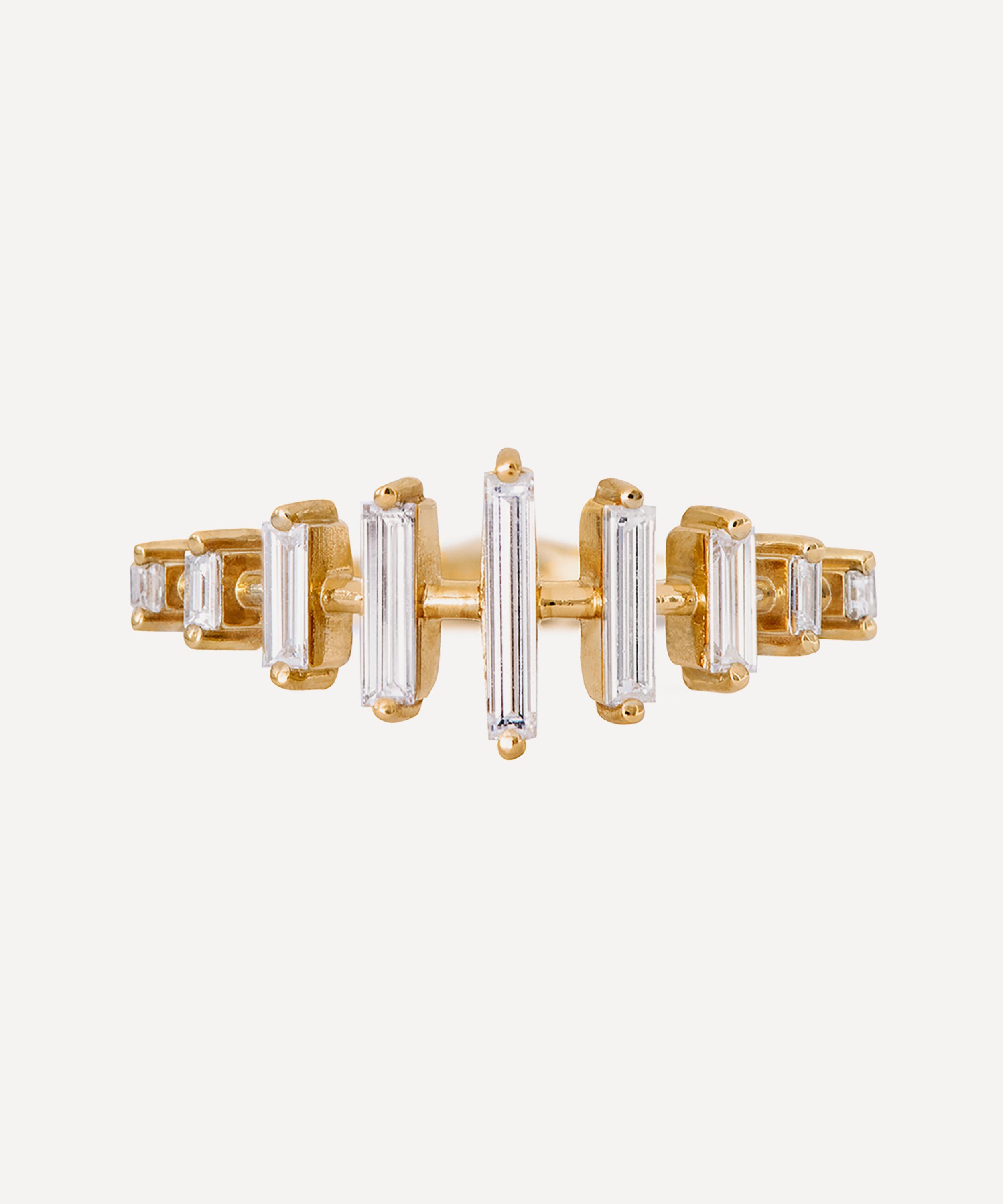 This ring from fine jewellery brand Artemer exemplifies the designer’s expert eye for stunningly cut gems and divine compositions. A symbol of love and dedication, it’s crafted from solid 18ct gold, featuring a linear line up of illuminating needle baguette diamonds and square cut diamonds. Style it solo, stack it with a wedding band or team it with other gem encrusted rings for a beautiful curation that’s out of this world.