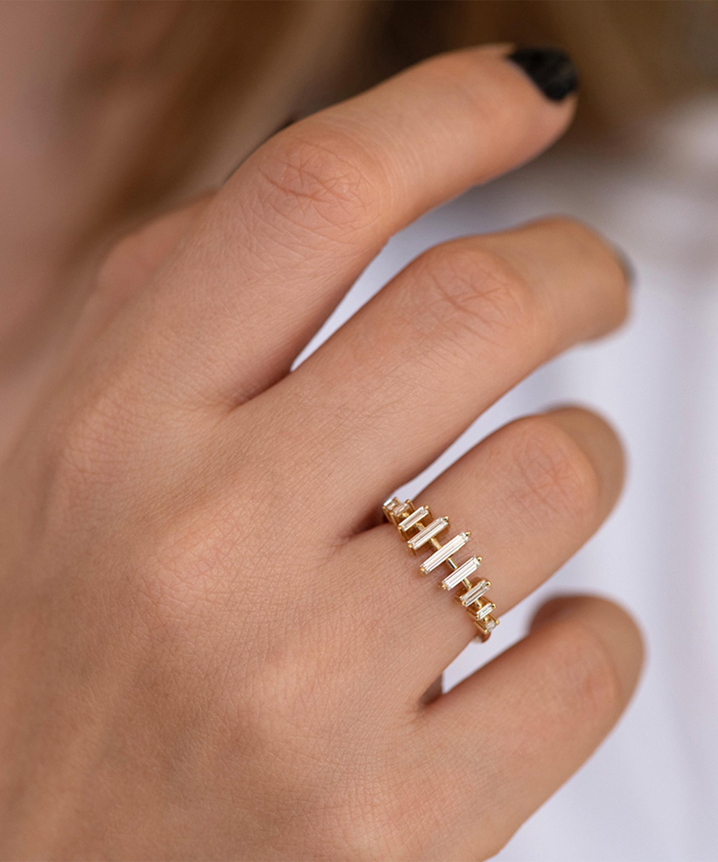 18ct Gold Spaced Needle Baguette Diamond Ring