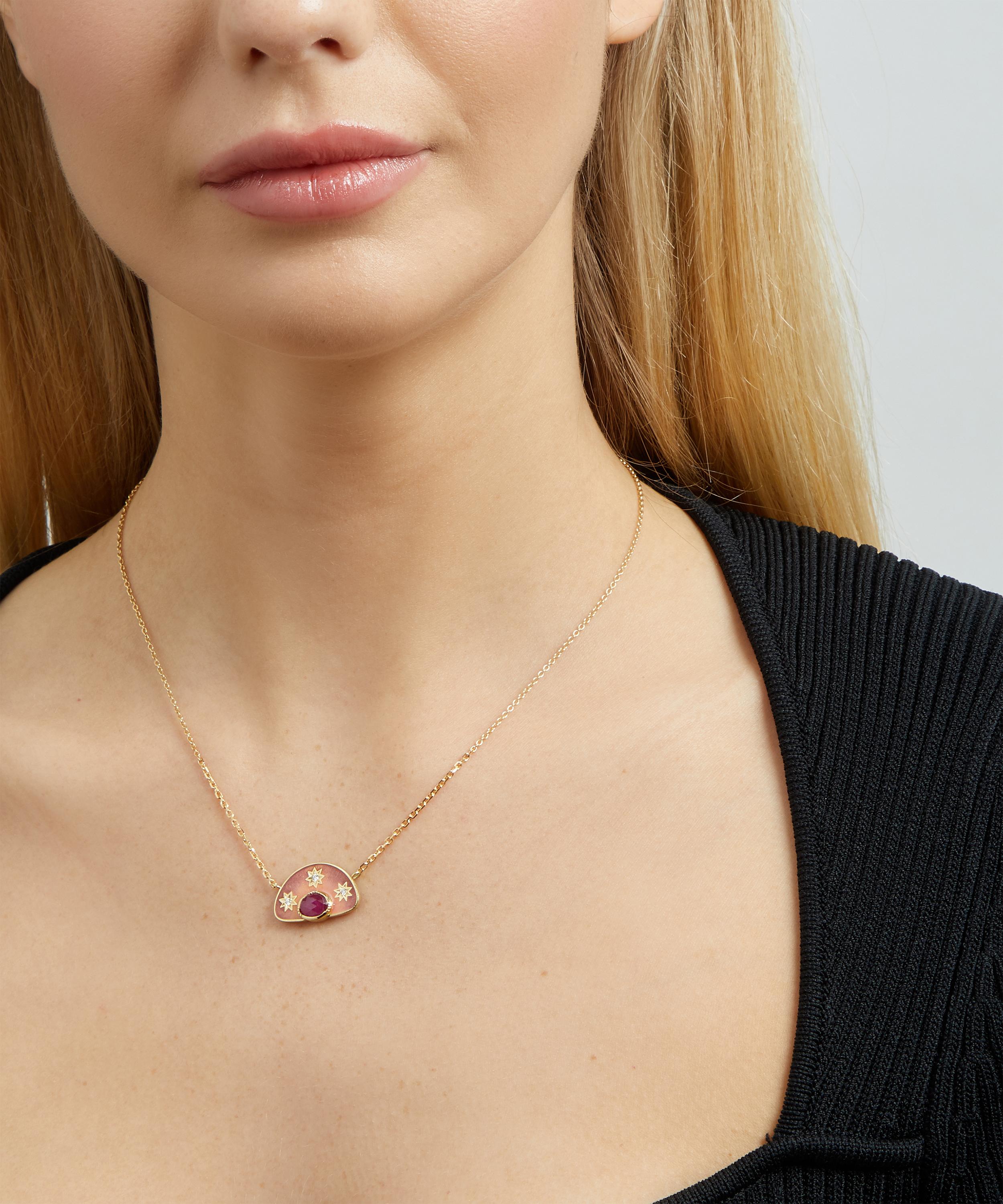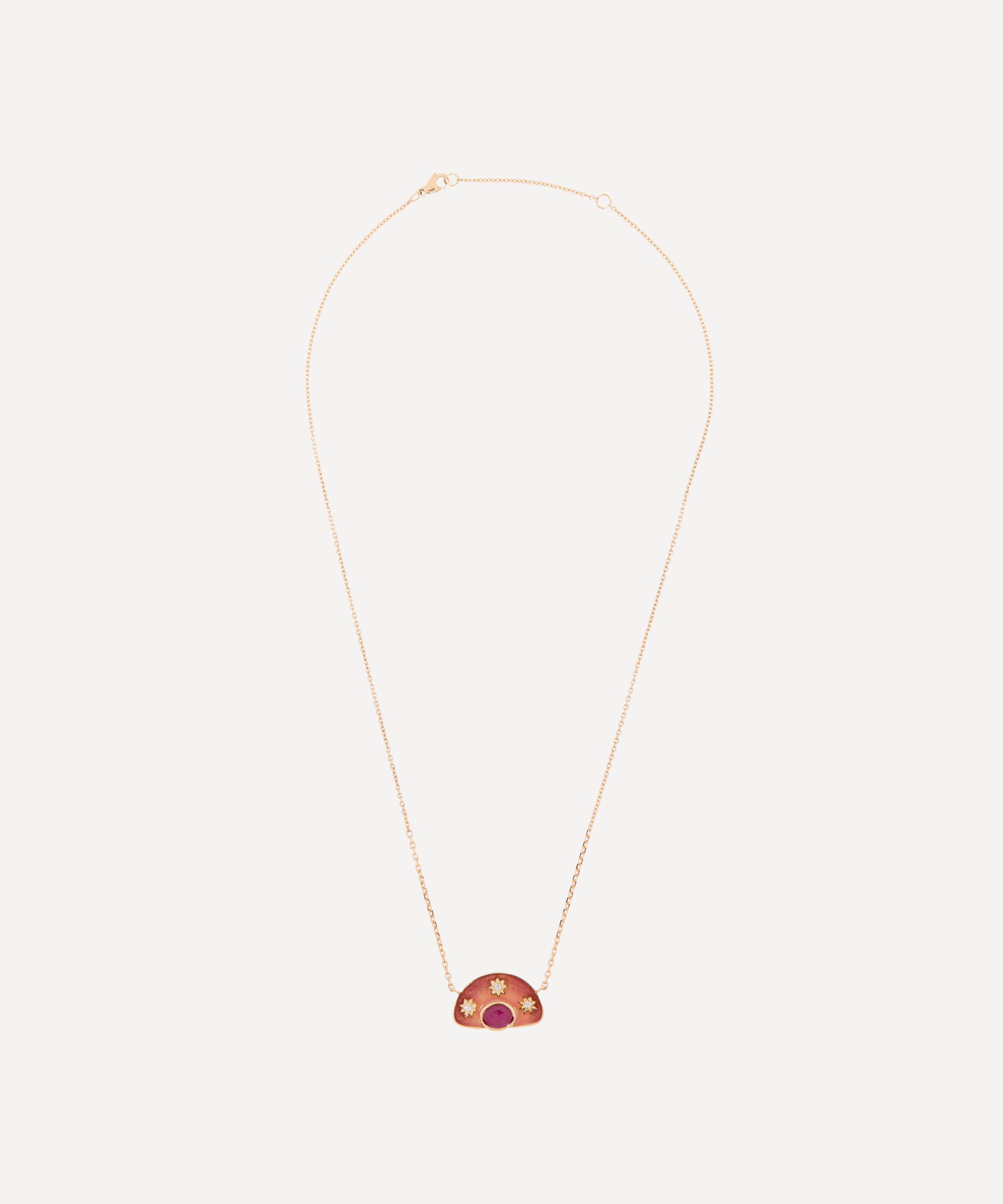 18ct Gold Stargaze Ruby and Diamond Enamel Pendant Necklace