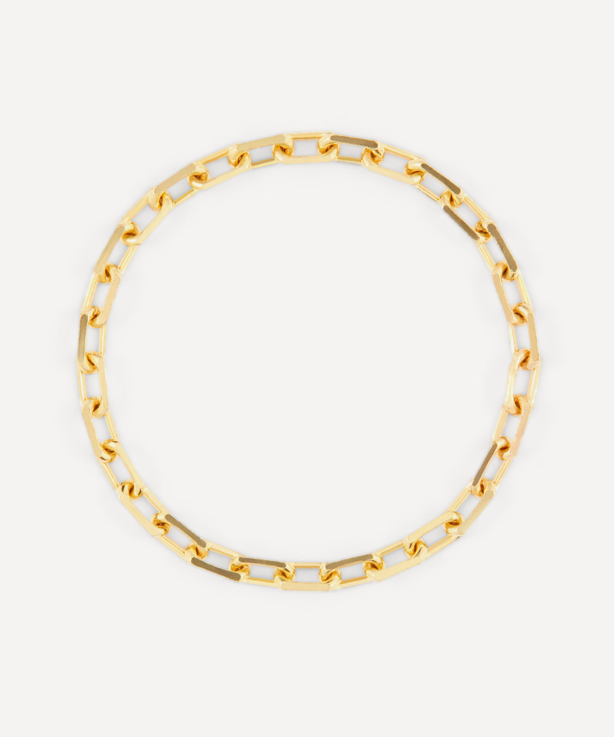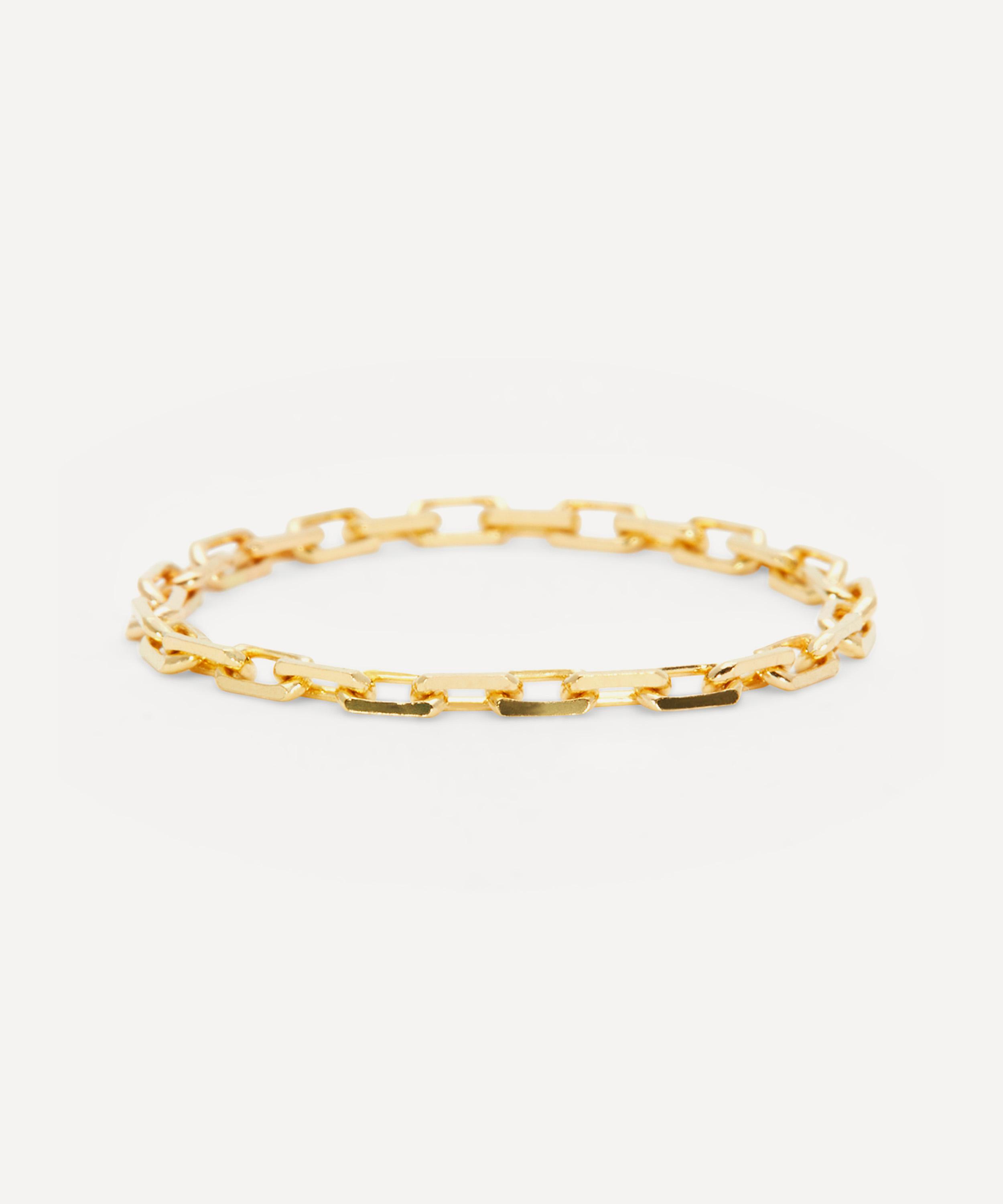 Crafted from solid 18ct gold, it takes the shape of a sleek, yet bold cable chain in a polished finish. Try pairing it with the Ribbon Chain Ring or style it with contrasting band rings to create an eclectic ring stack.