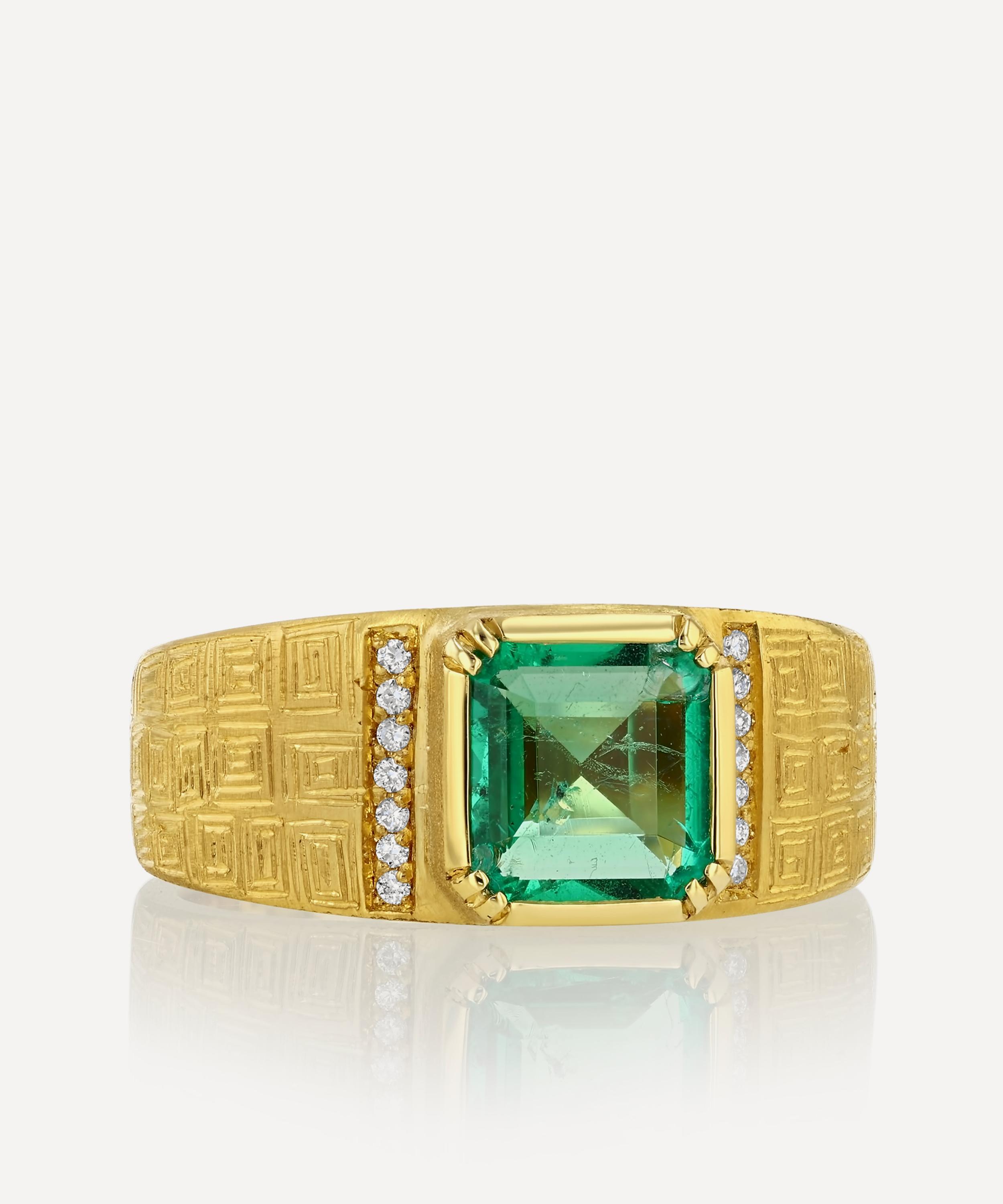 Brooke Gregson 18ct Gold Talisman Shield Emerald Engraved Ring