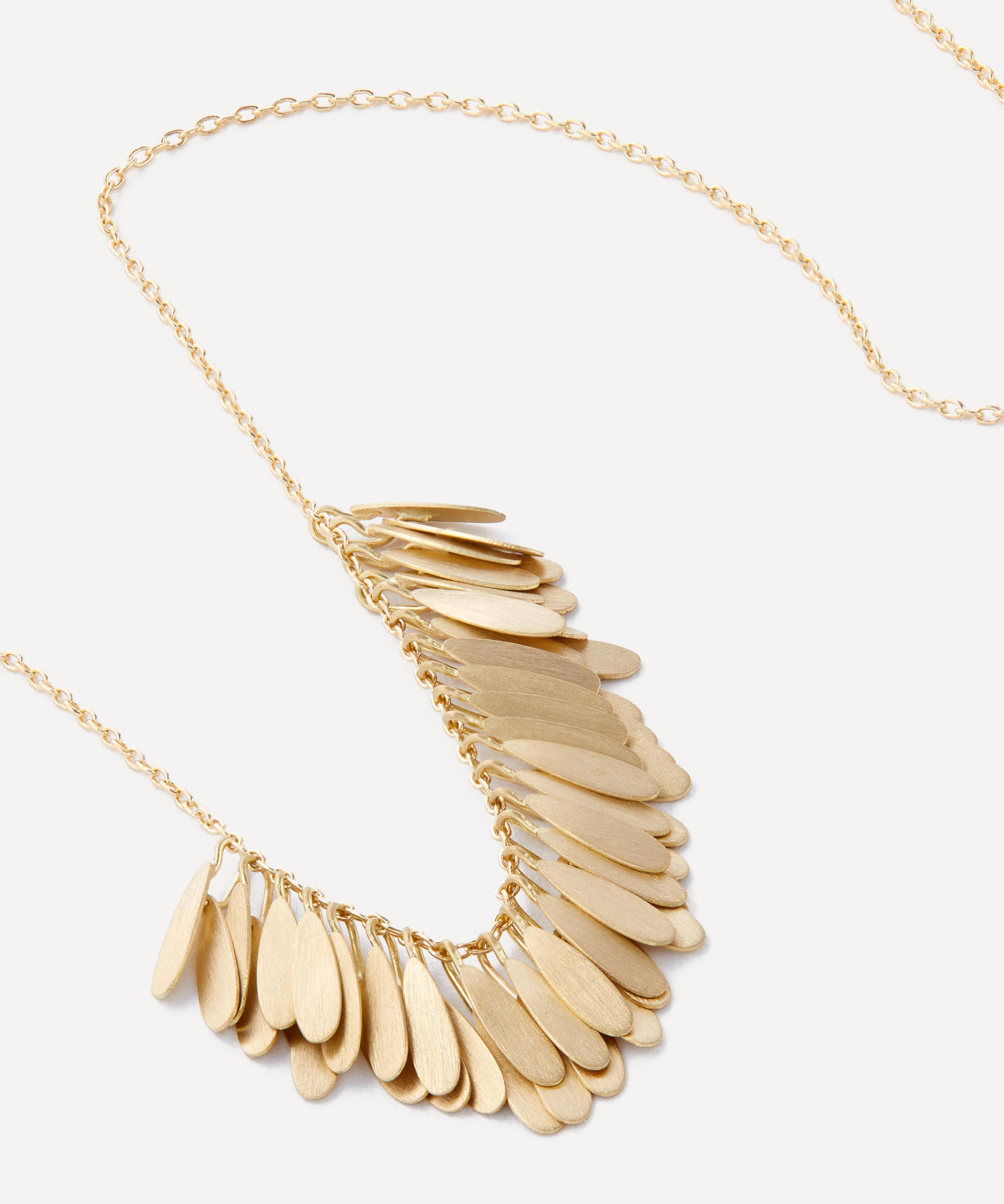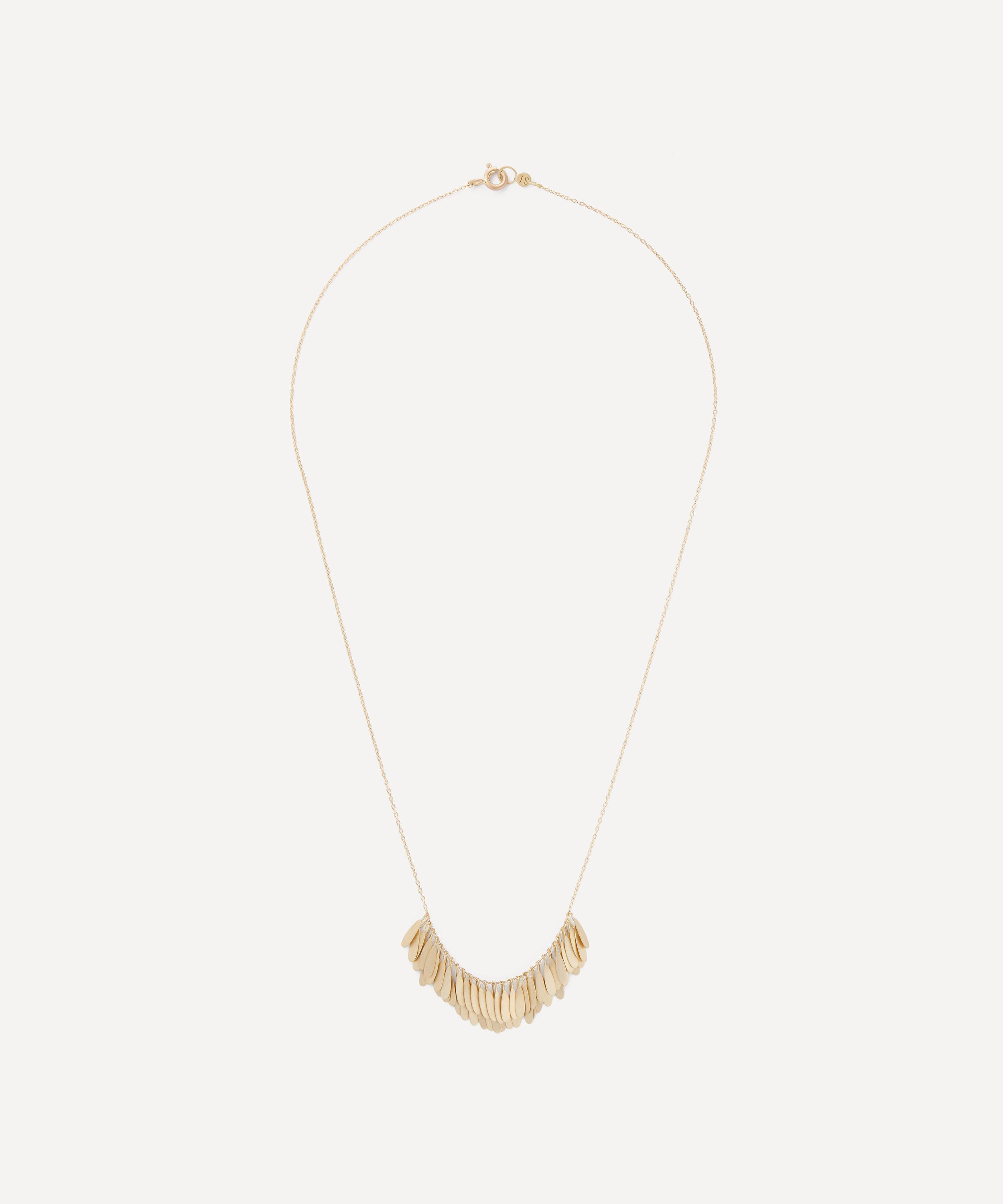 Showcasing the designer's skill for fine detail, the Tiny Dandelion Arc necklace by Sia Taylor features her signature minimal aesthetic. Crafted from 18ct gold, it’s characterised by a double cluster of overlapping, golden petals on a fine chain.
