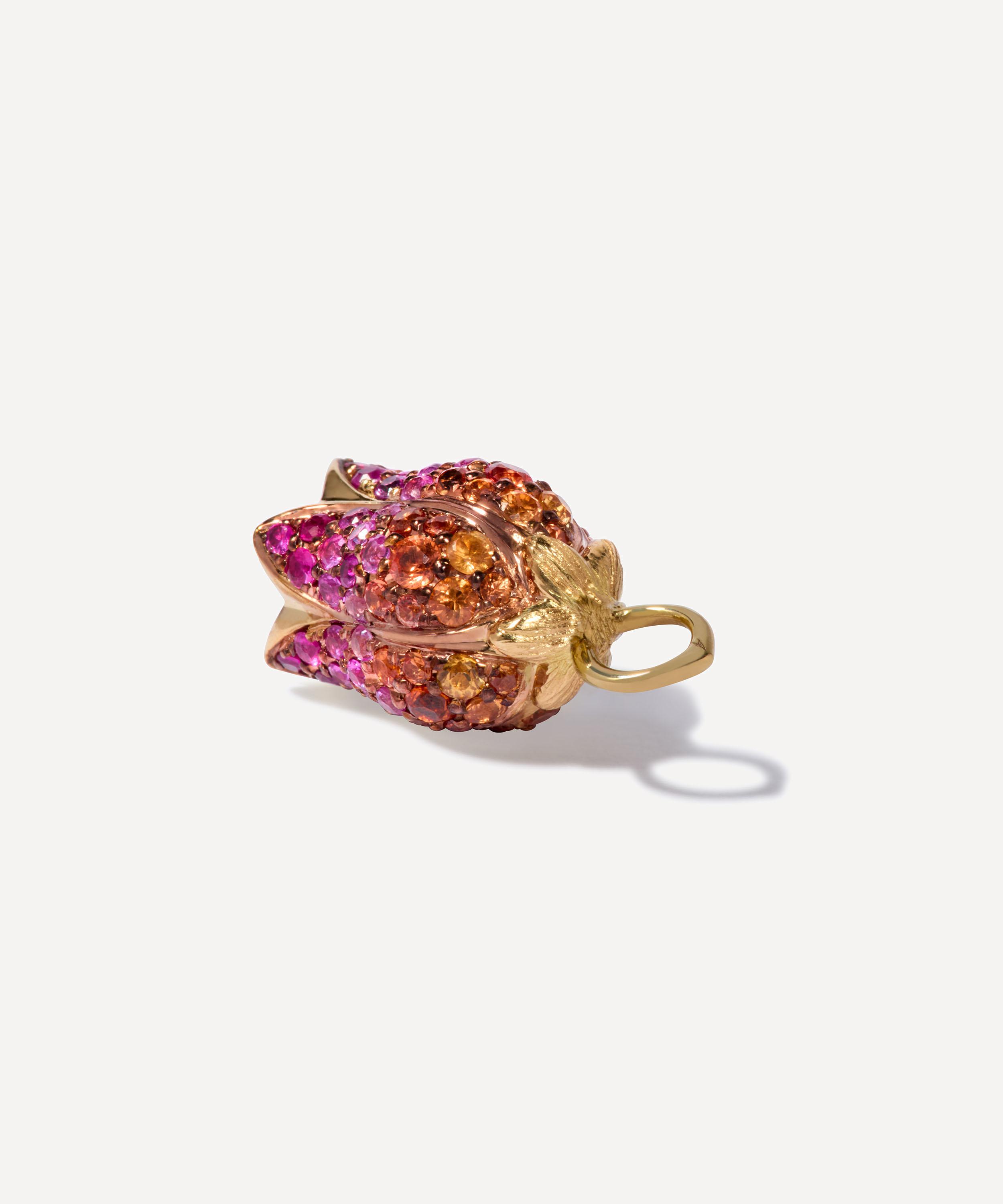 Inspired by Annoushka's love for nature, each delicate earring drop is crafted by hand from 18ct gold with orange and pink sapphires to form a delicate tulip, finished with a tiny briolette spinel emerging from the downward bloom for a subtly swaying shimmer. Attach them to a pair of classic gold or diamond-encrusted hoops for an instantly elevated look.