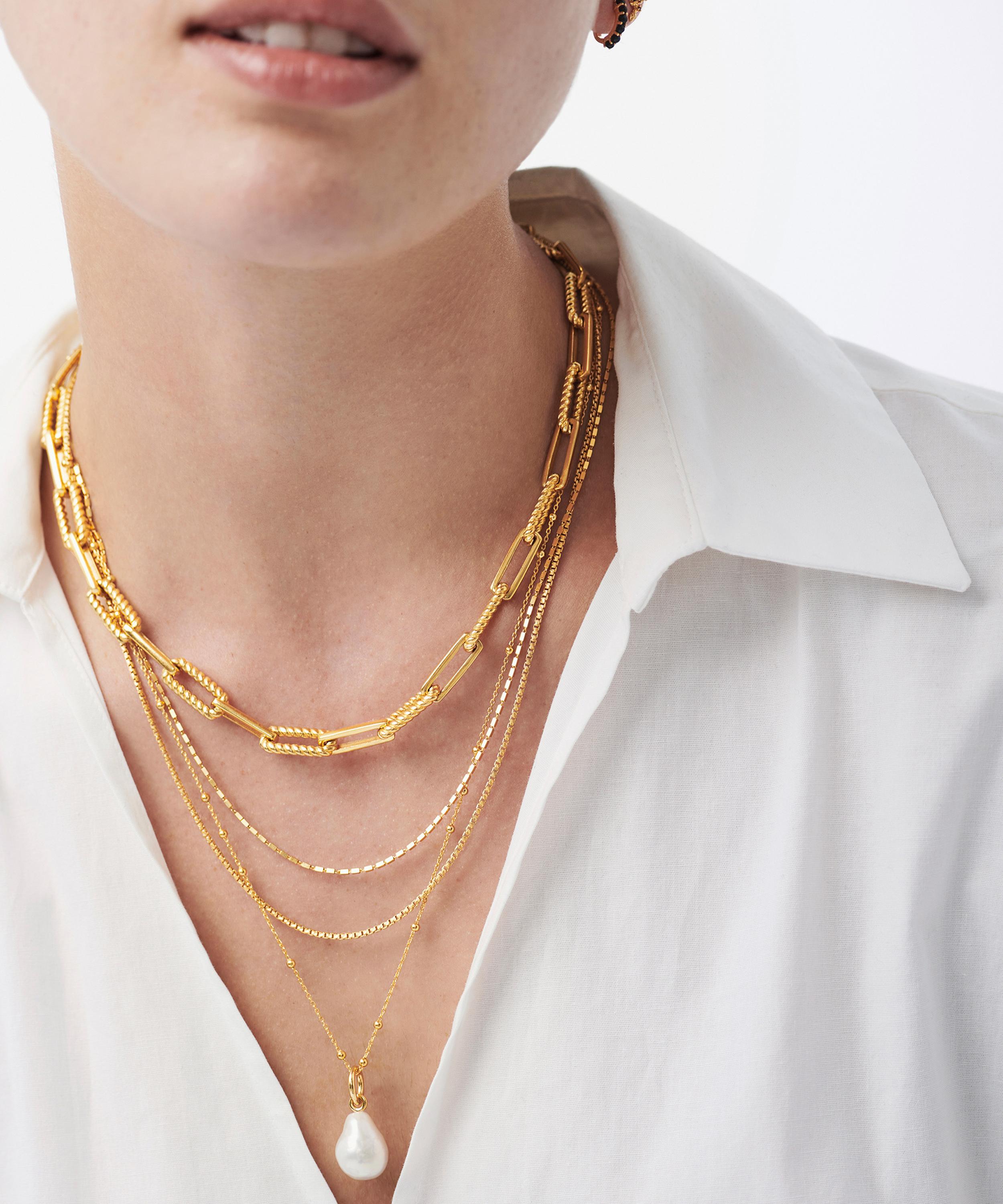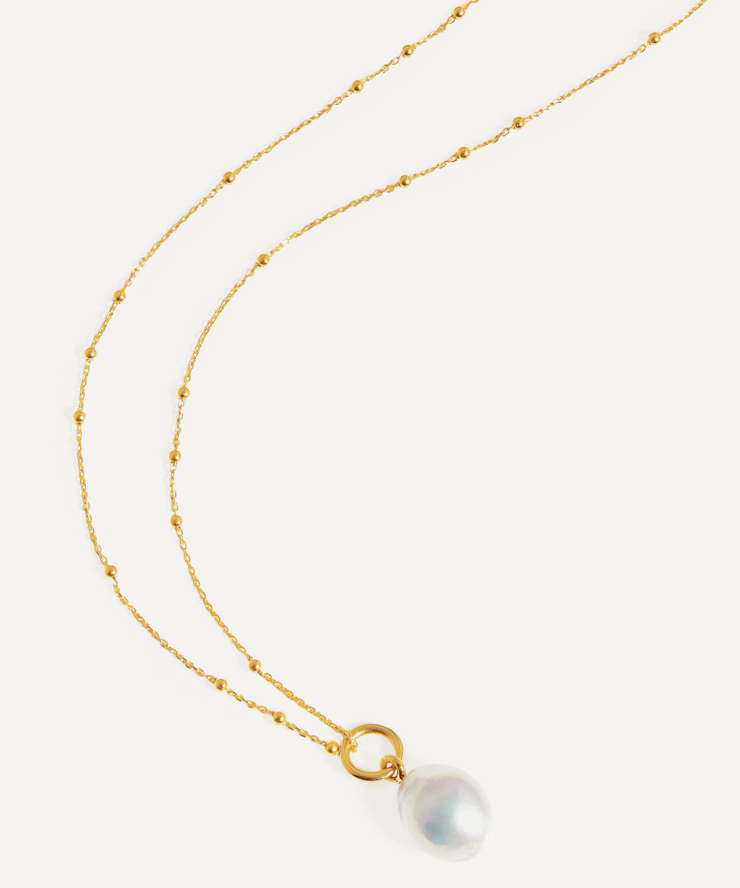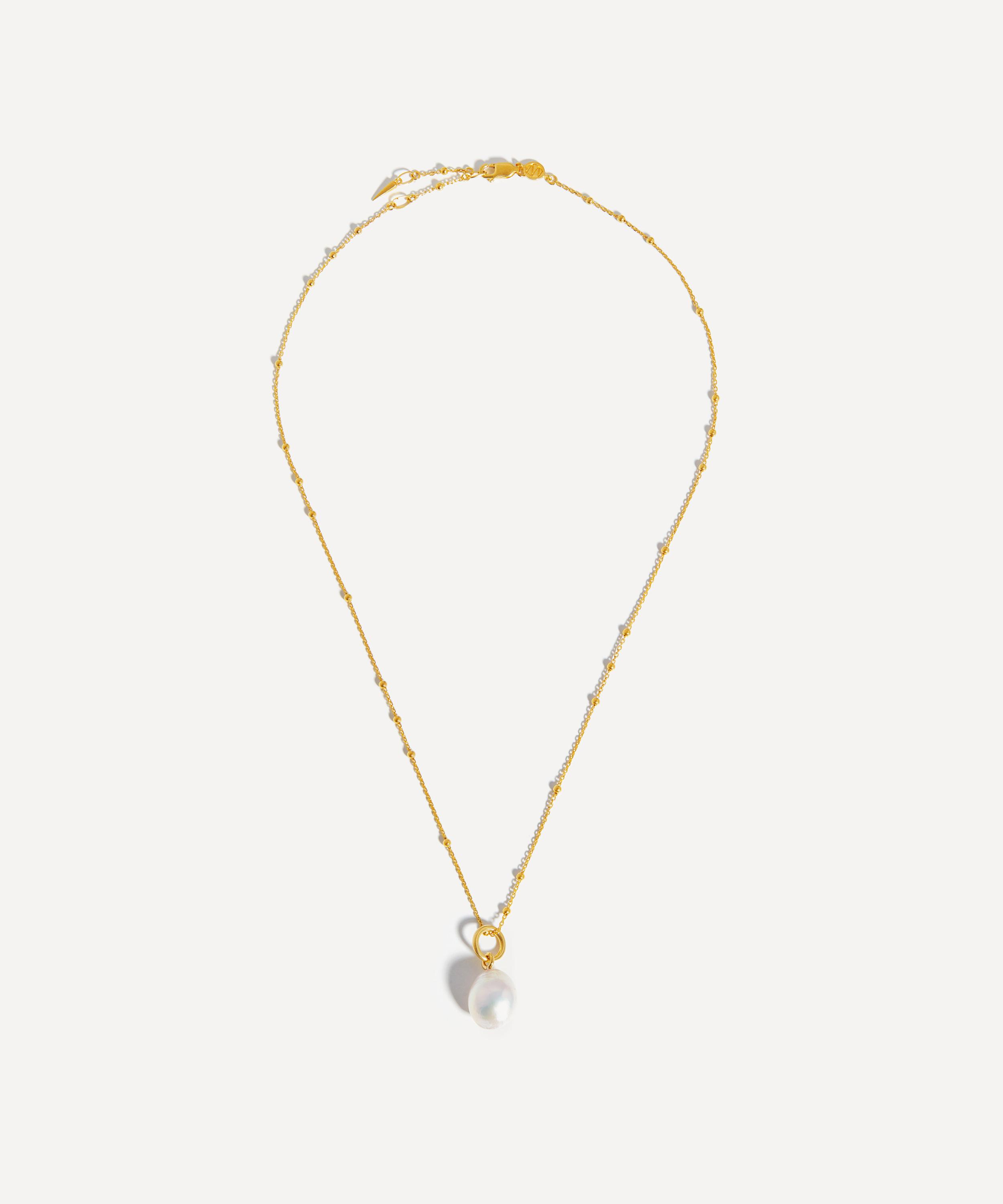 Inspired by natural forms, this pearl chain necklace from Missoma showcases a timeless design with a contemporary edge. Crafted from silver plated in 18ct gold vermeil, this necklace features the best-selling orb chain adorned with a detachable baroque pearl charm. Complete with a classic lobster clasp, style this opulent piece alone, or pair it with additional chains for a layered curation.