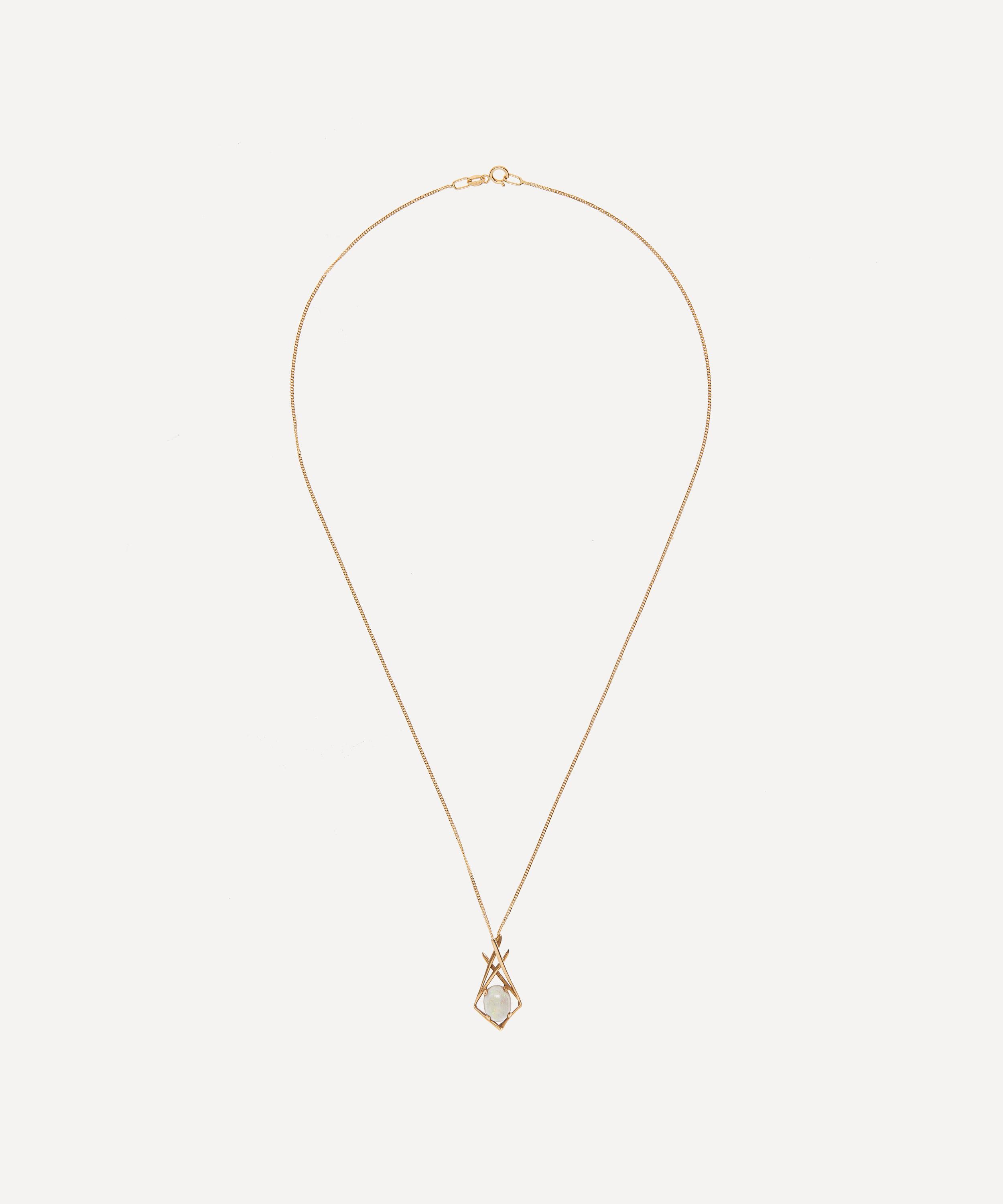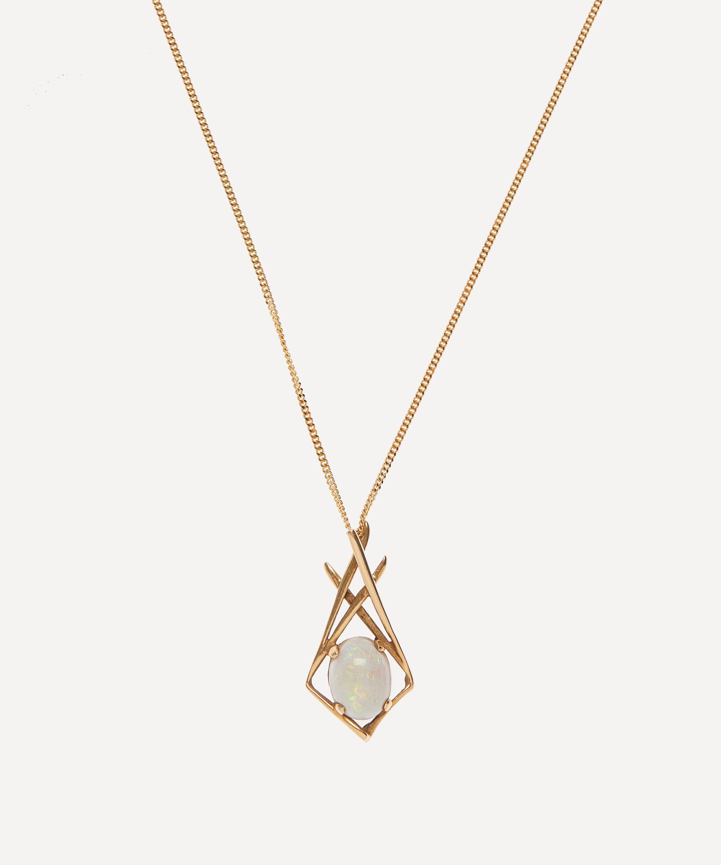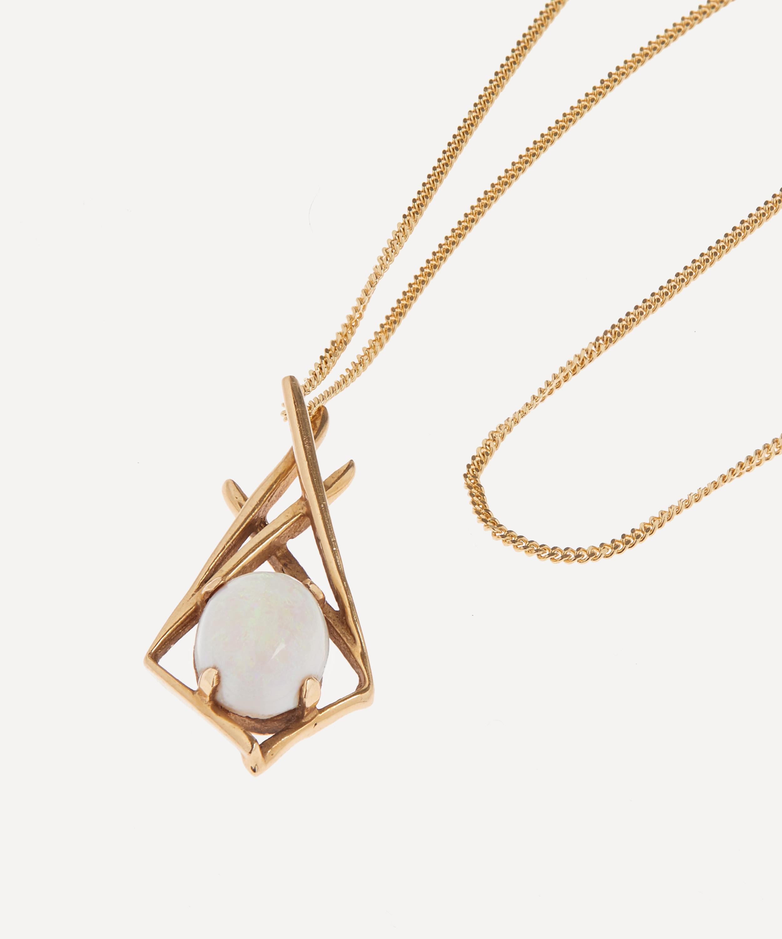 Dating back to the 1970s, this Vintage Opal Pendant necklace from antique purveyor Kojis is set with a 0.75 carat opulent opal.