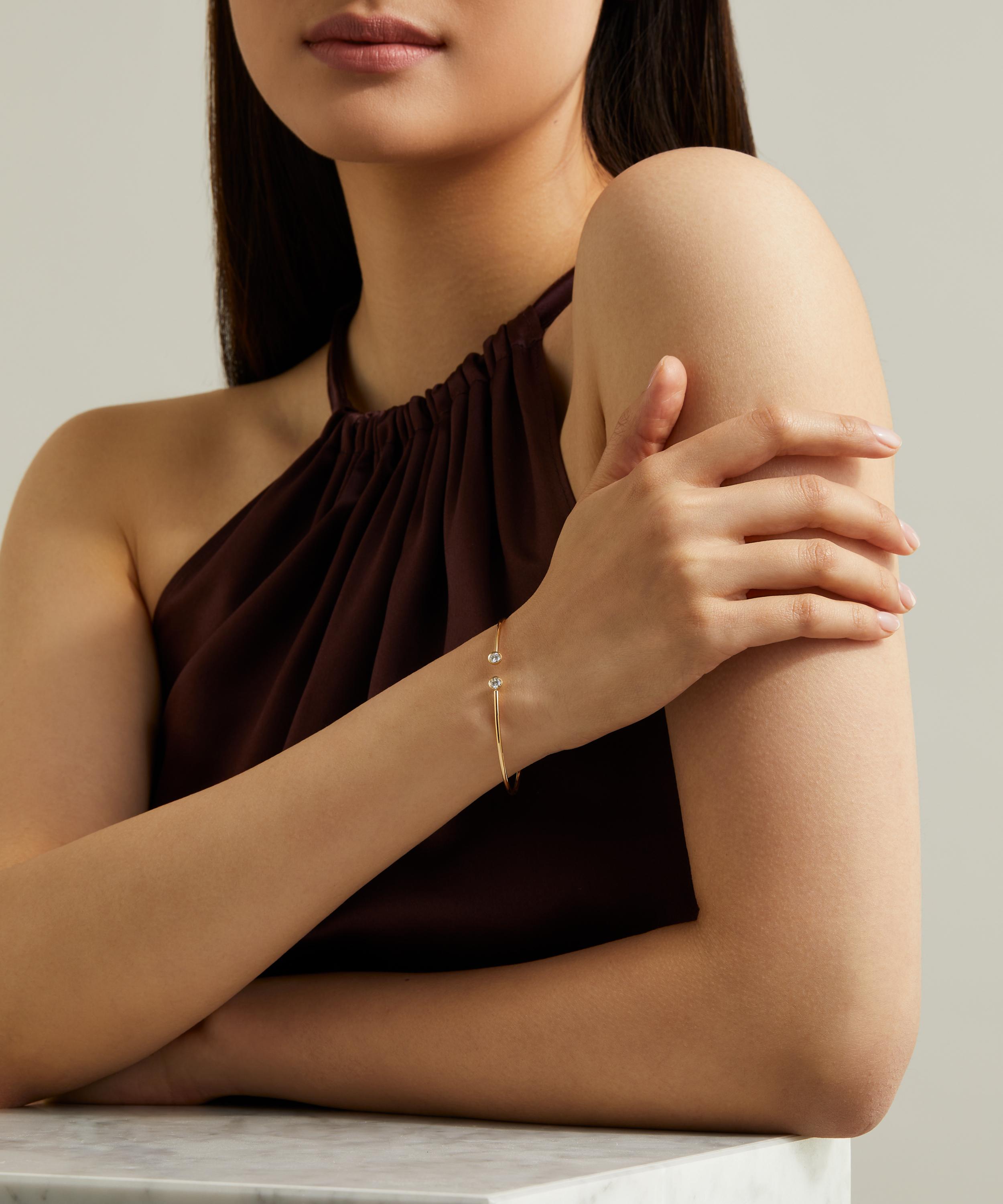 Celebrate your love story with Liberty’s Voti cuff bracelet – a symbol of your forever. Crafted from 18ct gold, this minimalist creation takes its inspiration from the Liberty archive, featuring simple, clean lines with a sparkling diamond on either end of the cuff. Perfect for the refined and sophisticated woman looking for a modern yet timeless look, it makes for a beautiful every day or special occasion option.