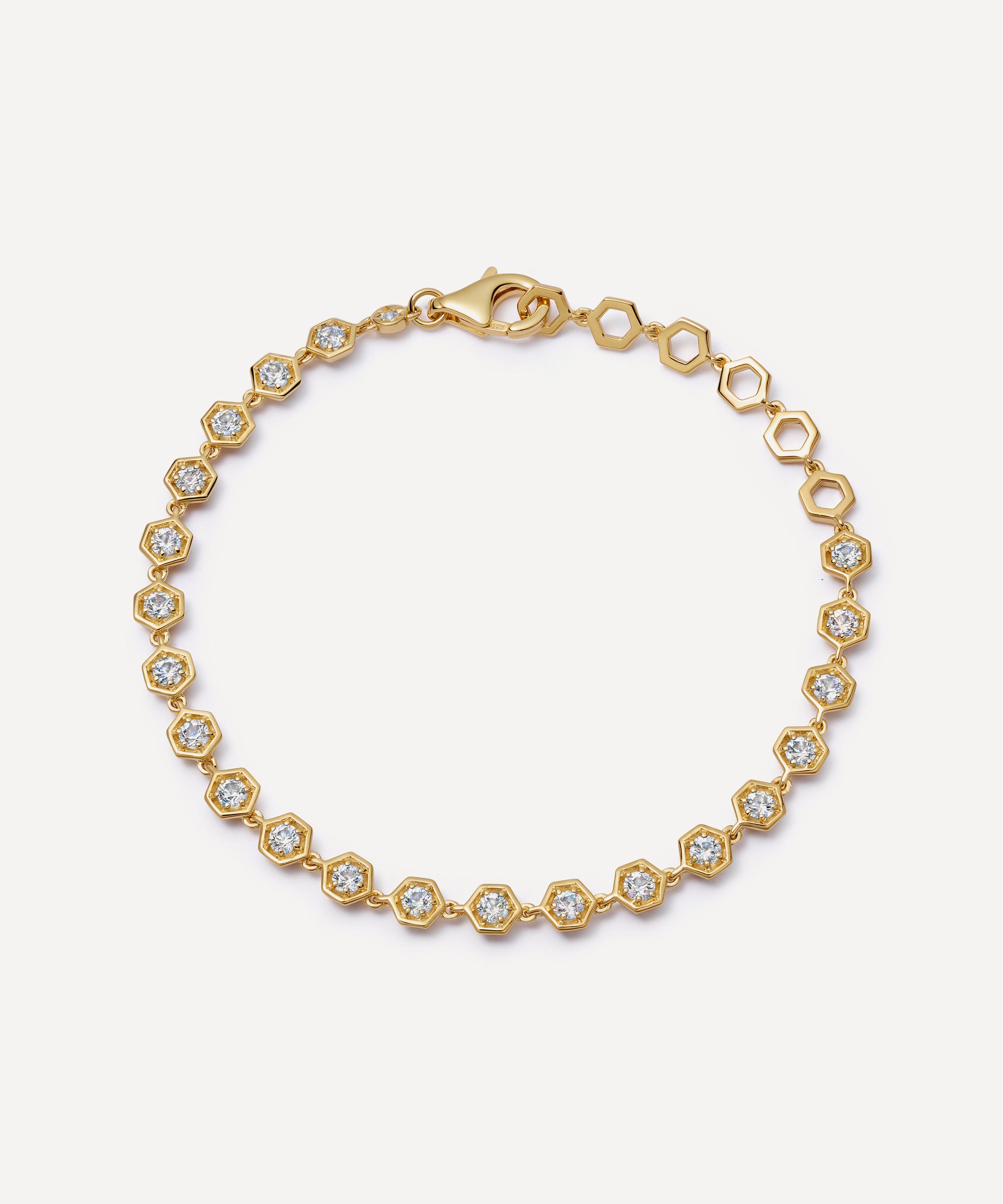 Crafted in sterling silver plated in 18ct gold vermeil, it features hexagonal-cut white sapphires. Perfect for stacking, try styling it with several other pieces from the collection for a bold curation.