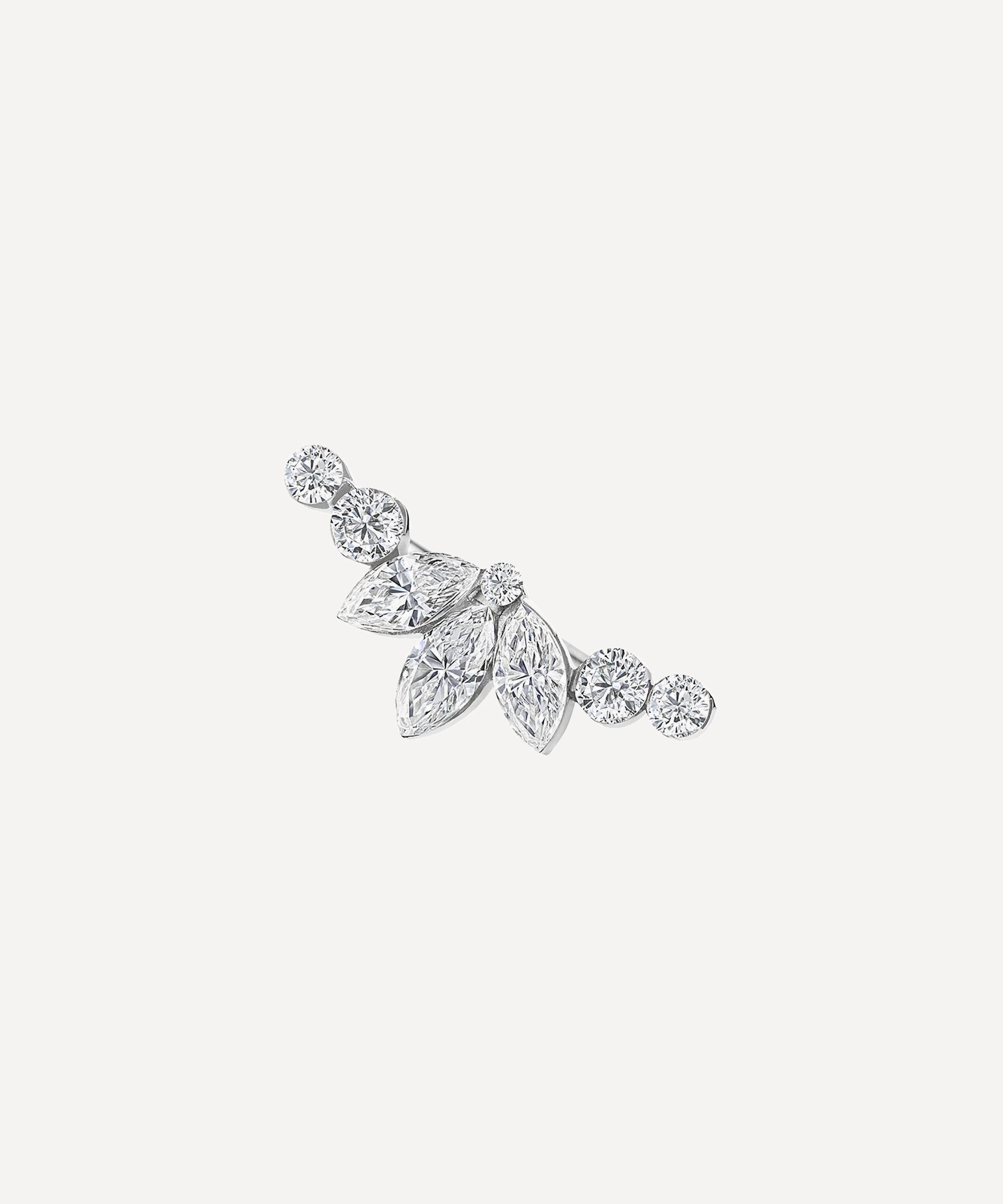An updated take on a Maria Tash signature, this diamond lotus garland climber earring is designed to trace the curve of the right earlobe.