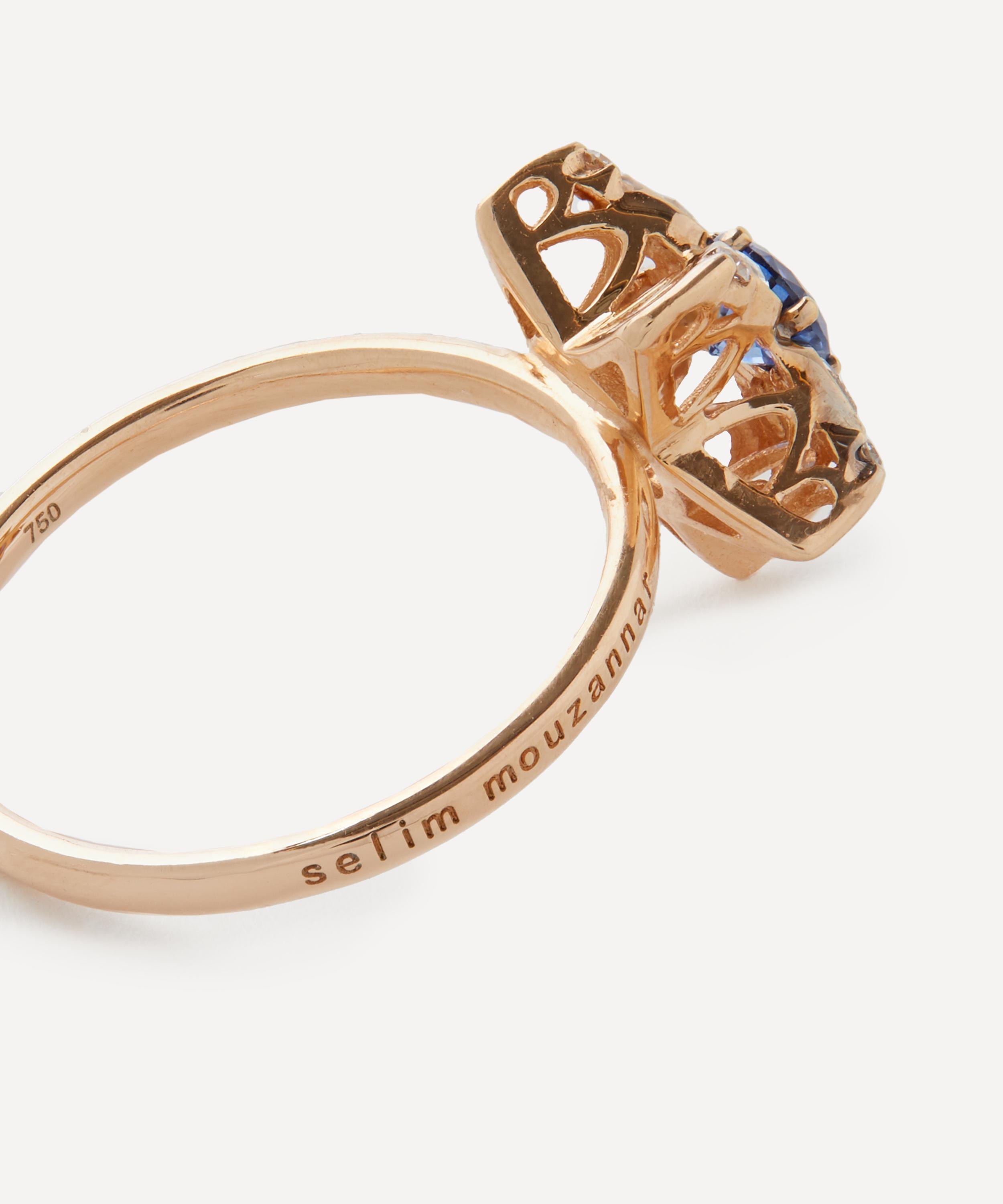 A sparkling symbol of success and self-confidence, this ring is part of Selim Mouzannar's Istanbul collection. Drawing on the ancient history of the vibrant Turkish city, the Istanbul collection recreates the myriad of stars that shone down on the Ottoman Empire. Handcrafted from 18 carat rose gold, this ring features a small five-point star encrusted with a blue sapphire surrounded by five pear-cut diamonds.