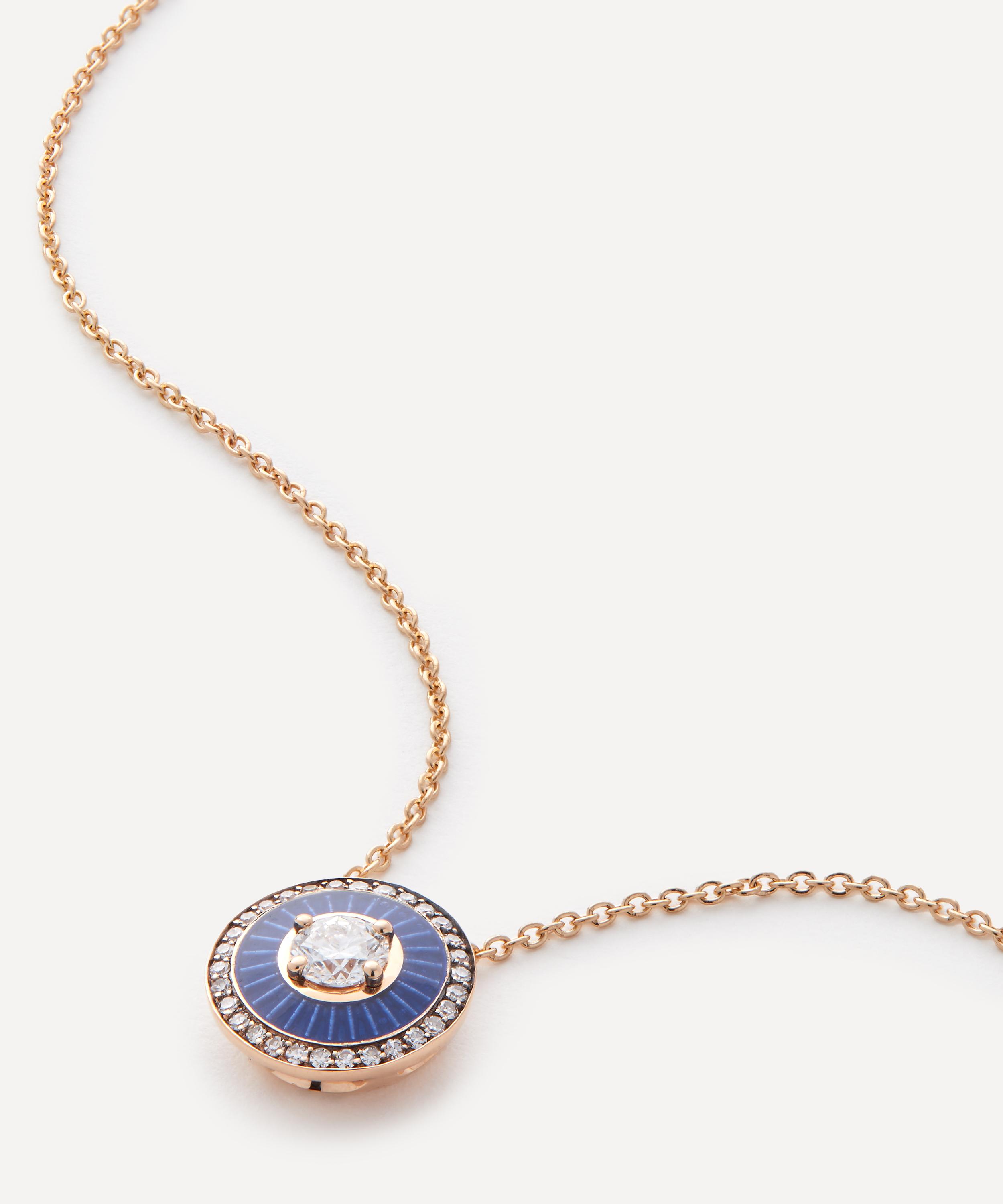 18ct Rose Gold Mina Blue Enamel and Diamond Pendant Necklace