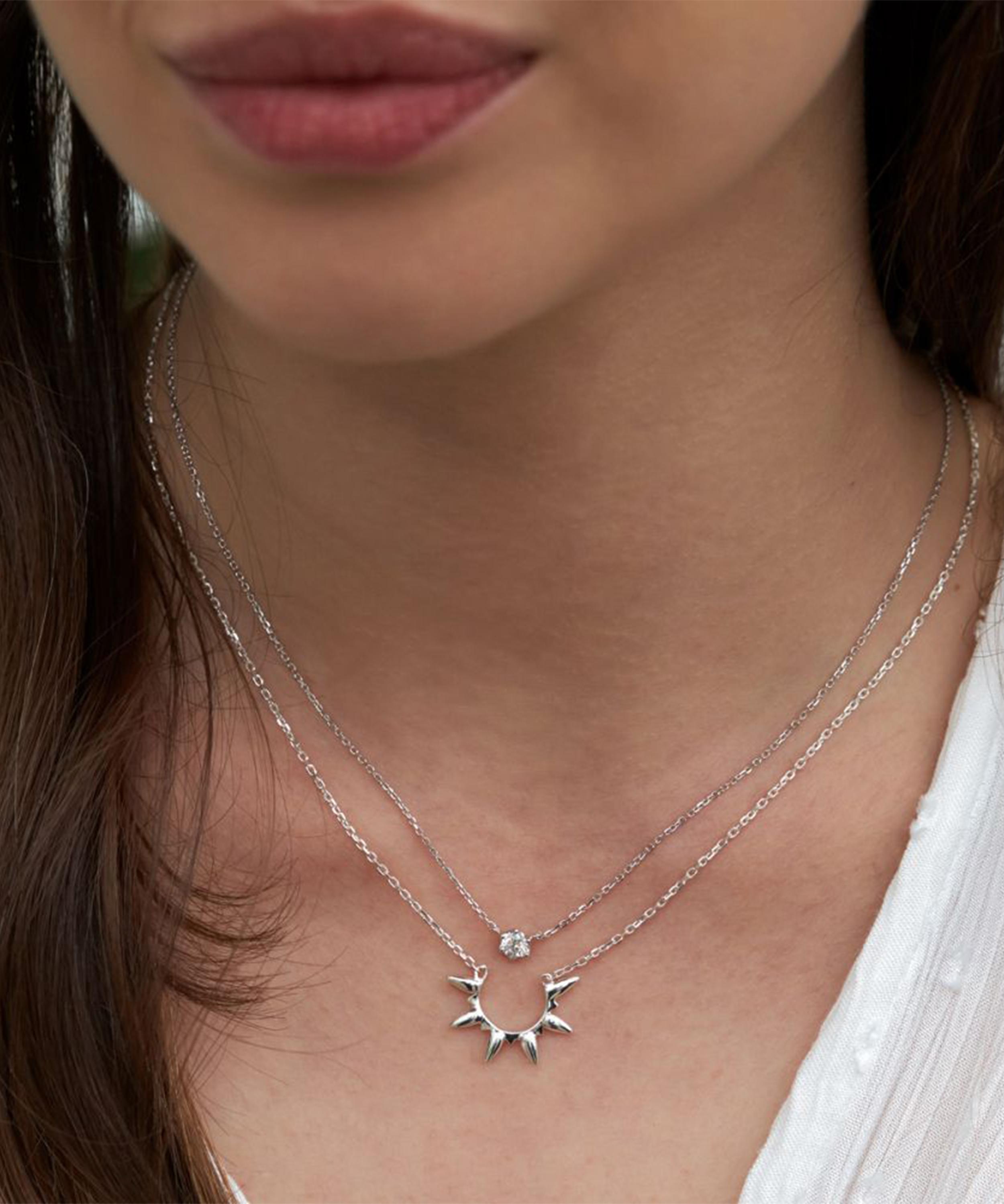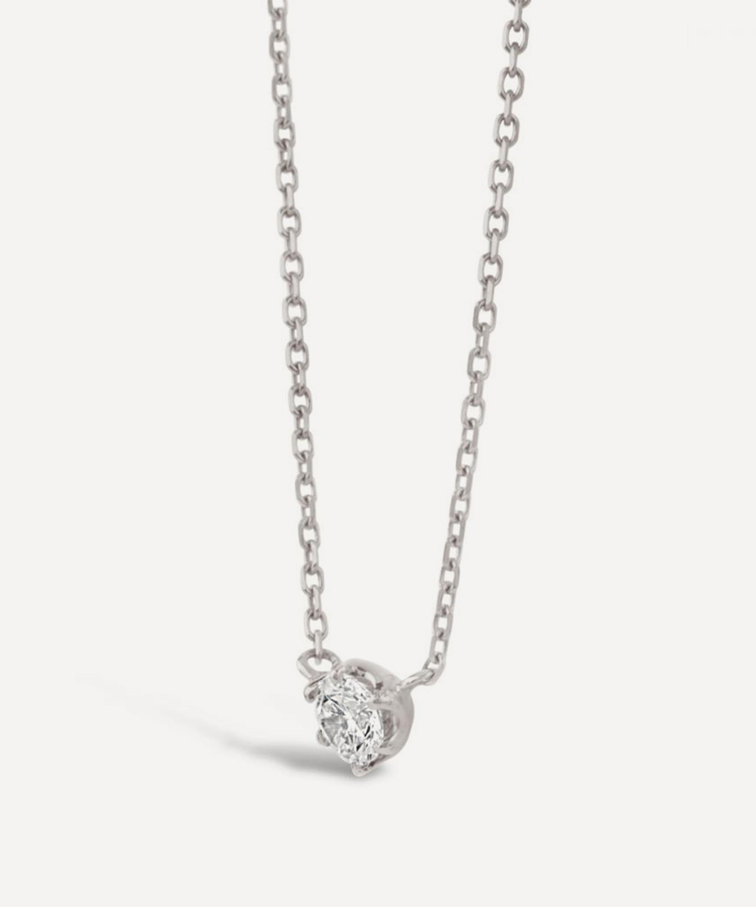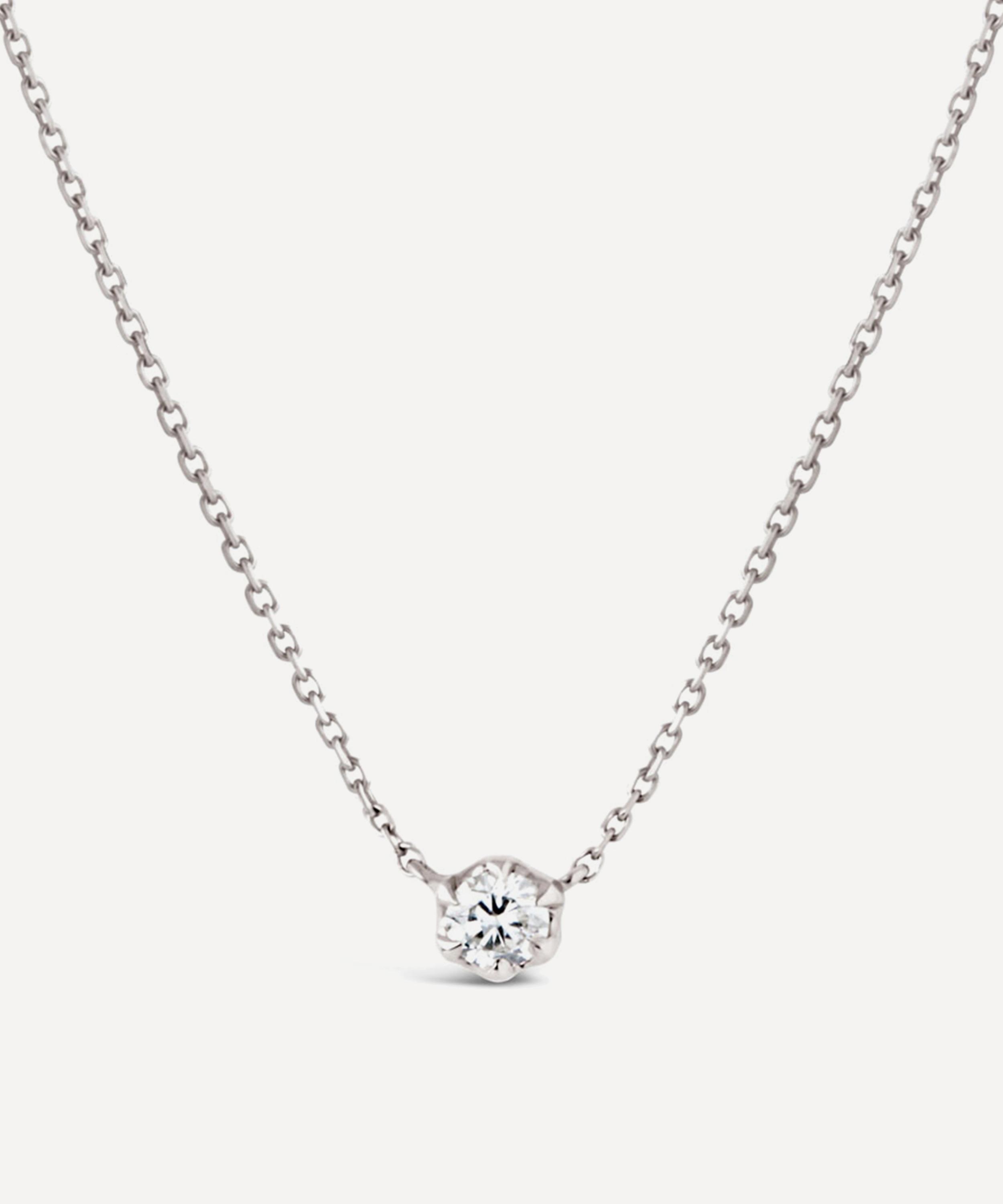 Crafted from solid 18 carat white gold, this delicate chain necklace features a single brilliant cut white diamond, presented in one of the Georgian-inspired, half-orb claw settings that characterise the Elyhara collection. Gift it to a loved one or incorporate it into your own everyday curation for an understated, contemporary approach.