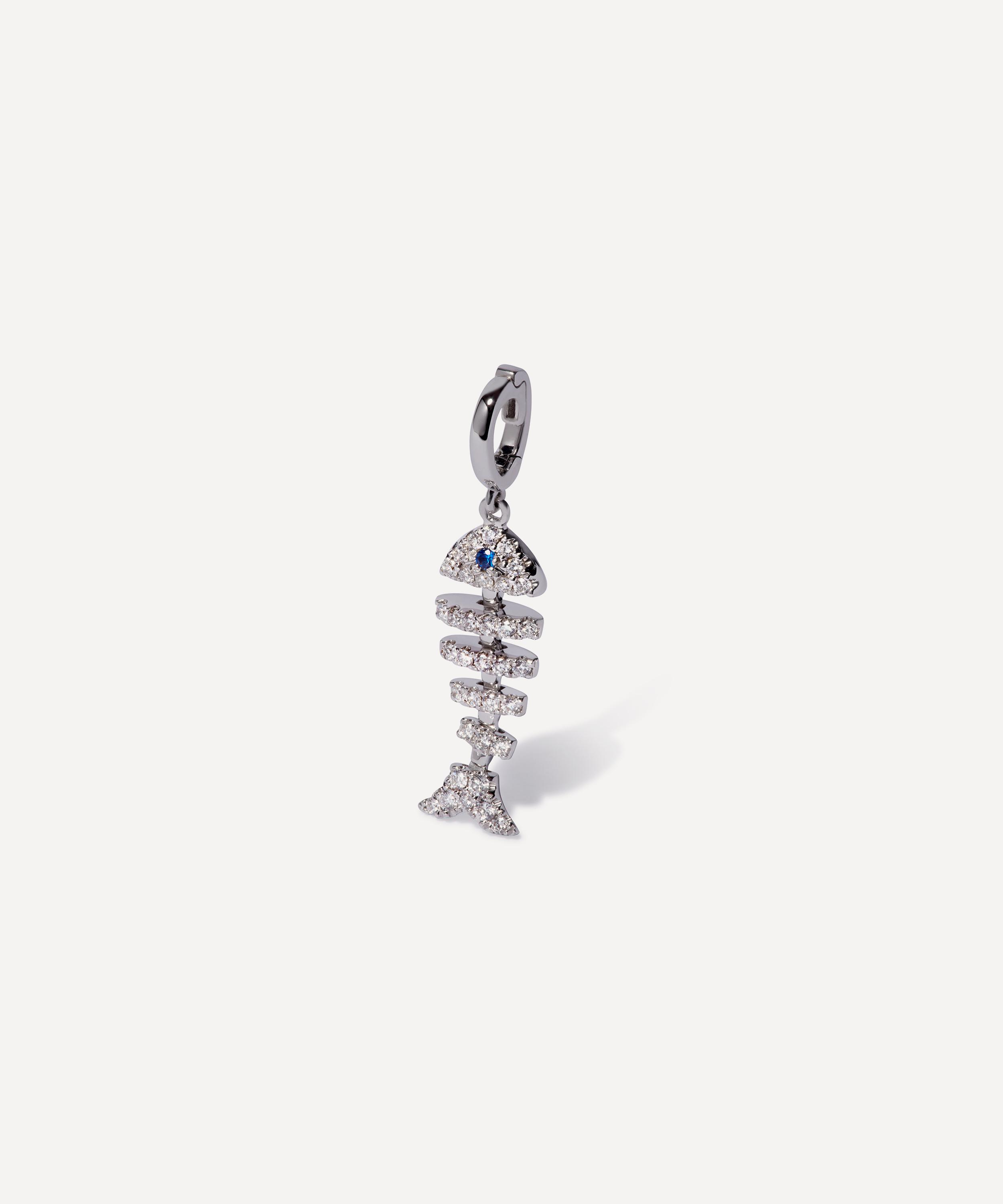 Embellish and elevate a plain chain necklace with this playful charm pendant from Annoushka. Crafted from 18ct white gold, it features an articulated fishbone design adorned with a sapphire set eye and sparkling diamonds.