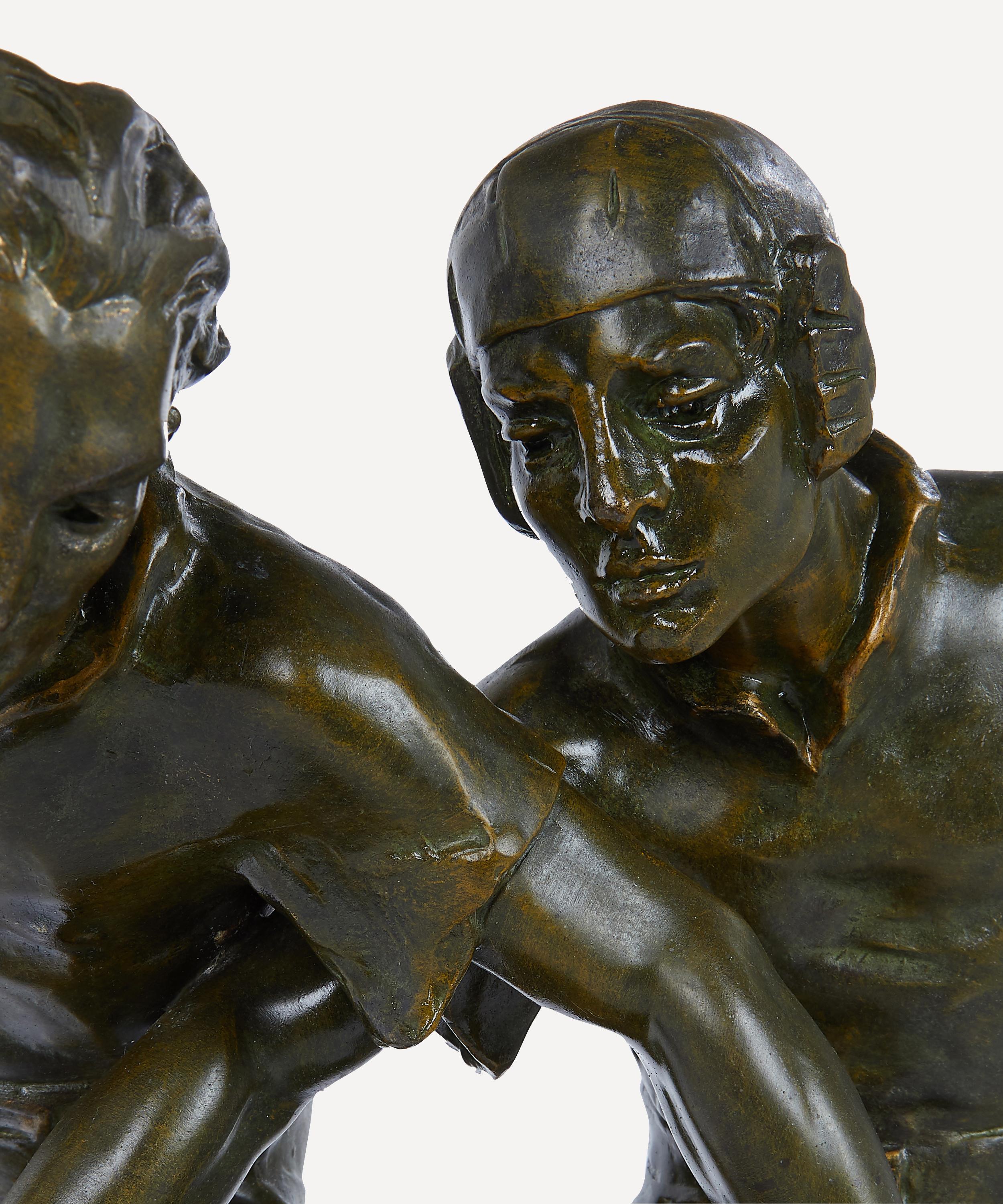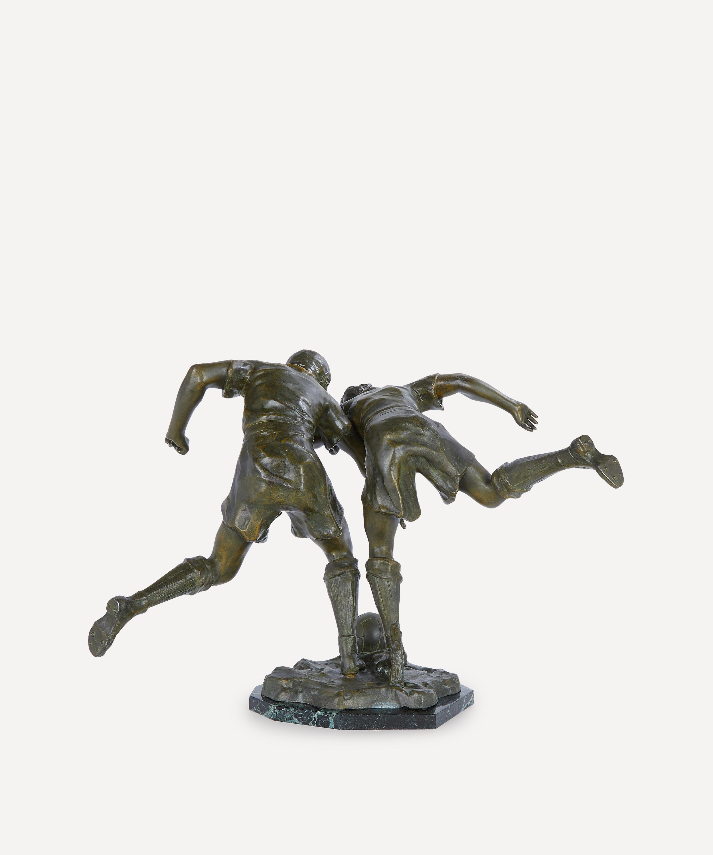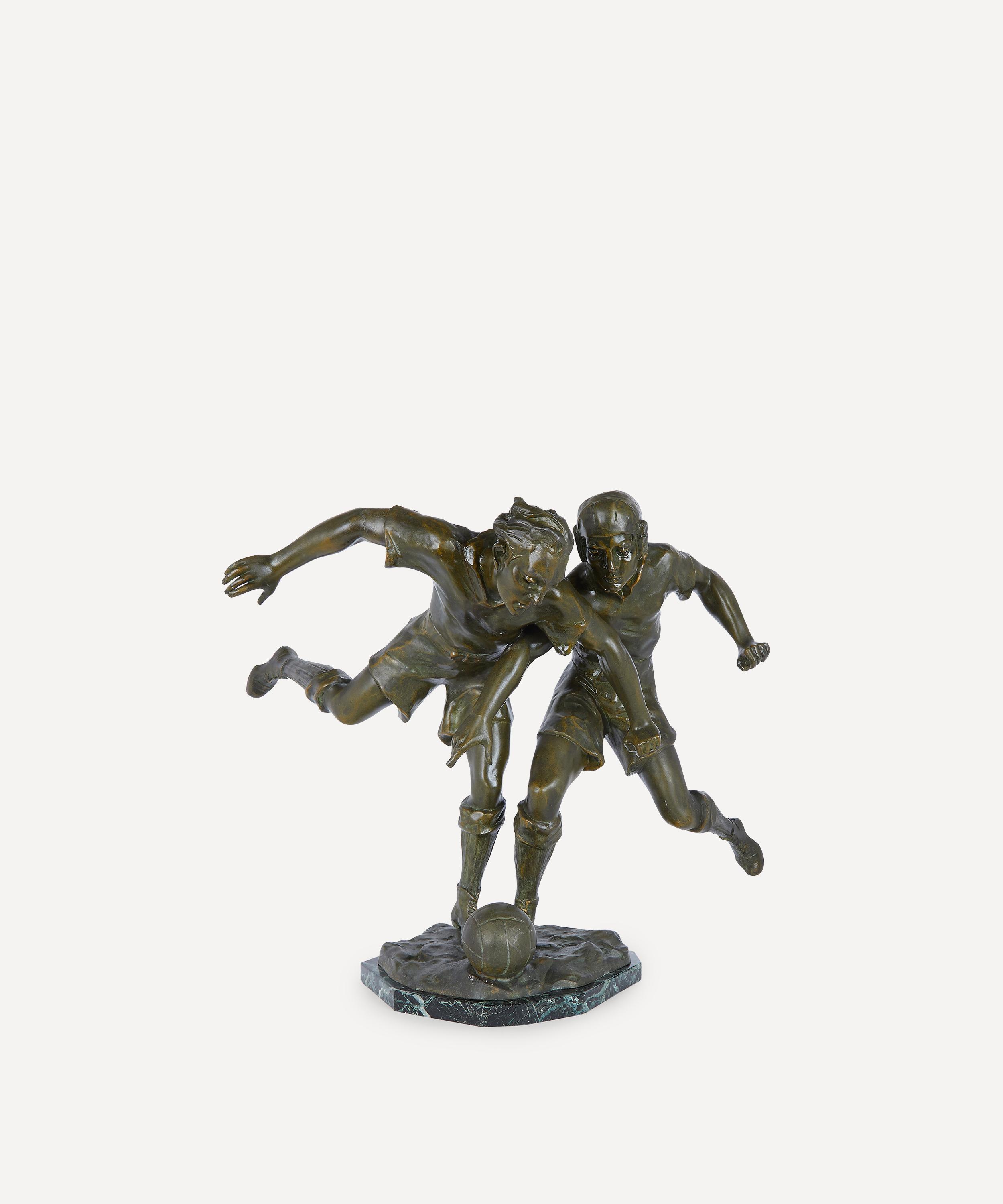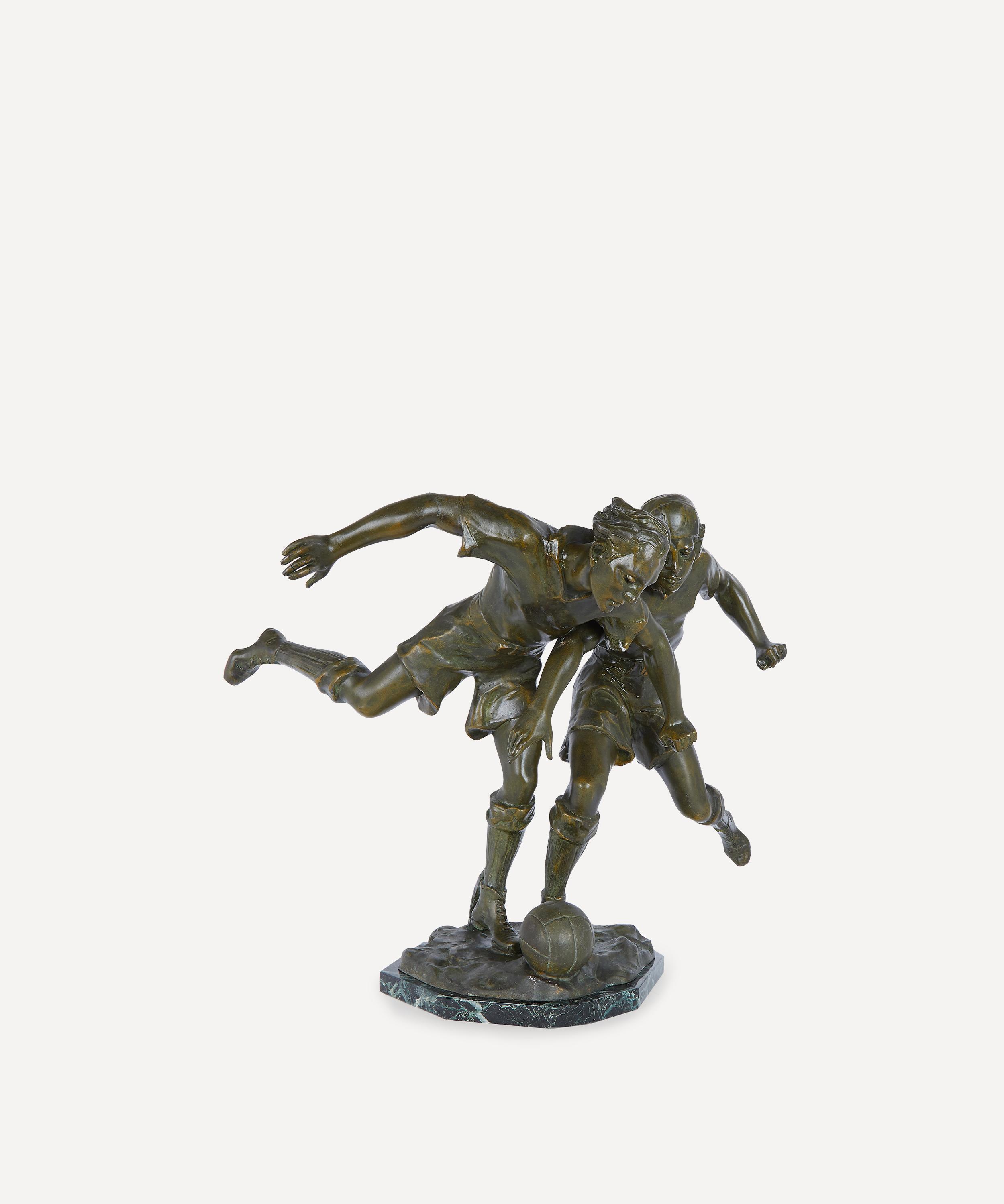 Crafted from solid bronze, this three-dimensional football sculpture dates back to the early 1920s. Mounted on a marble base, it features two male footballer figurines in the famous tackle position. A rare and captivating find, it carries the Lemoyne authenticity signature – the perfect collector’s item for a football fanatic.