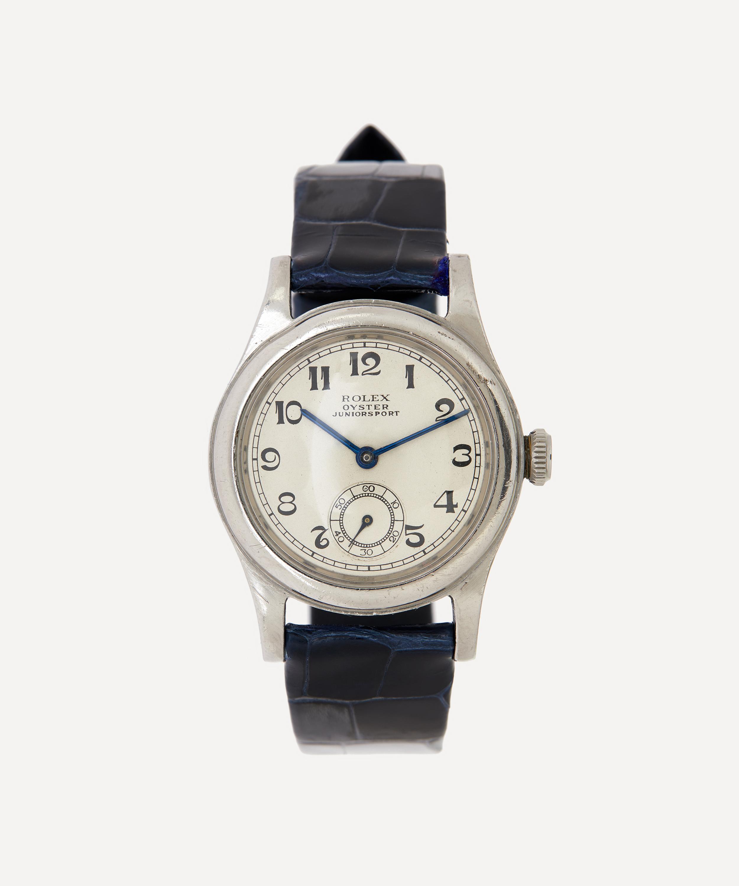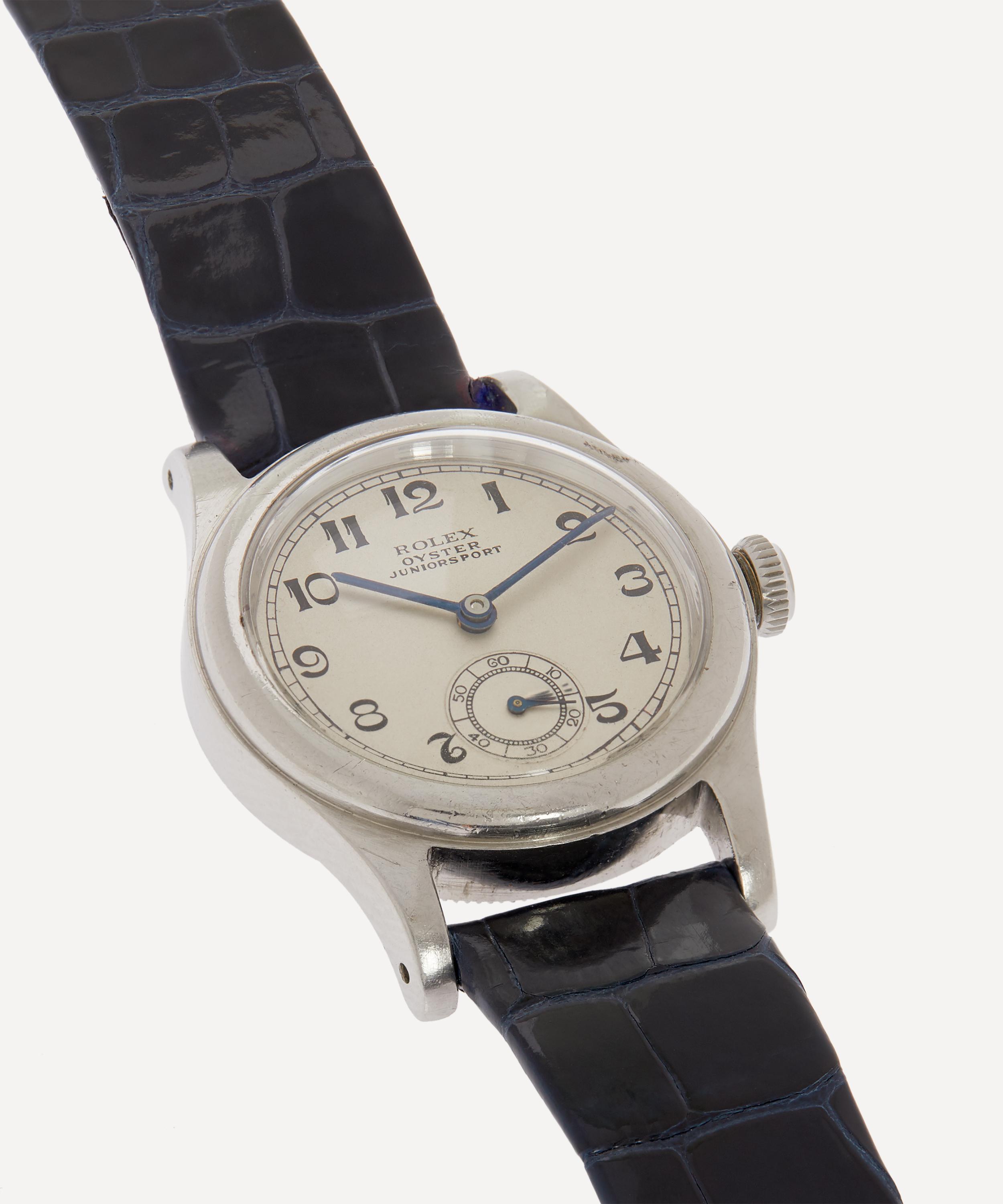 Dating back to the late 1930s, this white metal Rolex Oyster Junior Sport watch is a highly collectable timepiece, hand-sourced by jewellery experts at Designer Vintage.