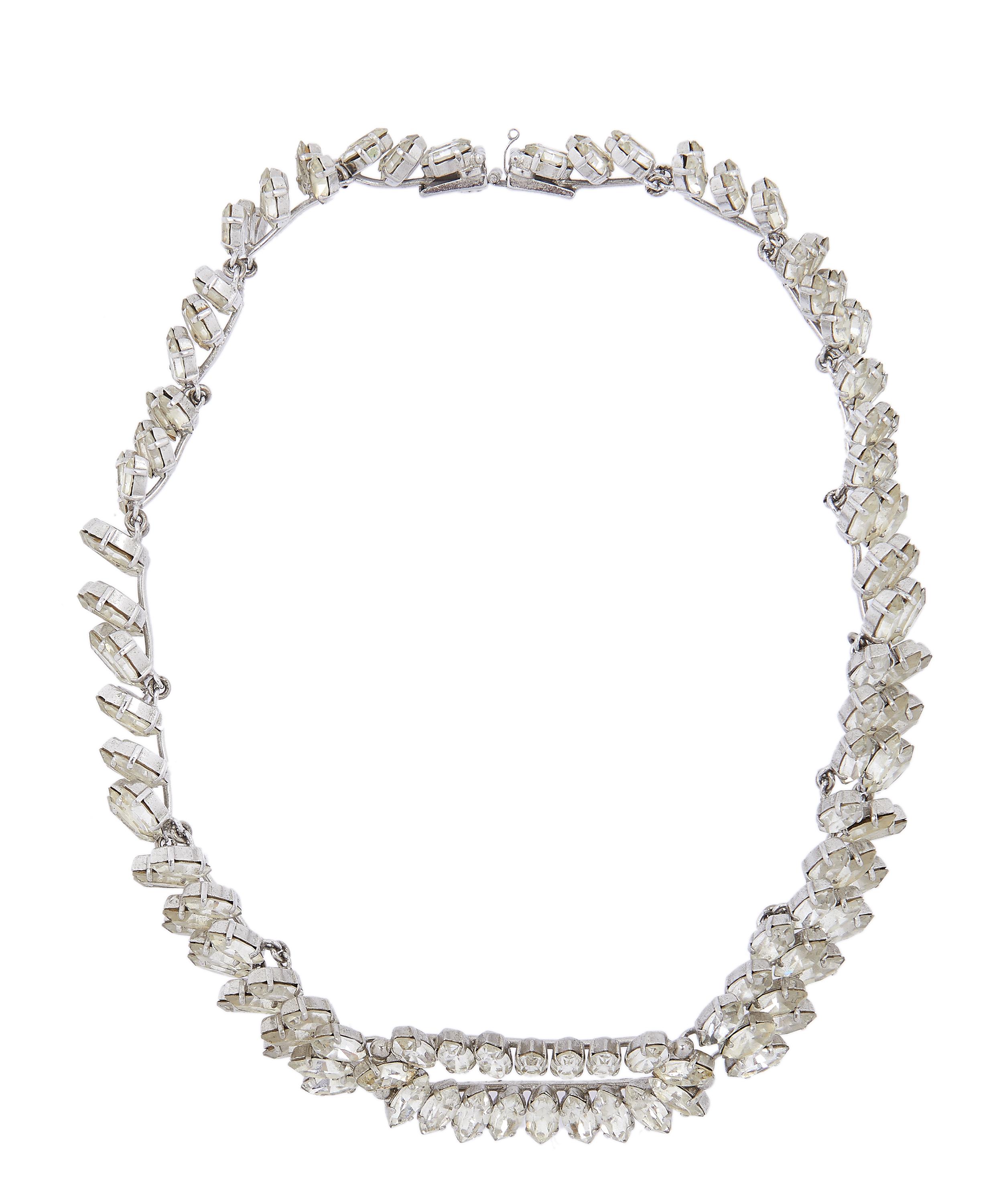 1960s Christian Dior White Metal Faux Diamond Necklace