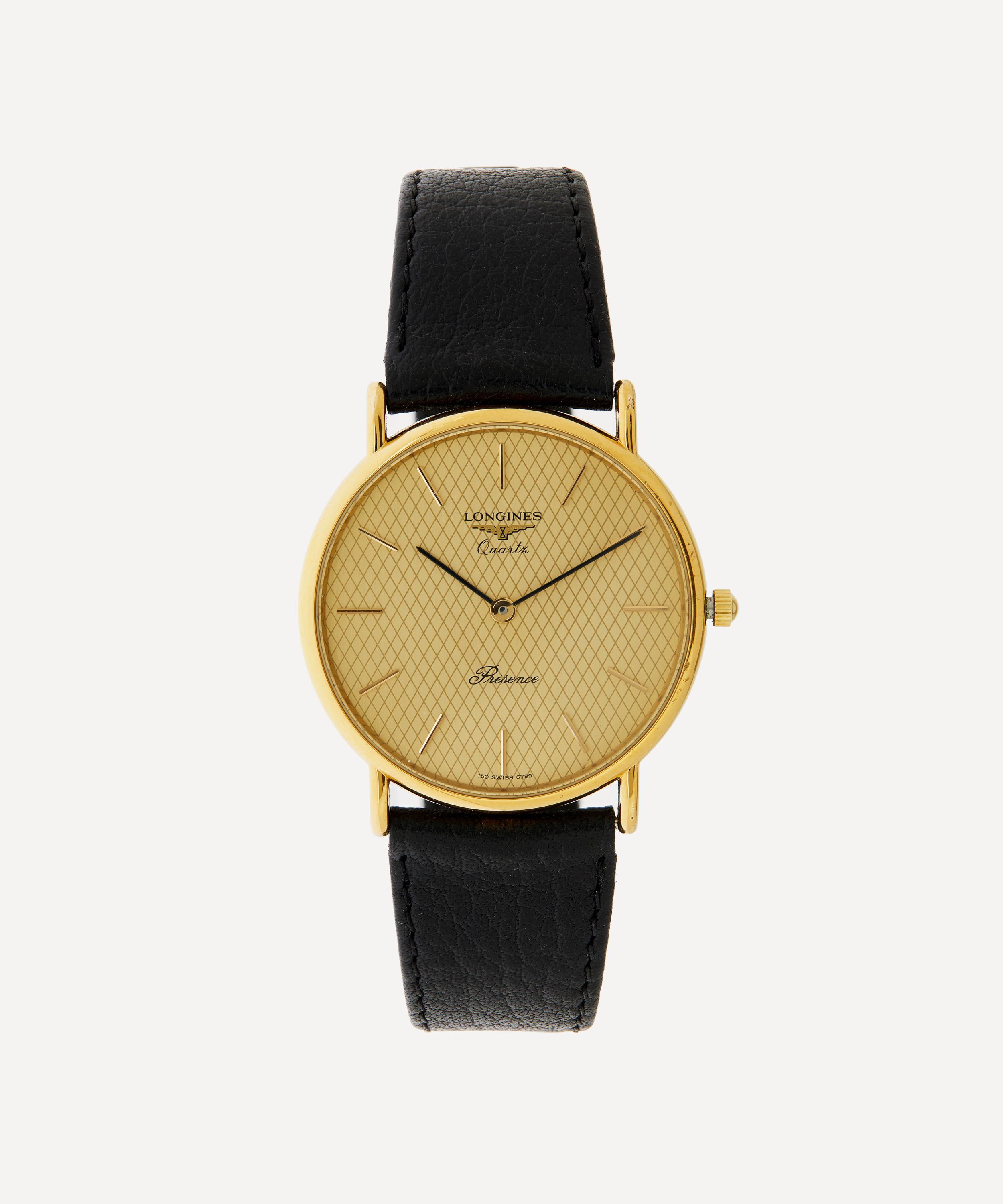 Dating back to the late 1980s, this gilt Longines Présence watch is a highly collectable timepiece, hand-sourced by jewellery experts at Designer Vintage.