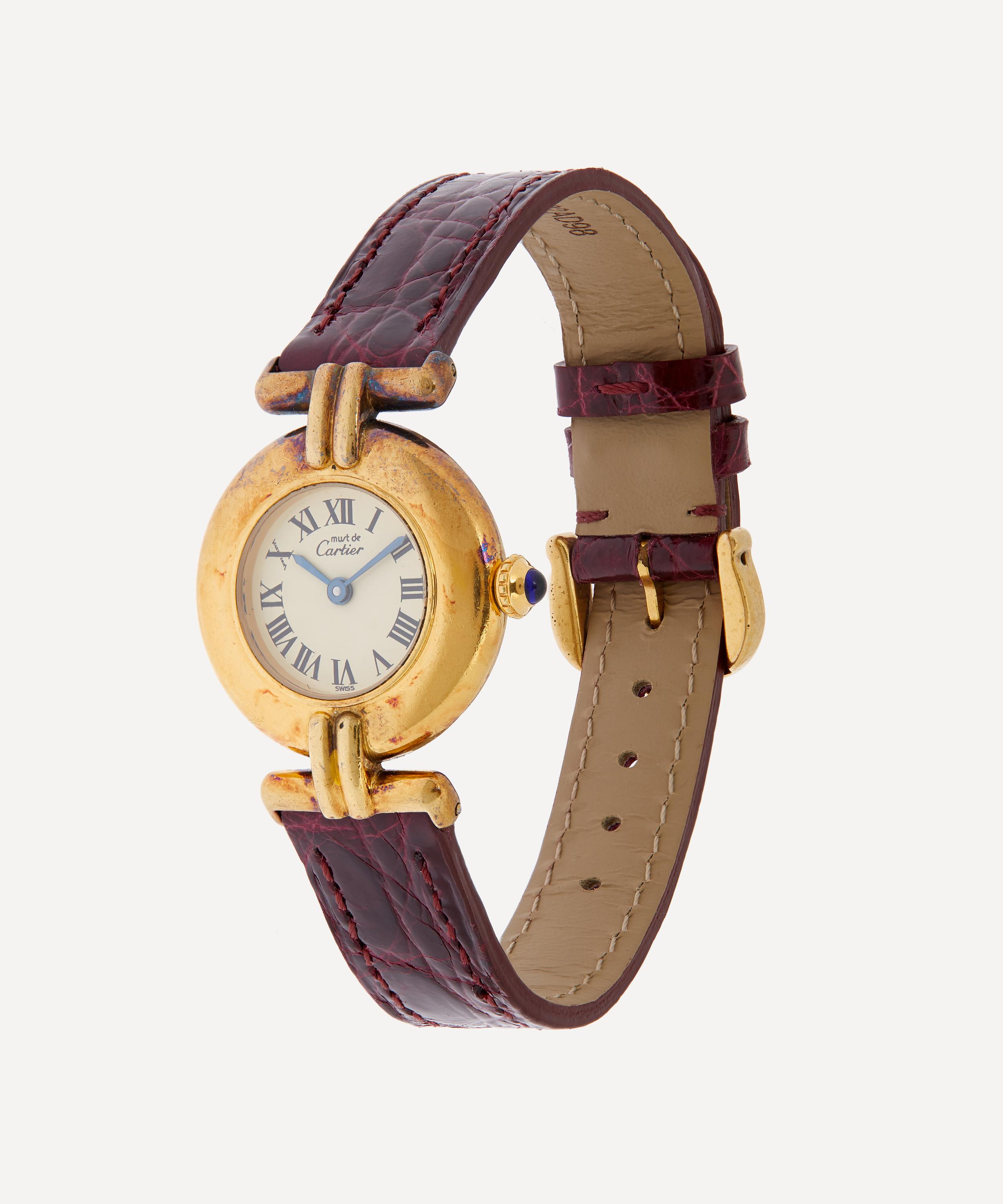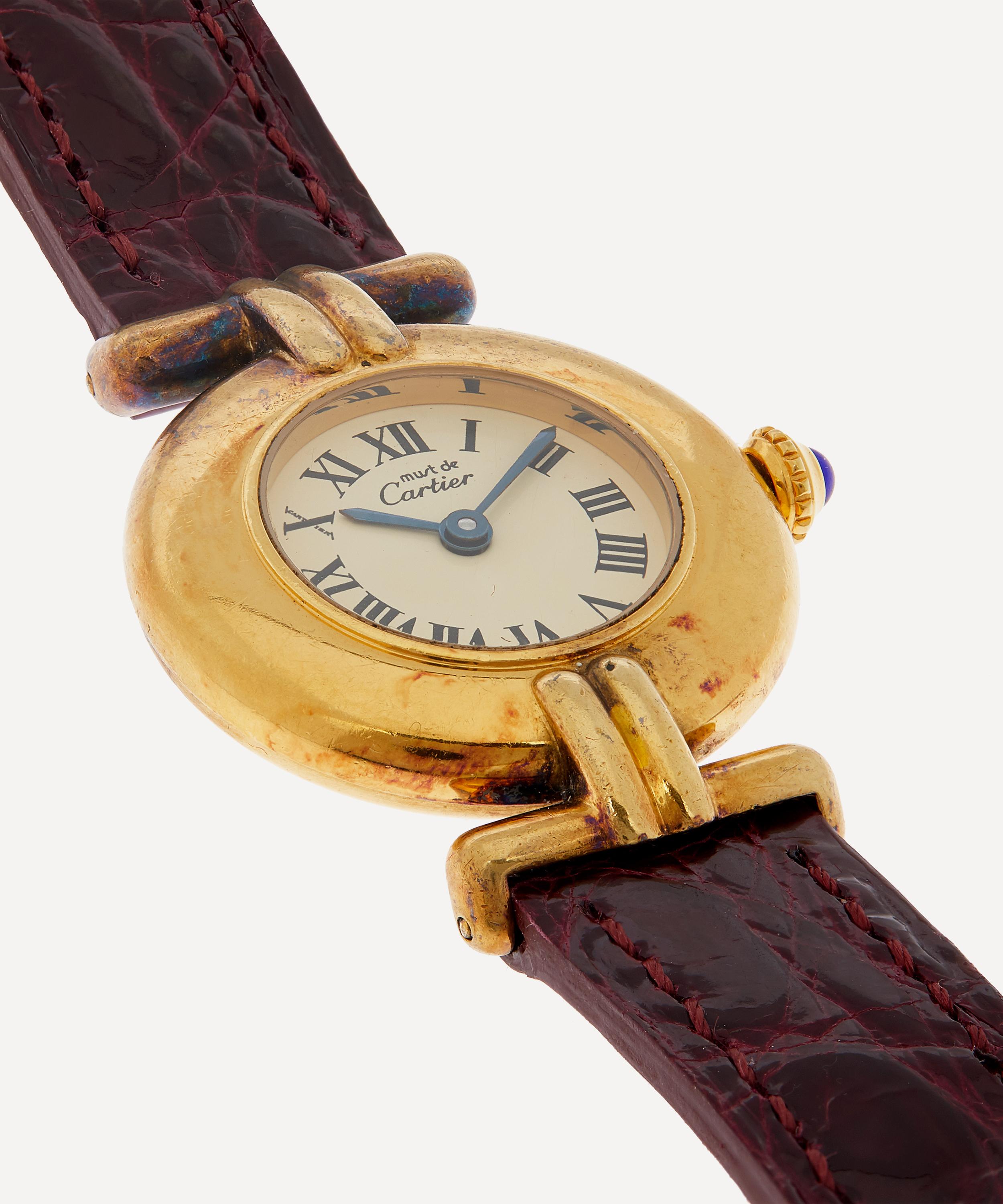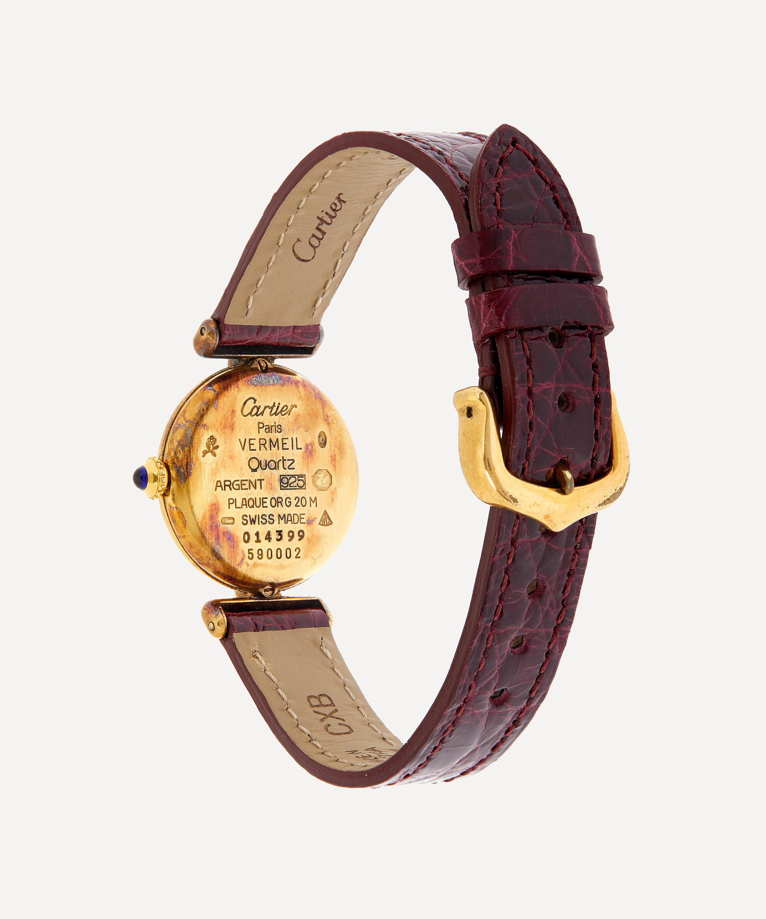 Dating back to the late 1980s, this Must de Cartier gold vermeil watch is a rare and highly collectable timepiece, hand-sourced by jewellery experts at Designer Vintage.