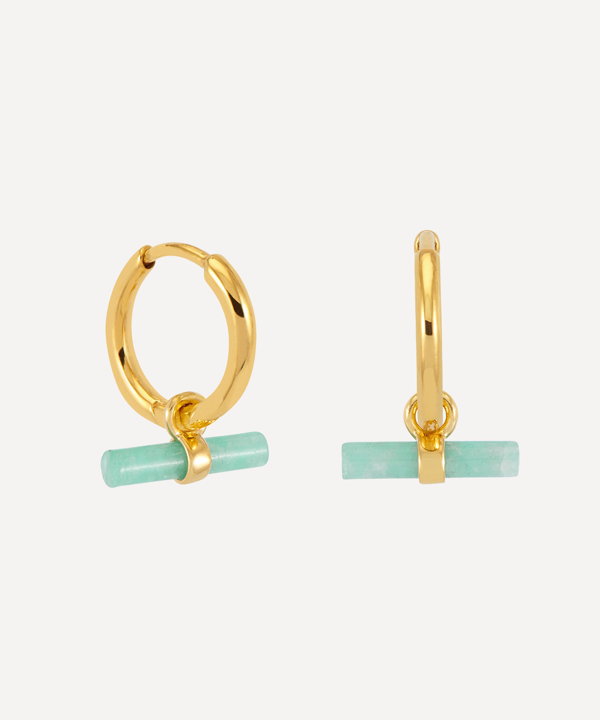 22ct Gold-Plated Amazonite T-Bar Huggie Hoop Earrings